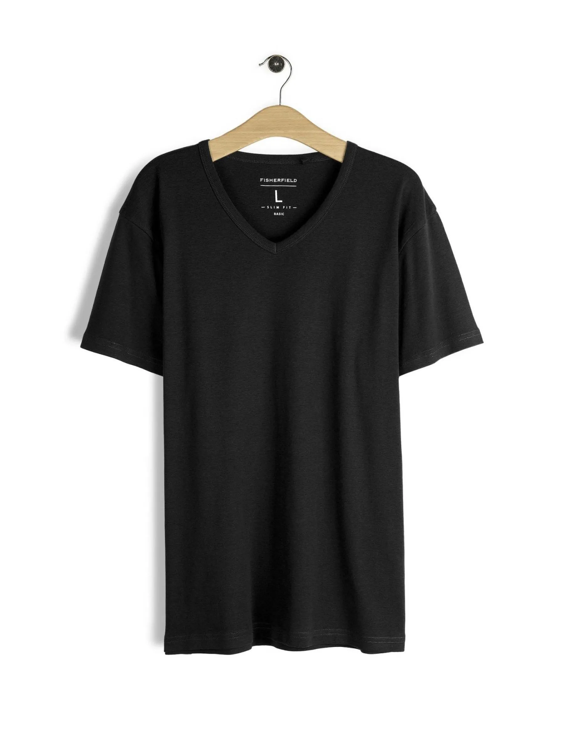 Kolor: czarnyKrój: regularTyp: koszulkaRekaw: krótki rękawPattern style: pojedynczy kolorDetal: nad głową, v-neckMa…