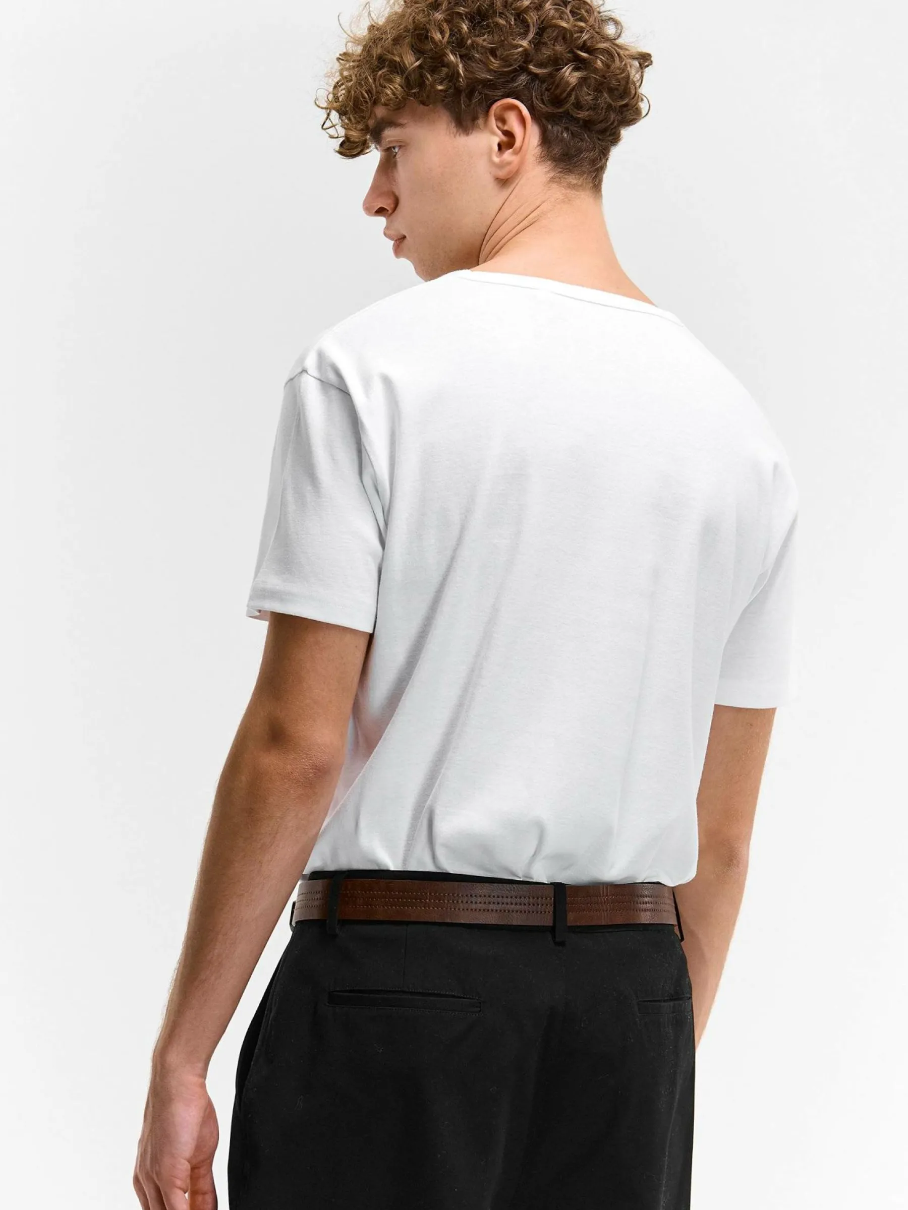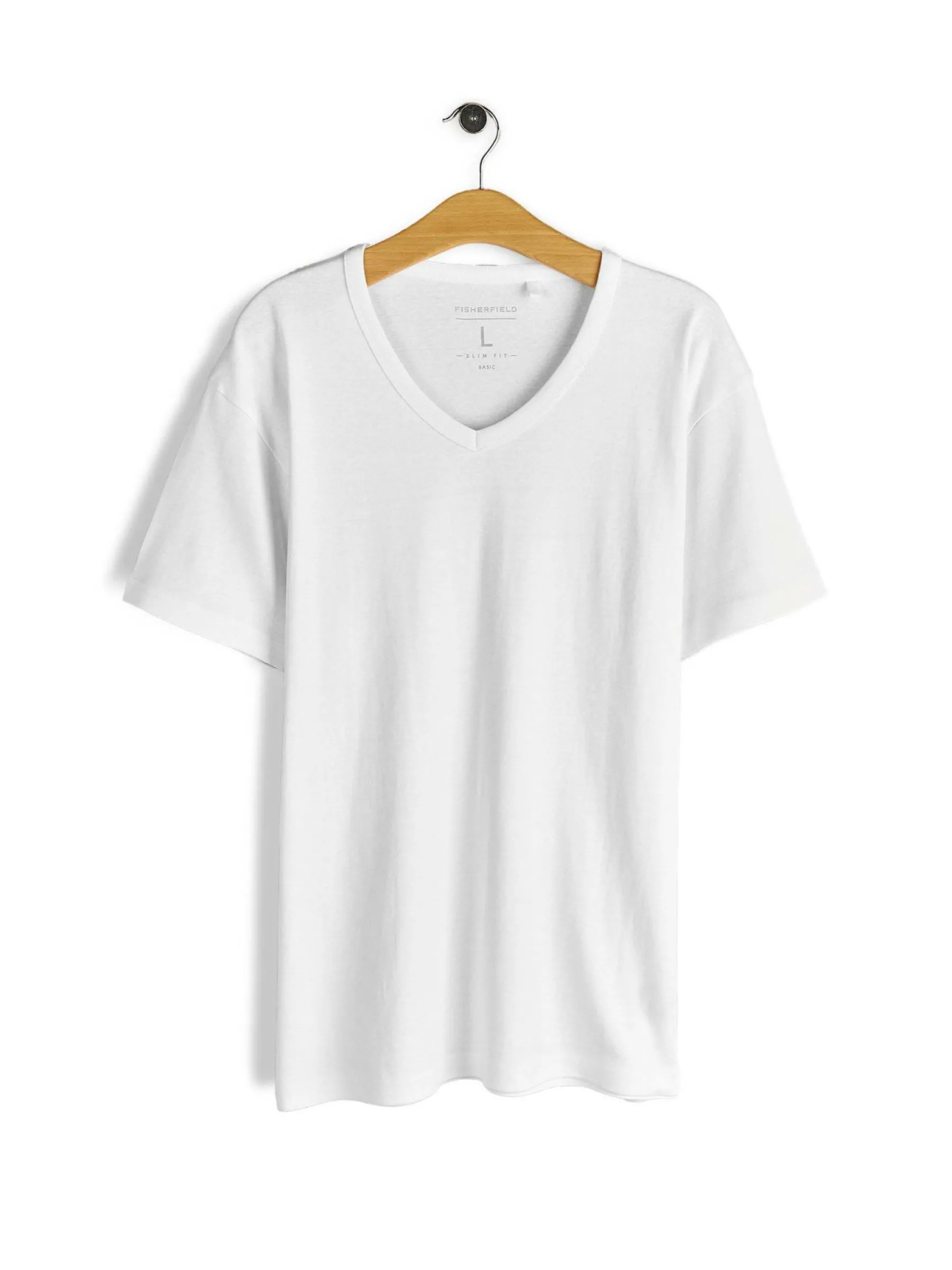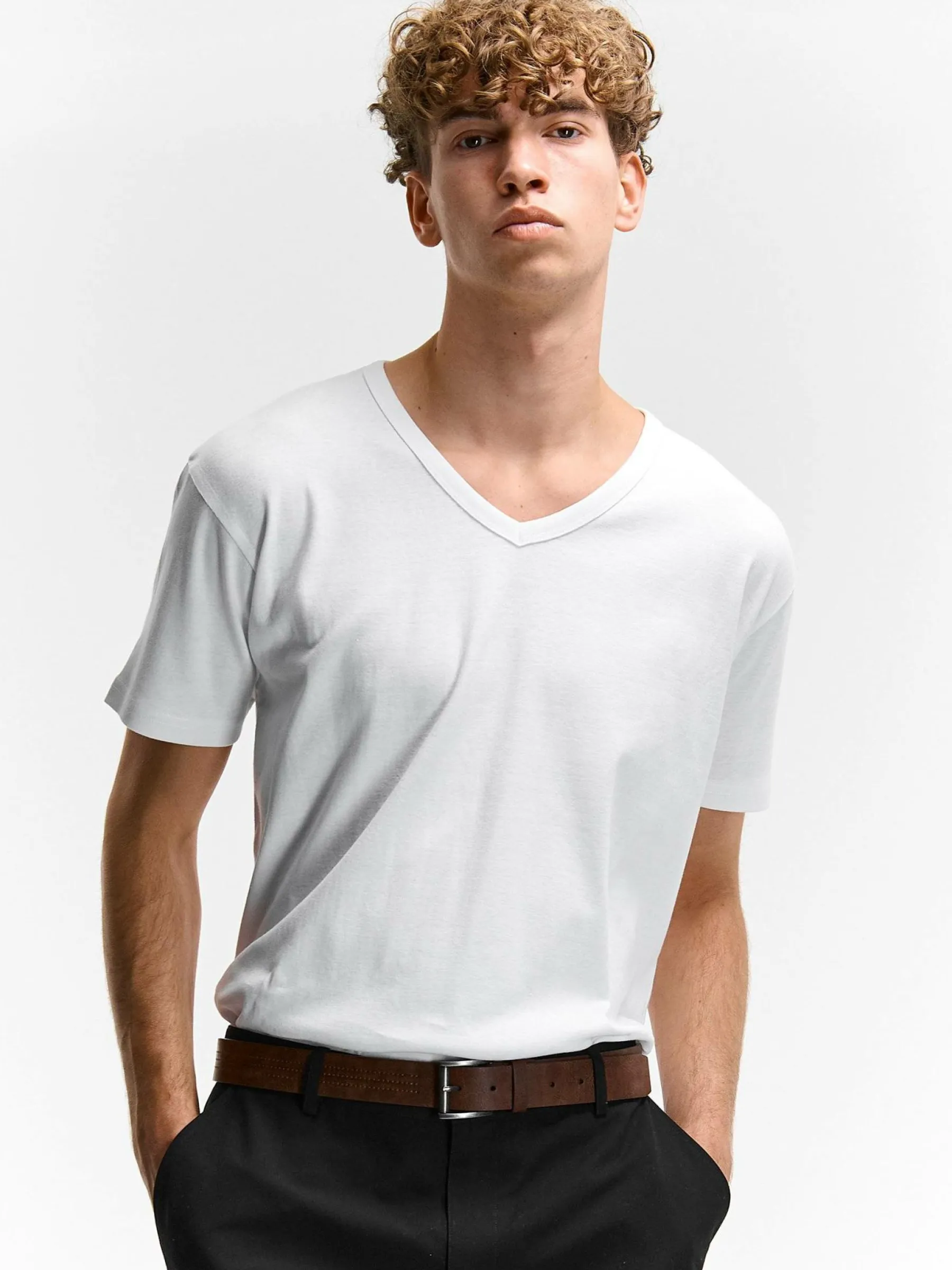 Kolor: białyKrój: regularTyp: koszulkaRekaw: krótki rękawPattern style: pojedynczy kolorDetal: v-neck, nad głowąMa…