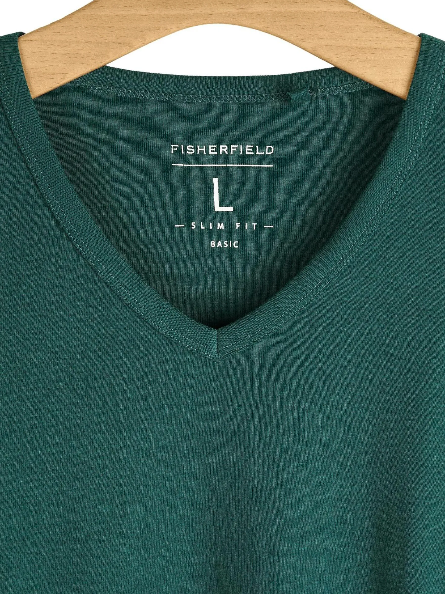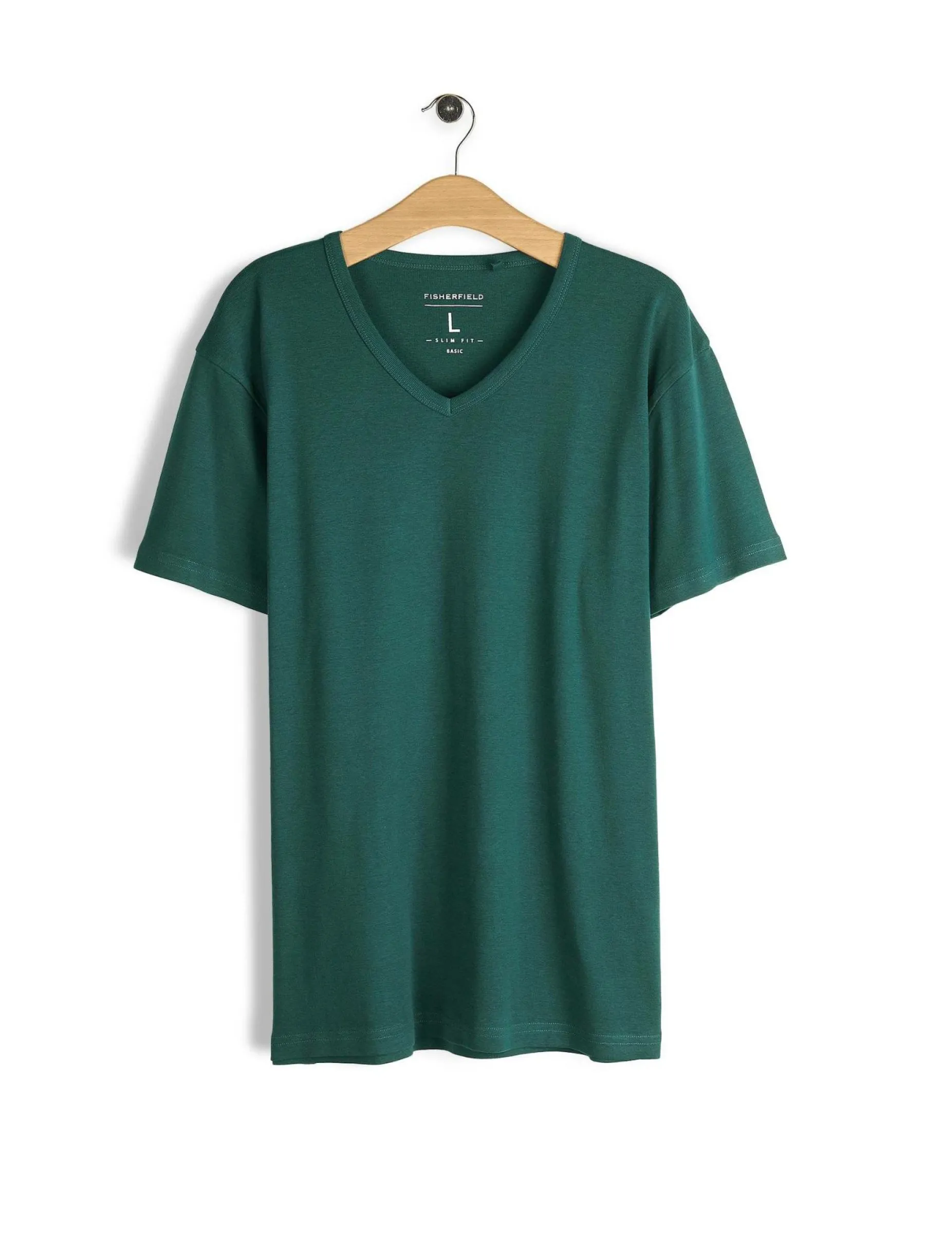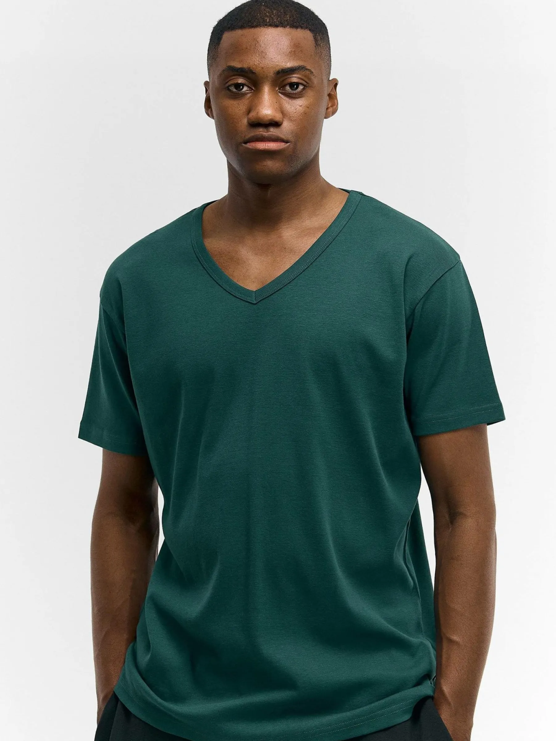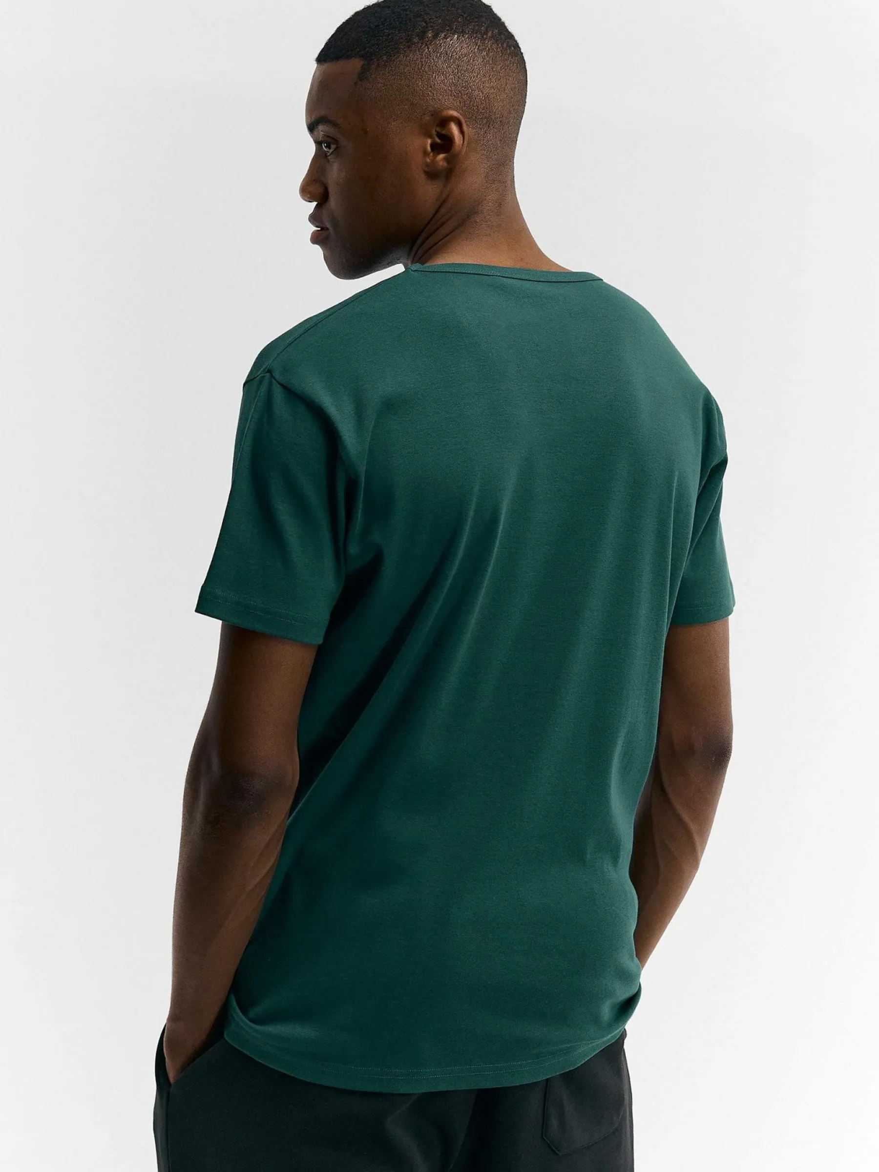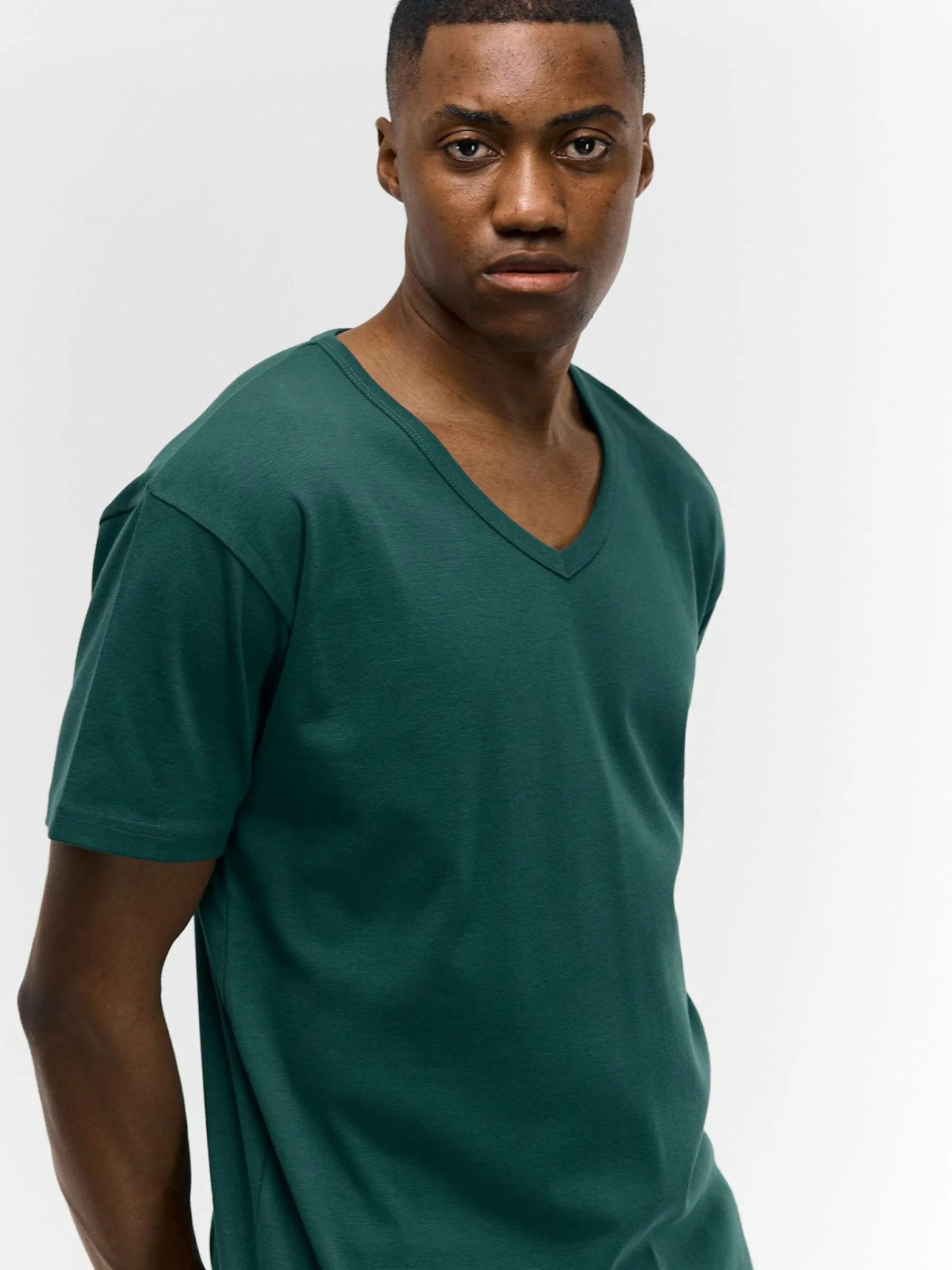 Kolor: zielonyKrój: regularTyp: koszulkaRekaw: krótki rękawPattern style: pojedynczy kolorDetal: nad głową, v-neckM…