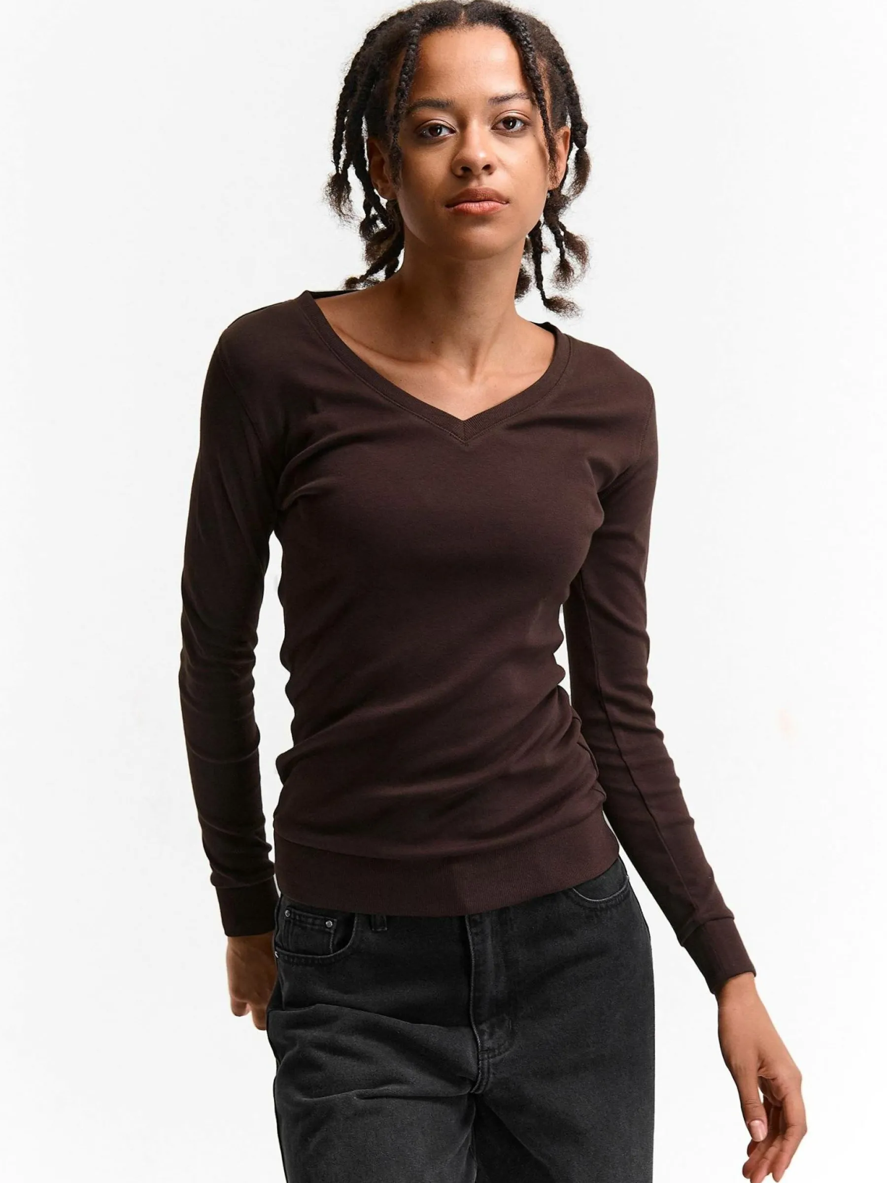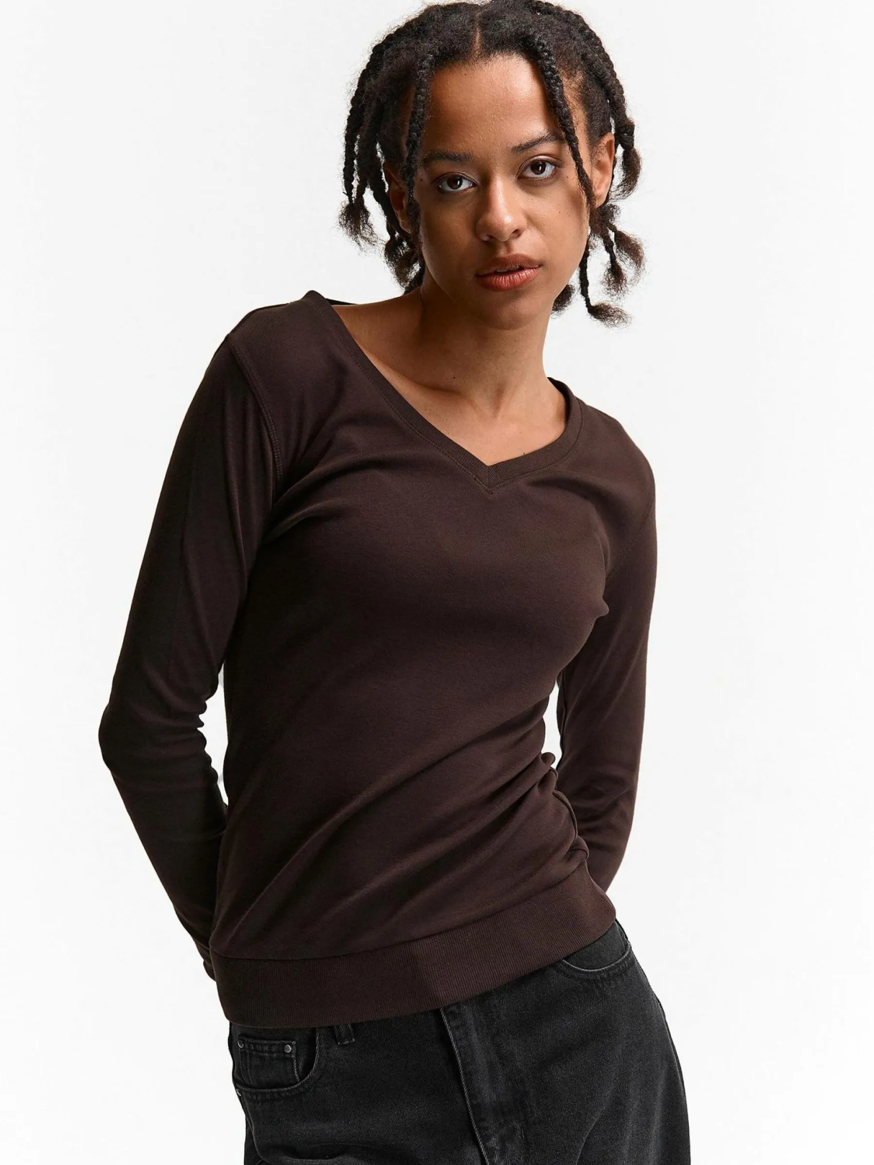 Kolor: brązowyKrój: podstawowyTyp: koszulkaRekaw: długi rękawDługość: krótkiPattern style: pojedynczy kolorDetal…
