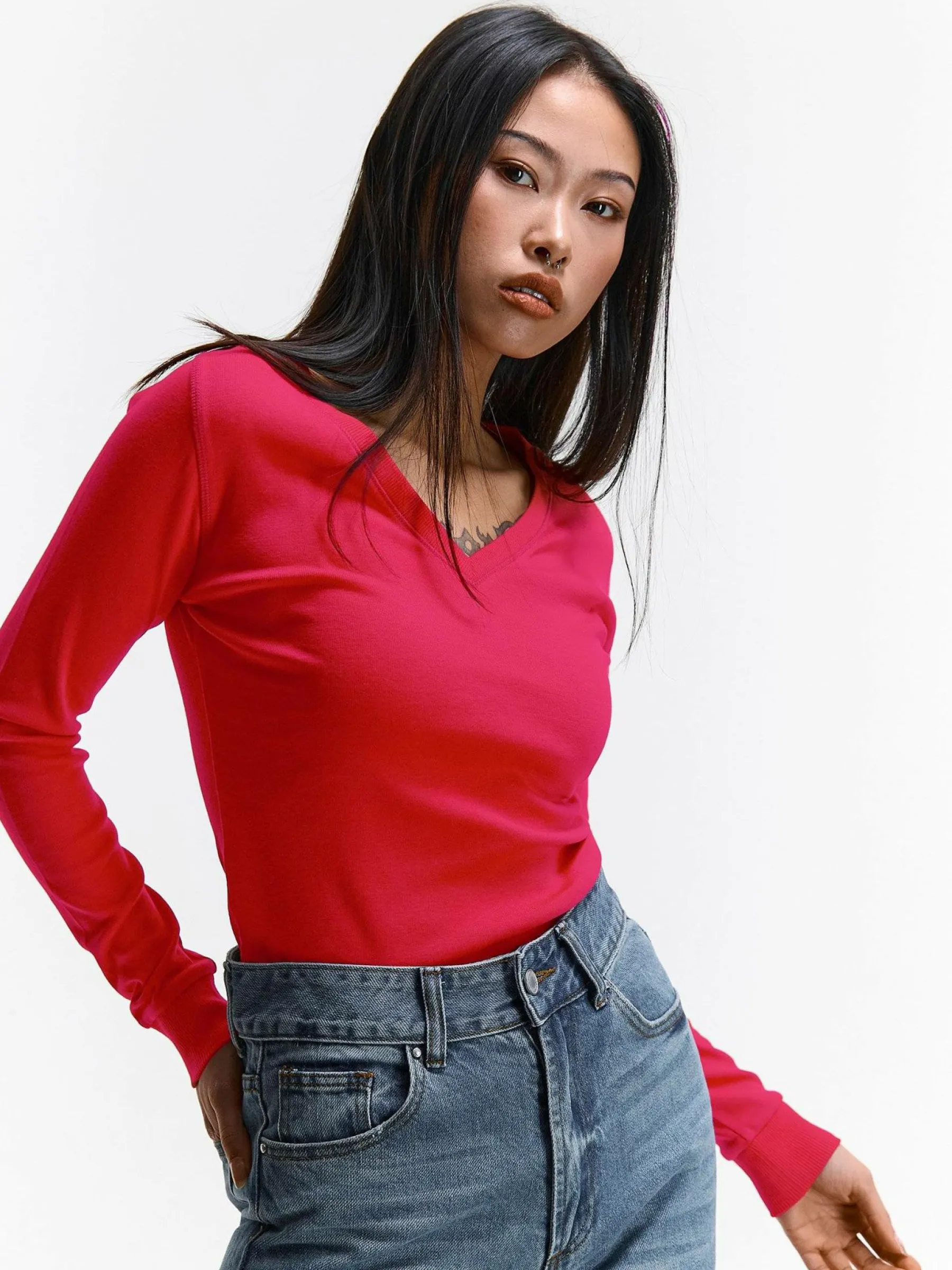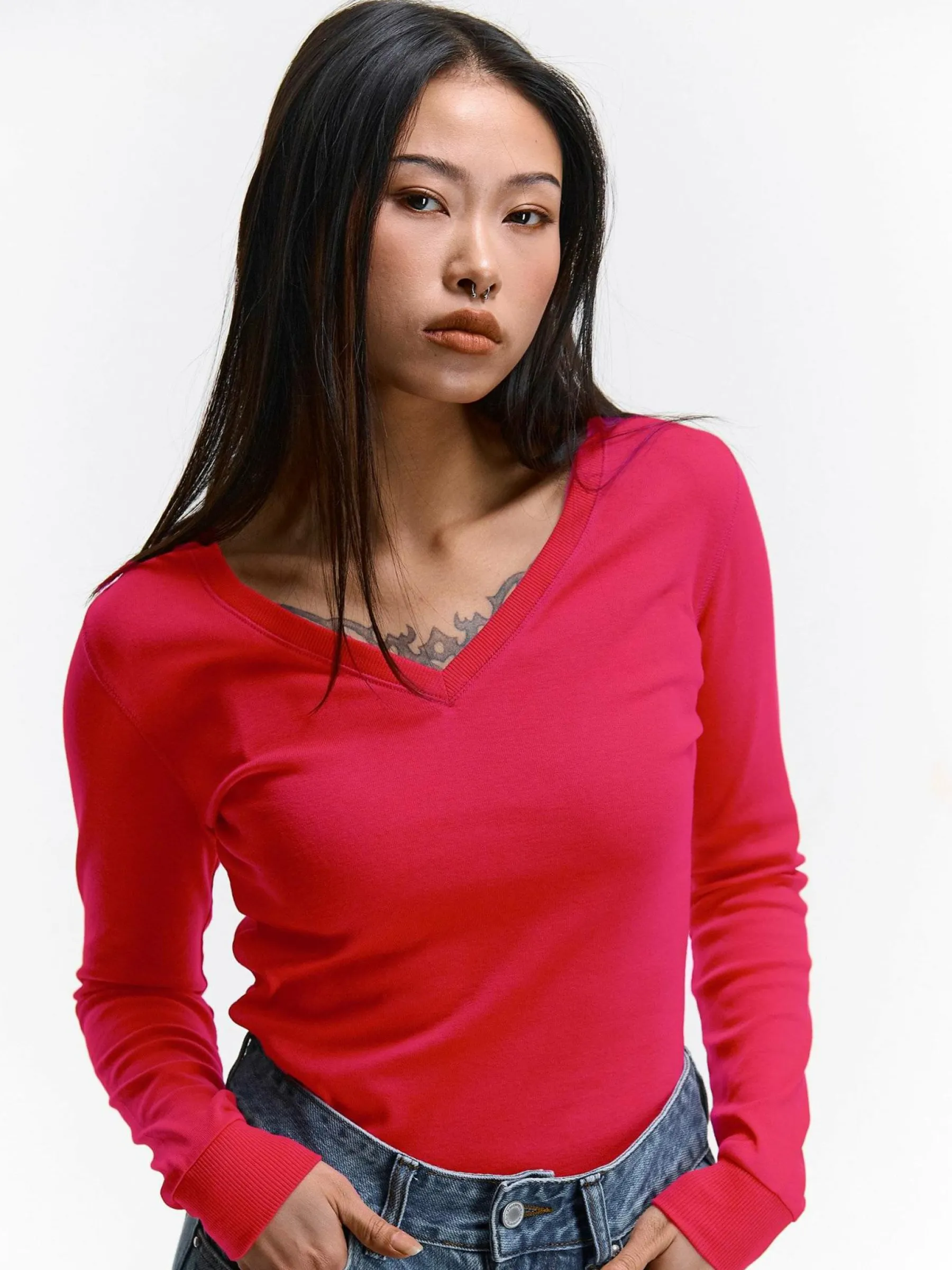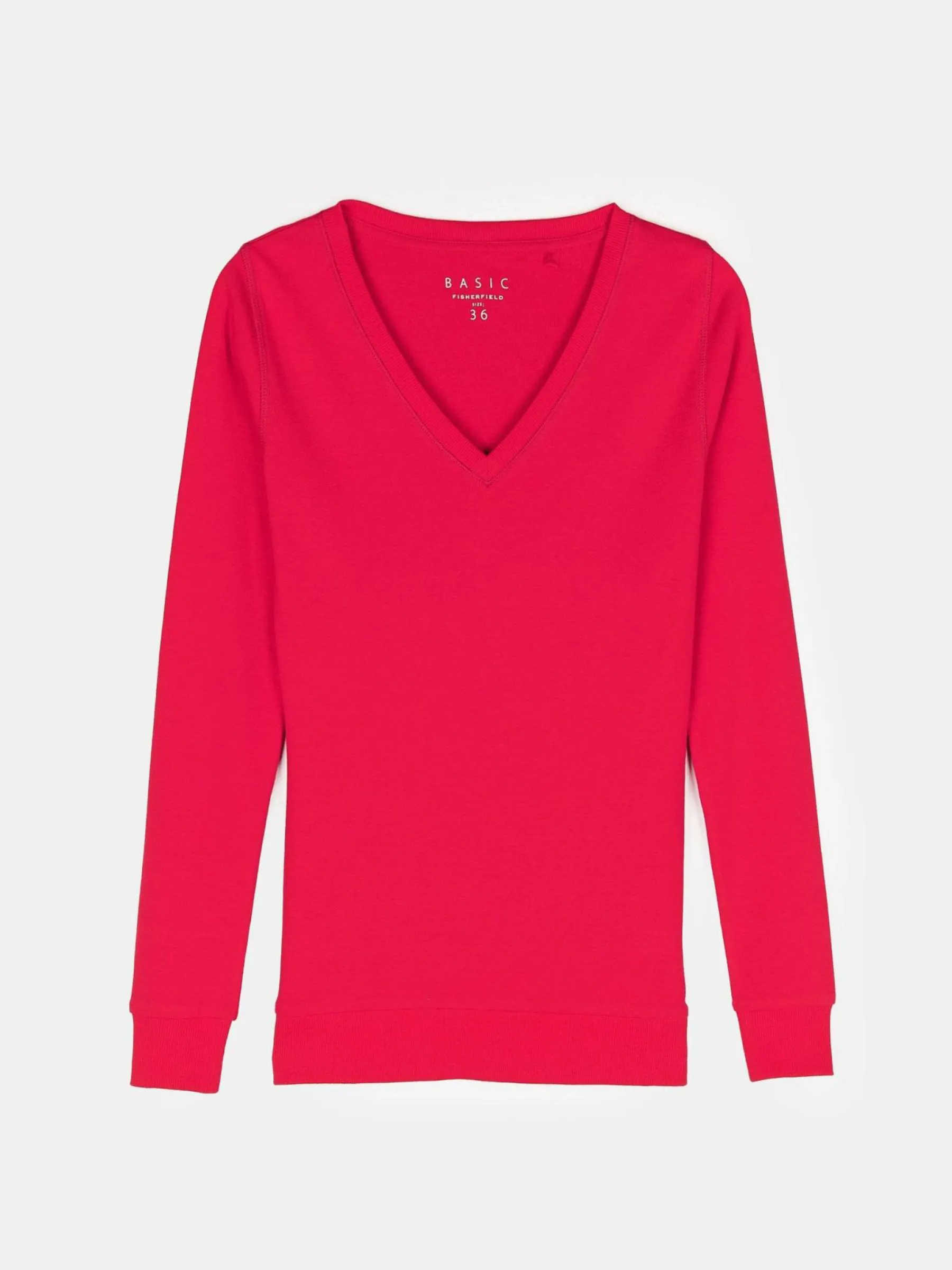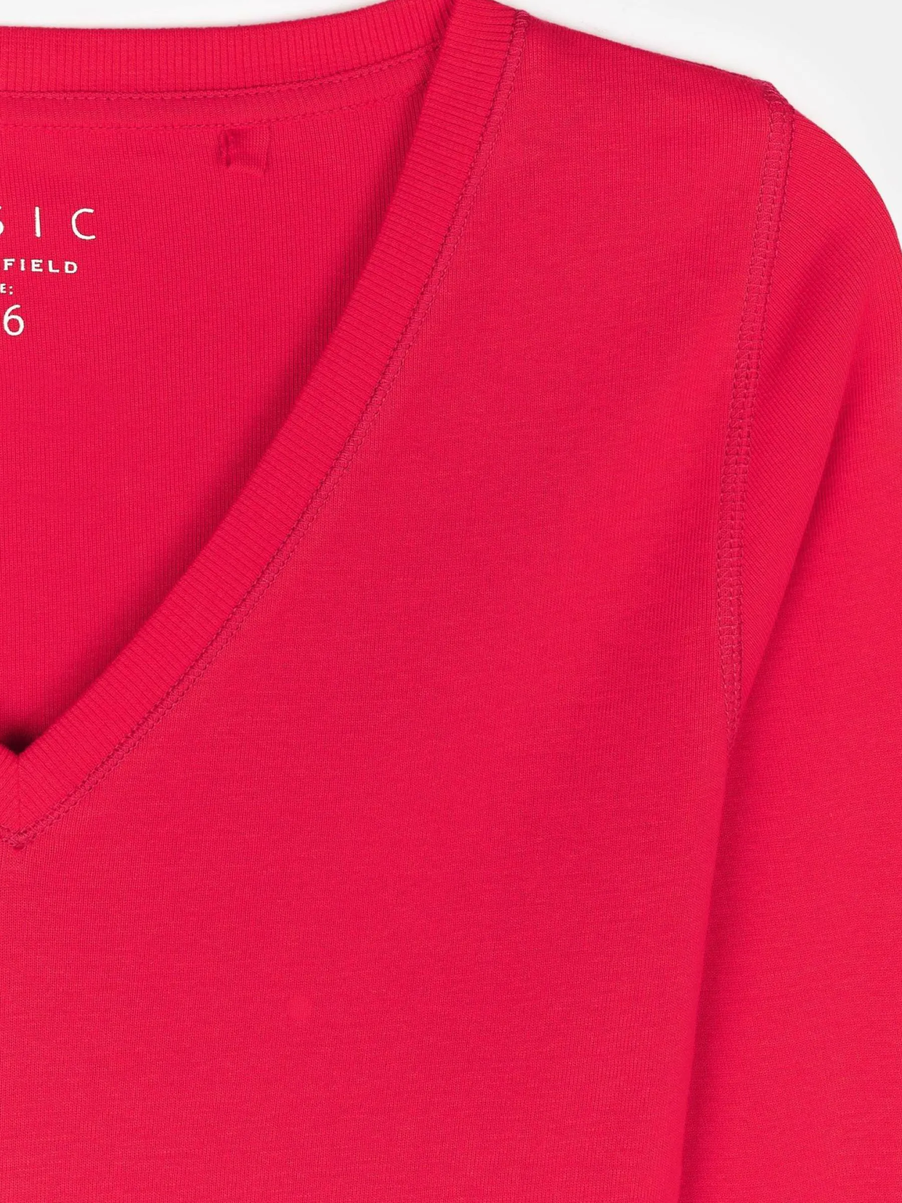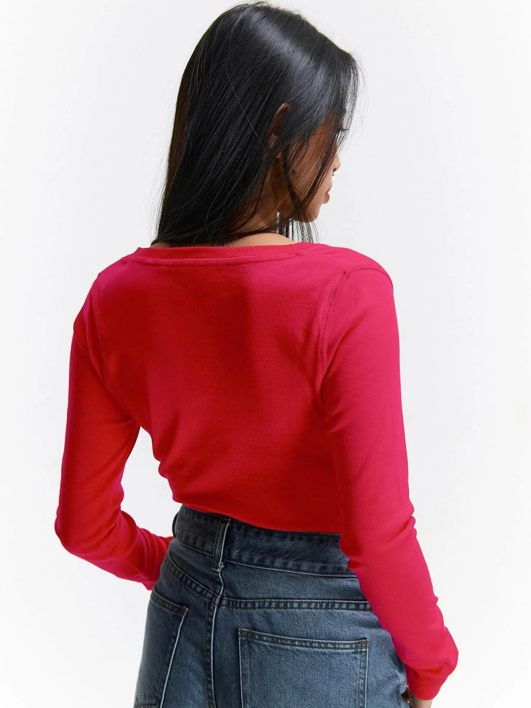 Kolor: czerwonyKrój: podstawowyTyp: koszulkaRekaw: długi rękawDługość: krótkiPattern style: pojedynczy kolorDetal…