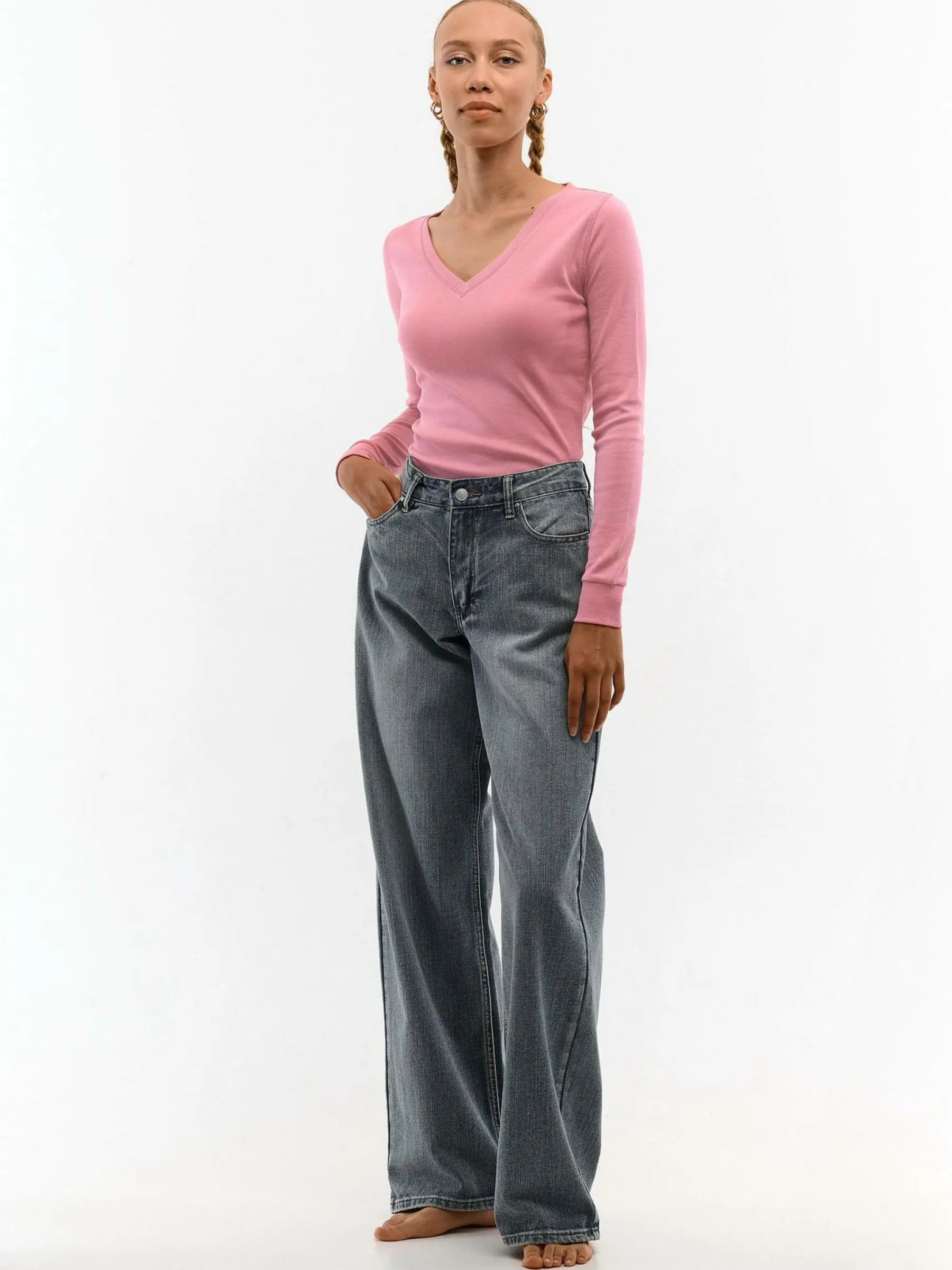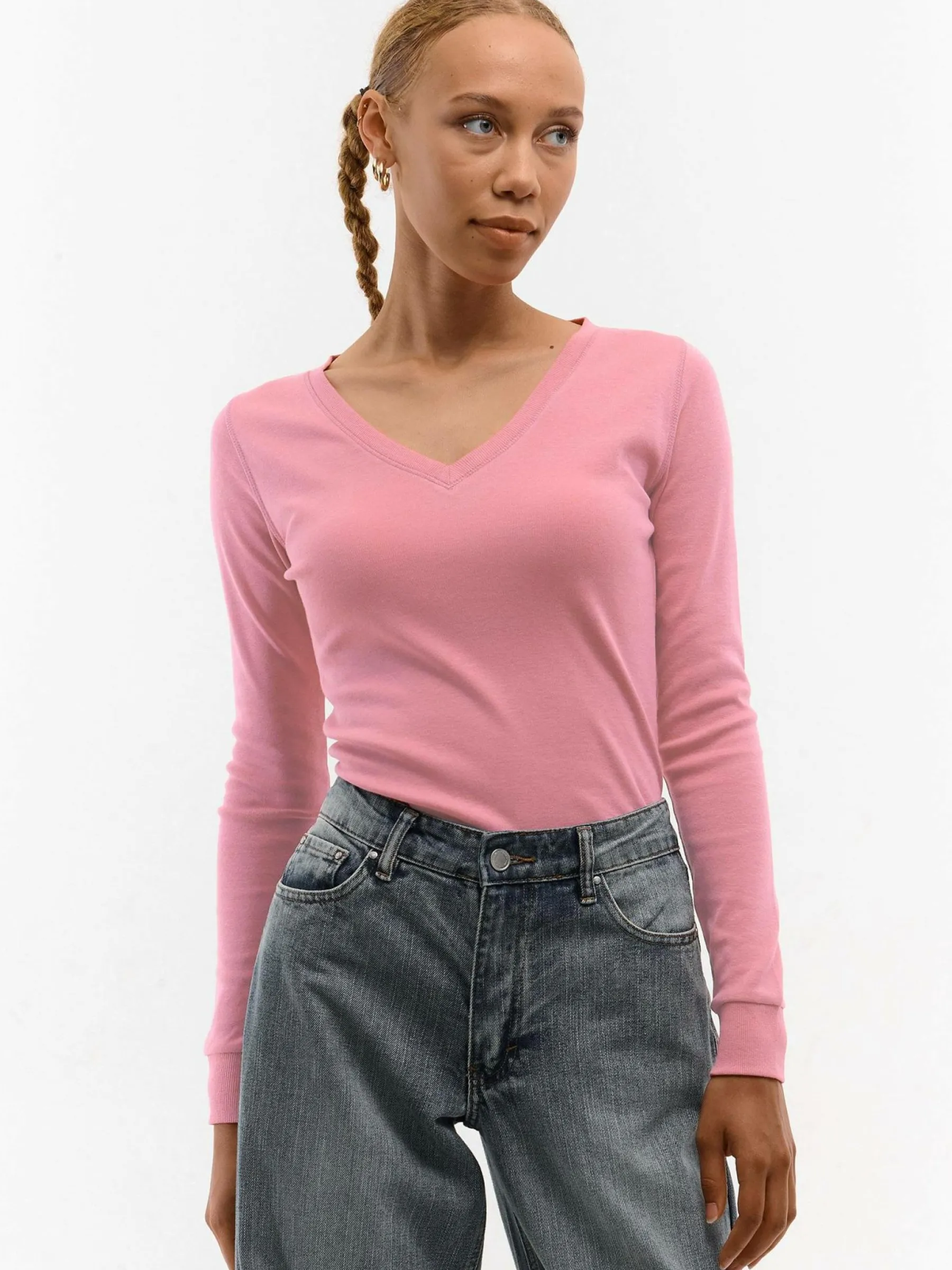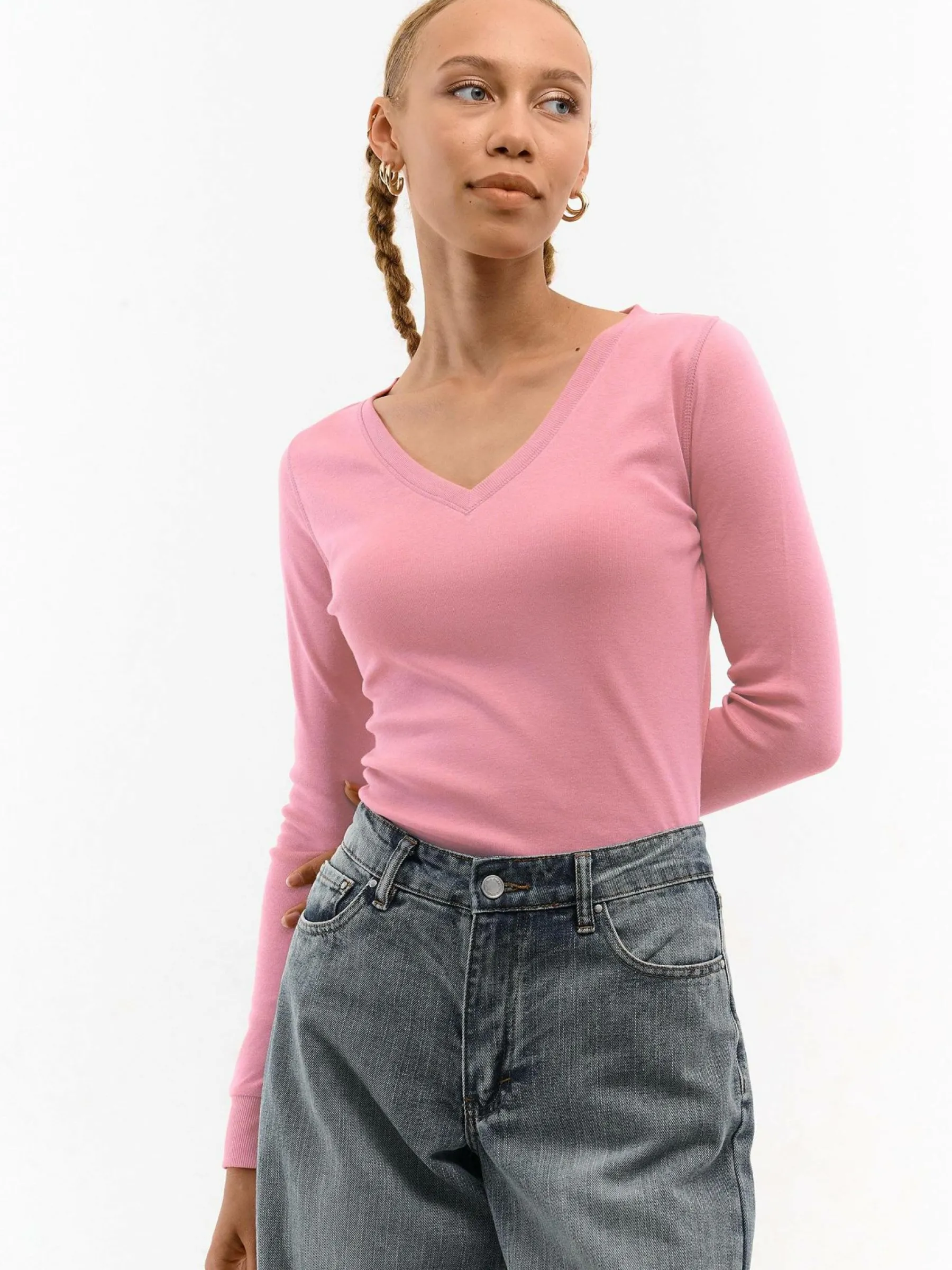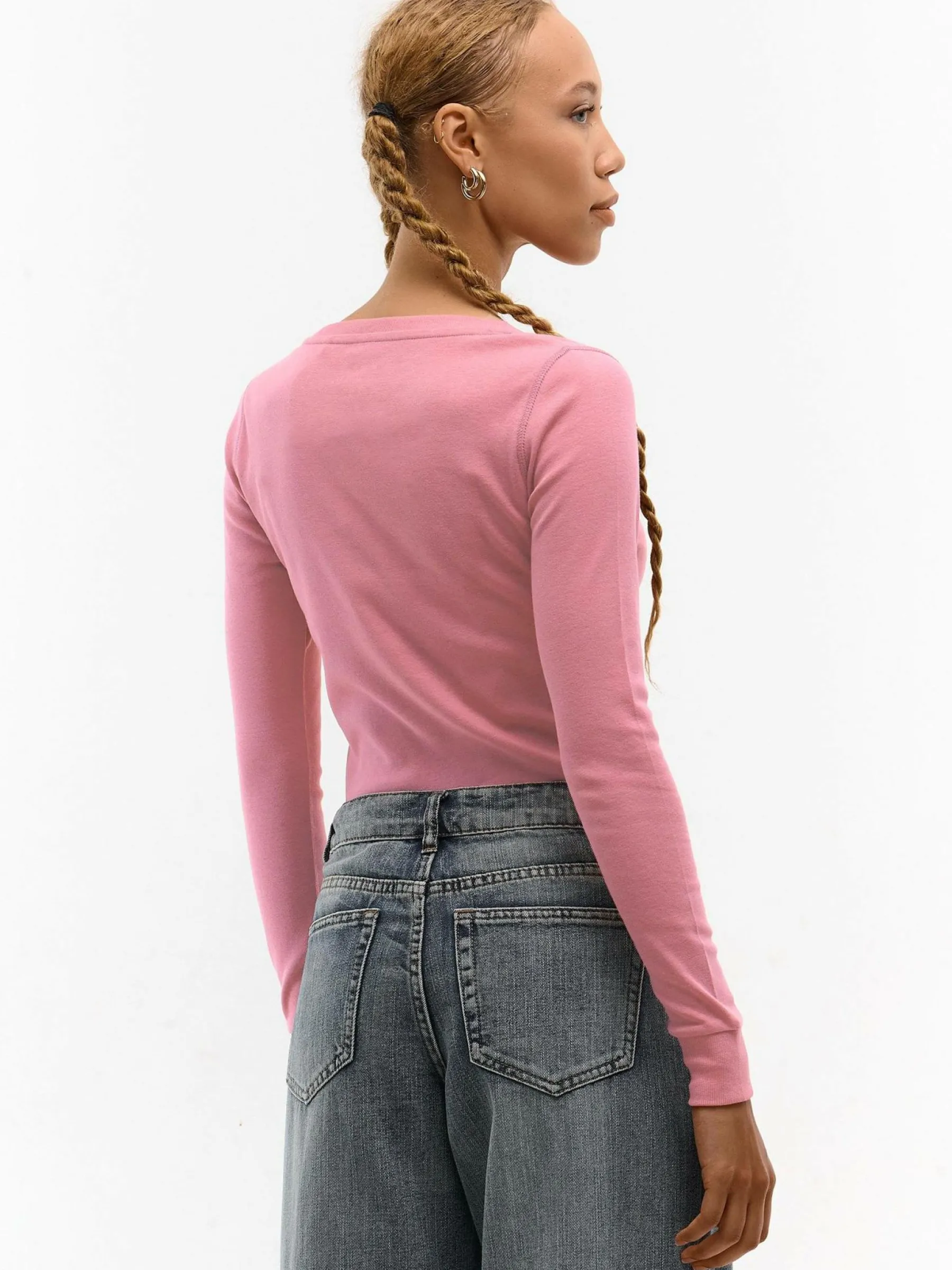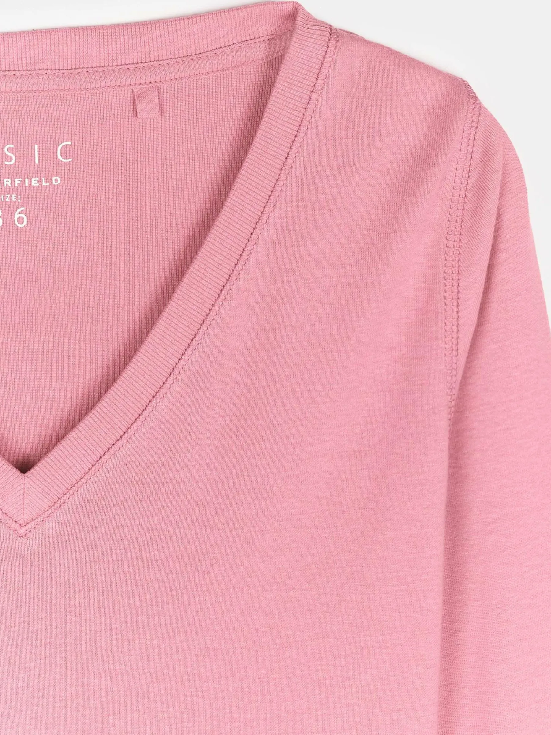 Kolor: różowyKrój: podstawowyTyp: koszulkaRekaw: długi rękawDługość: krótkiPattern style: pojedynczy kolorDetal…