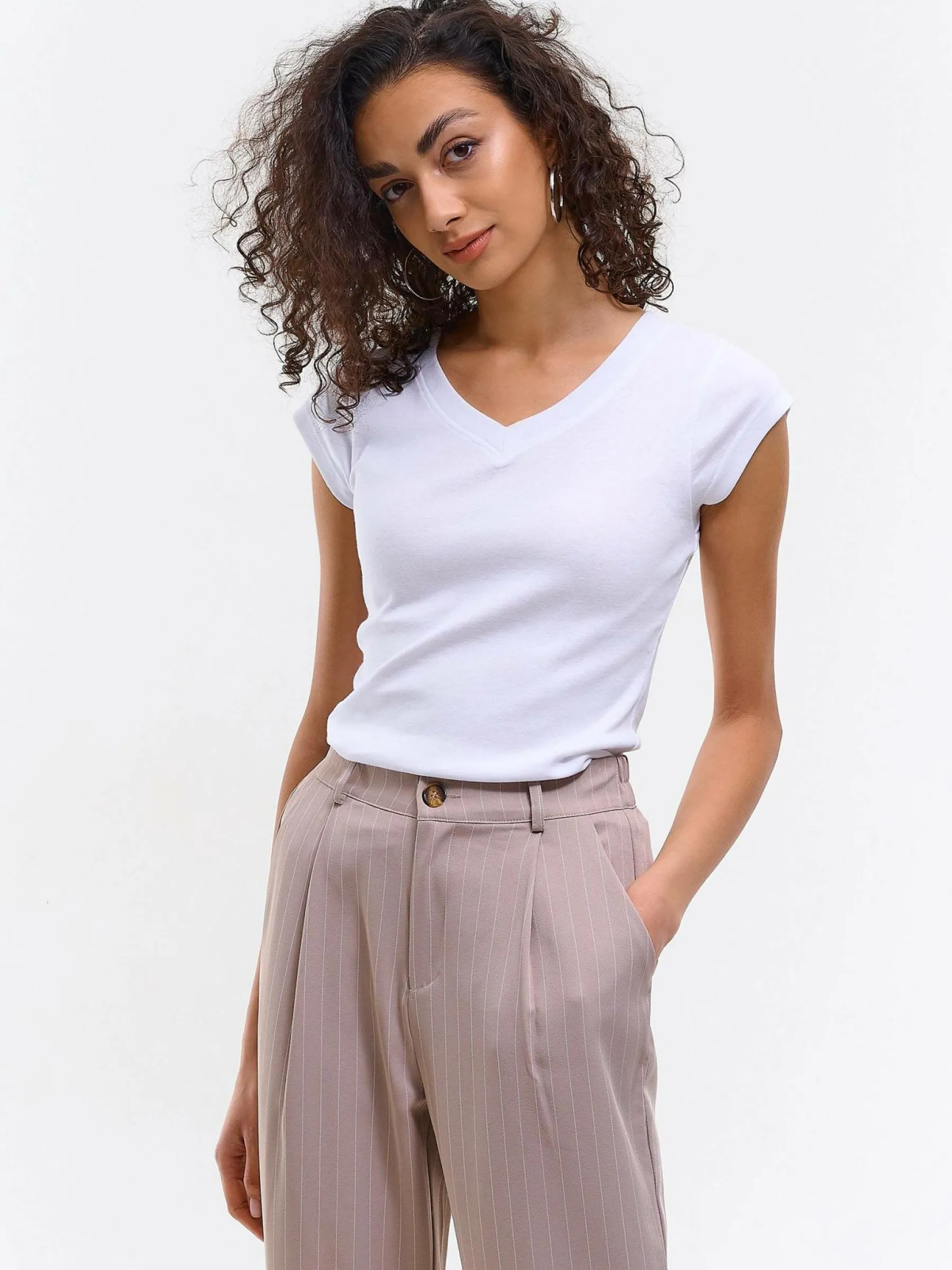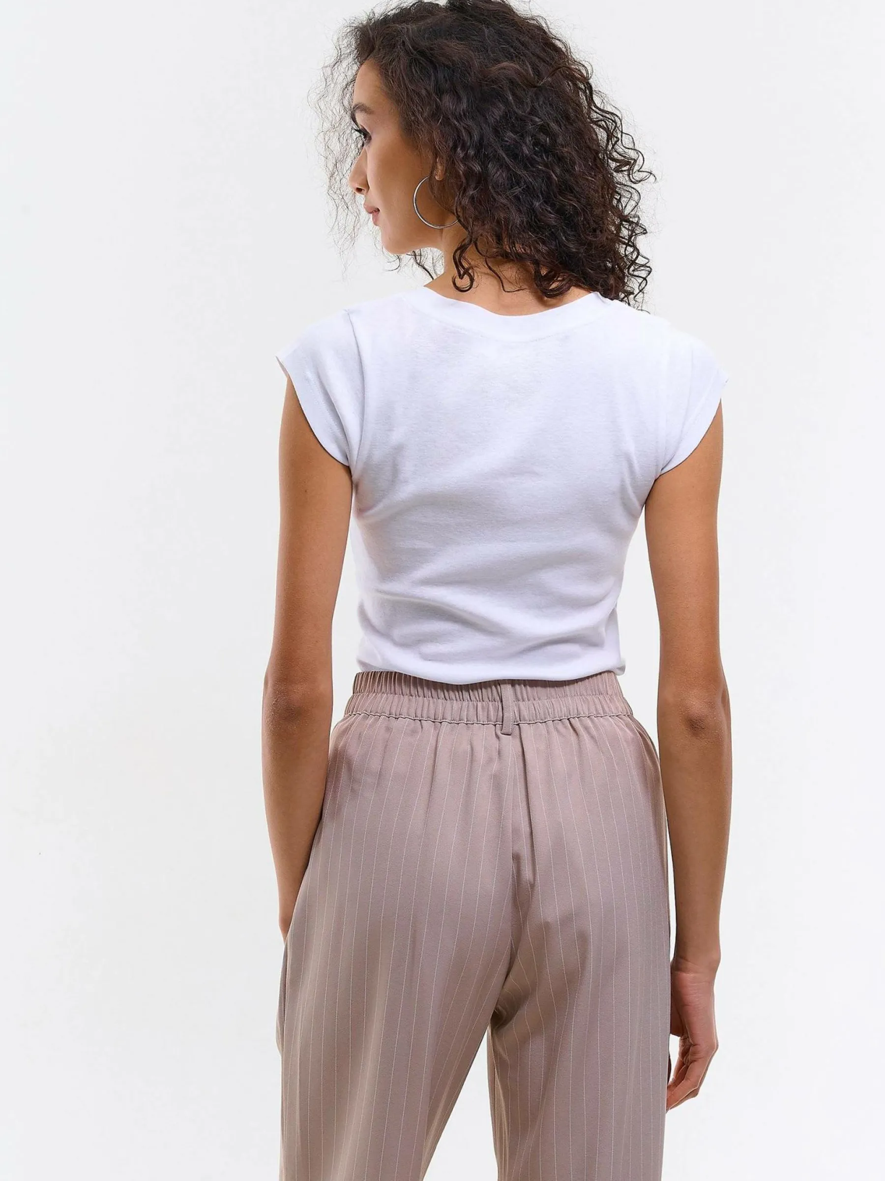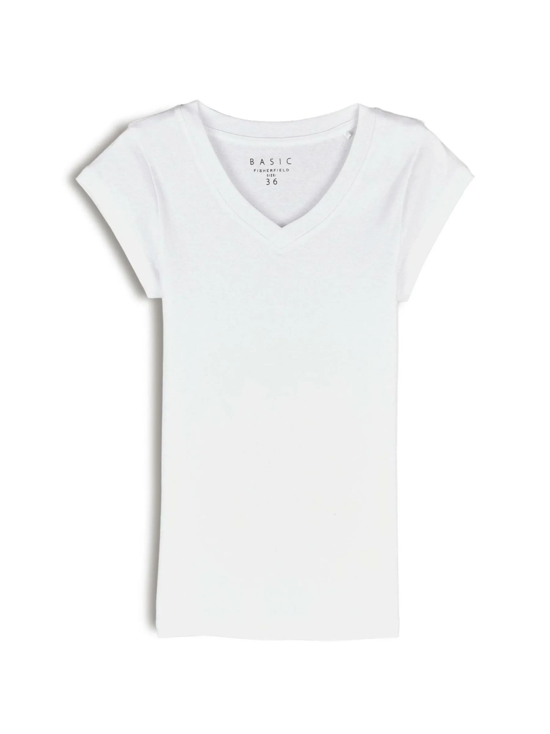 Kolor: białyKrój: regularTyp: koszulkaRekaw: krótki rękawDługość: krótkiPattern style: pojedynczy kolorDetal: na…