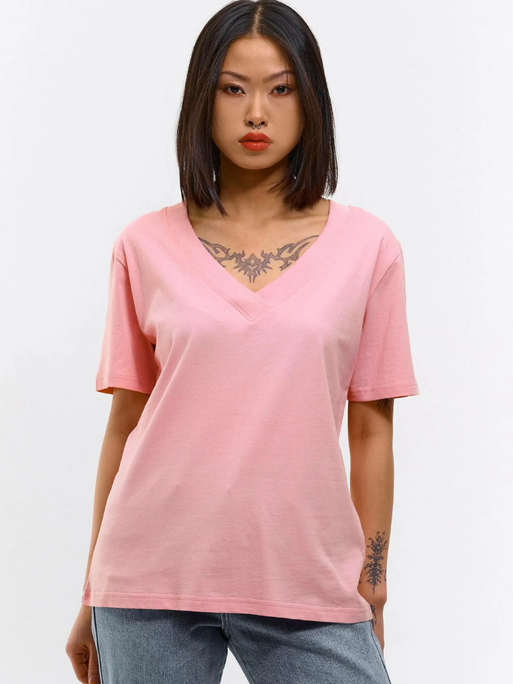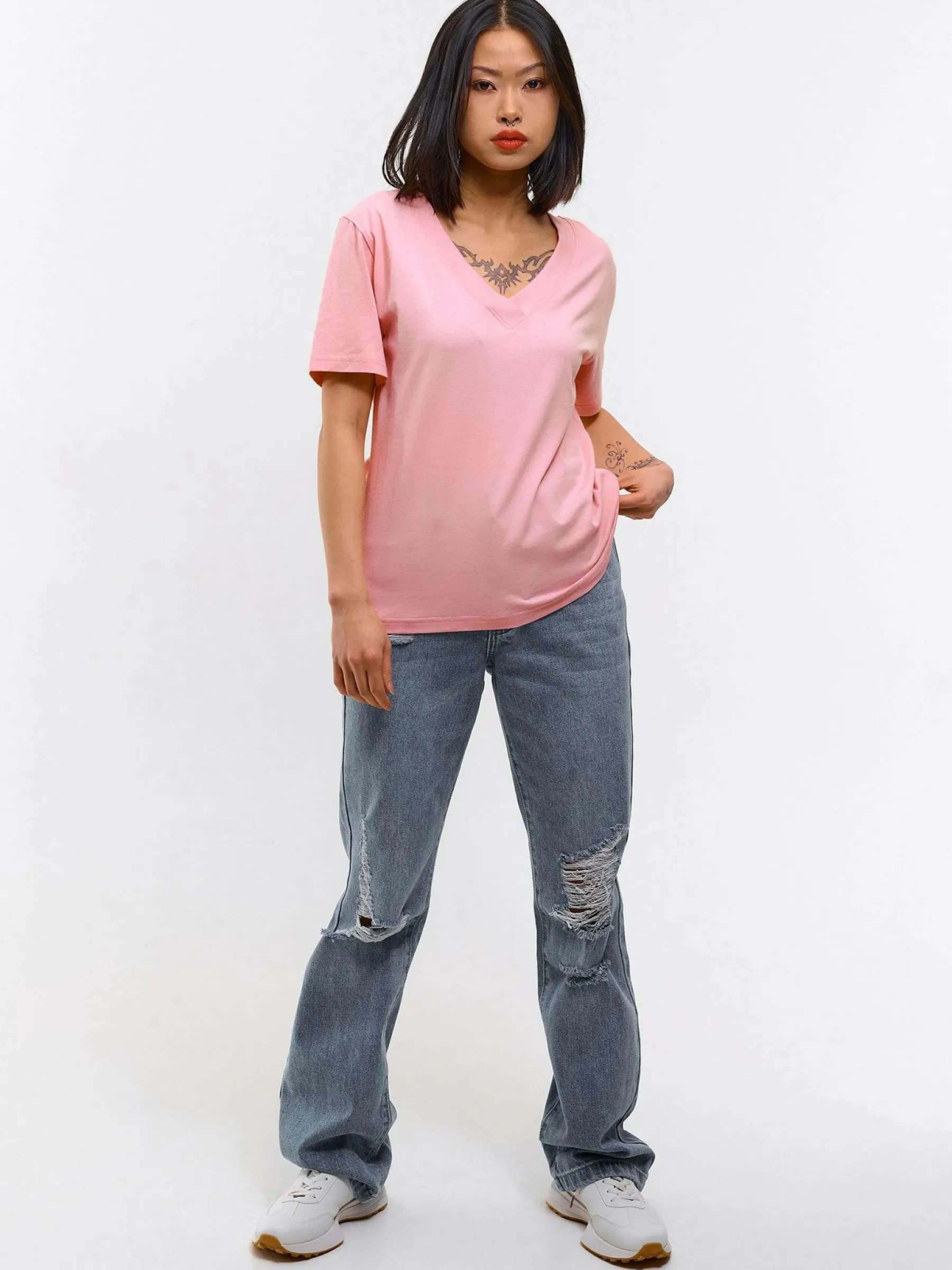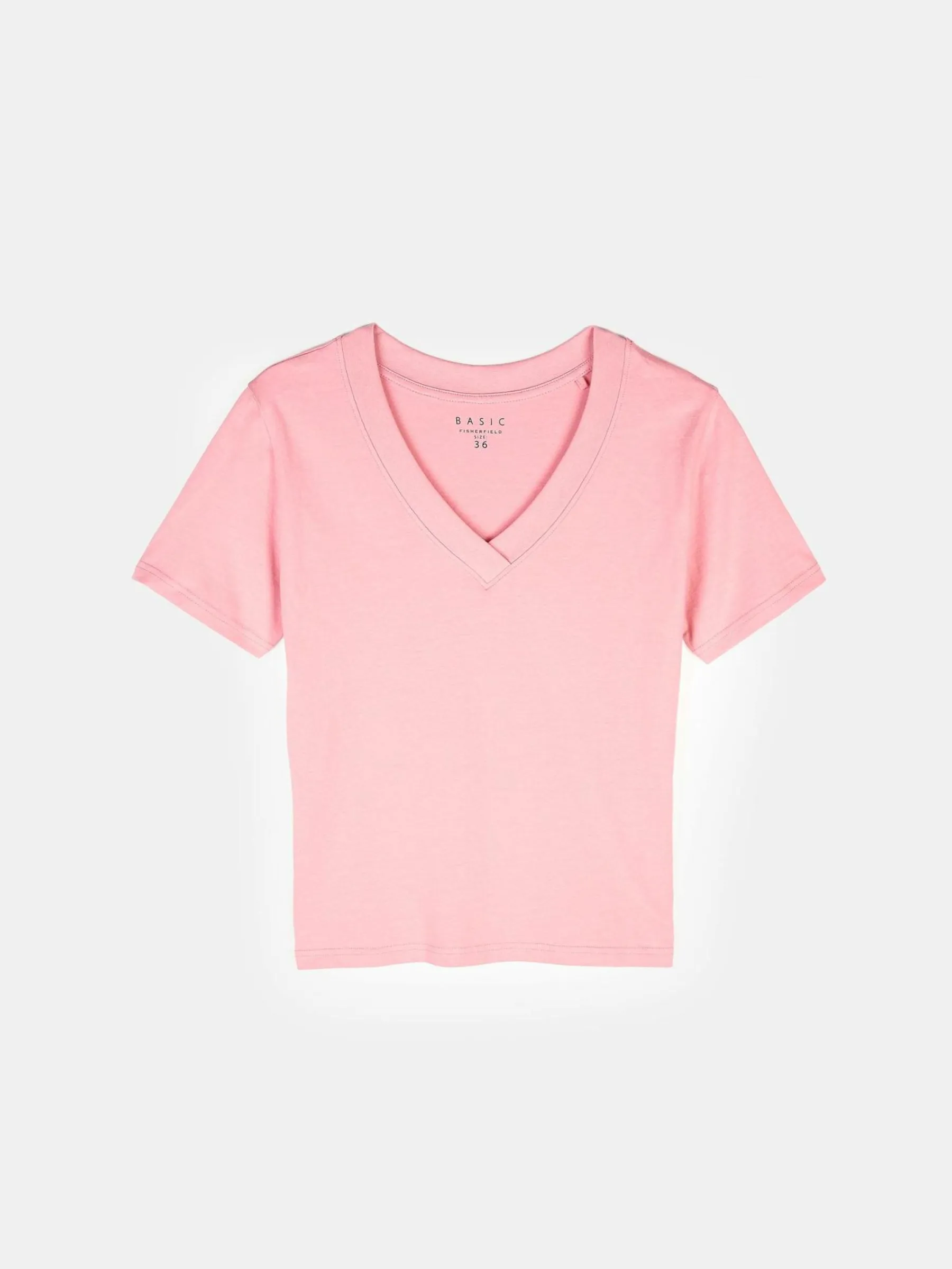Kolor: różowyKrój: podstawowyTyp: koszulkaRekaw: krótki rękawDługość: krótkiPattern style: pojedynczy kolorDeta…