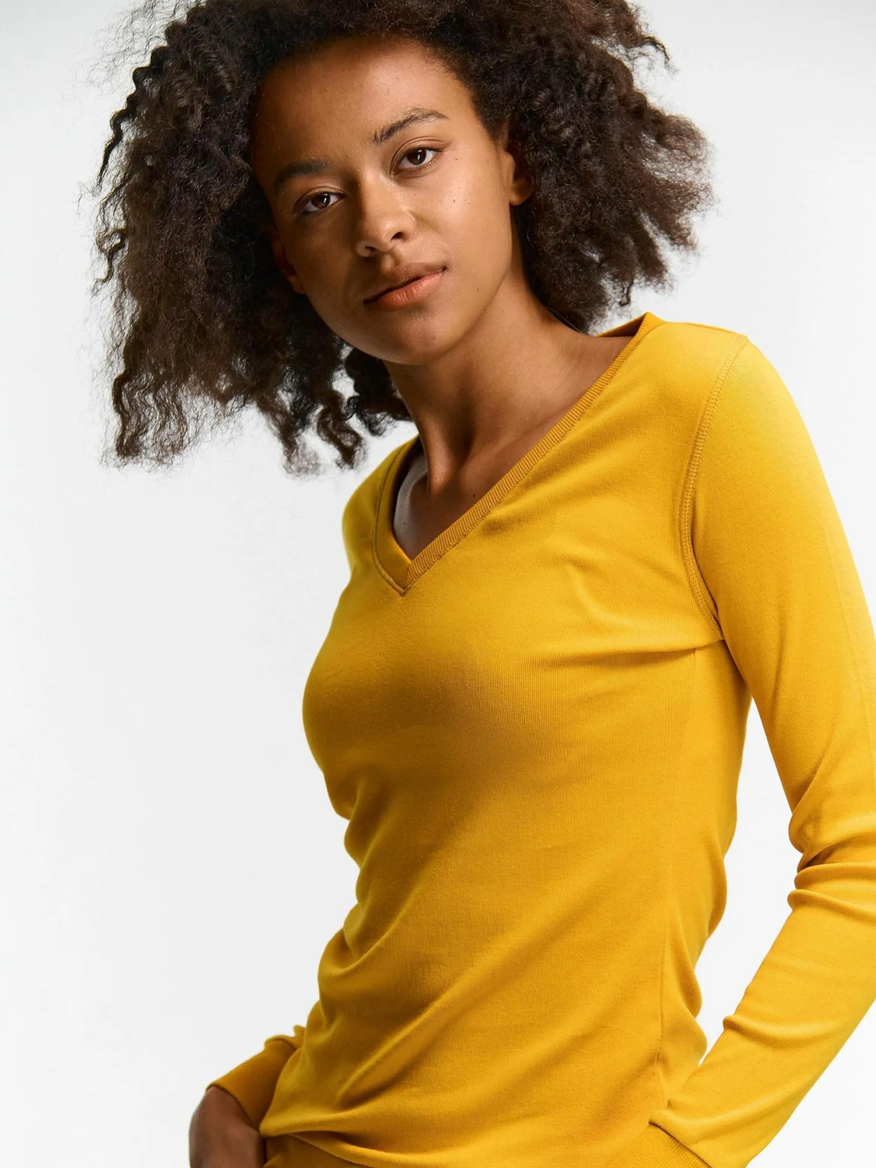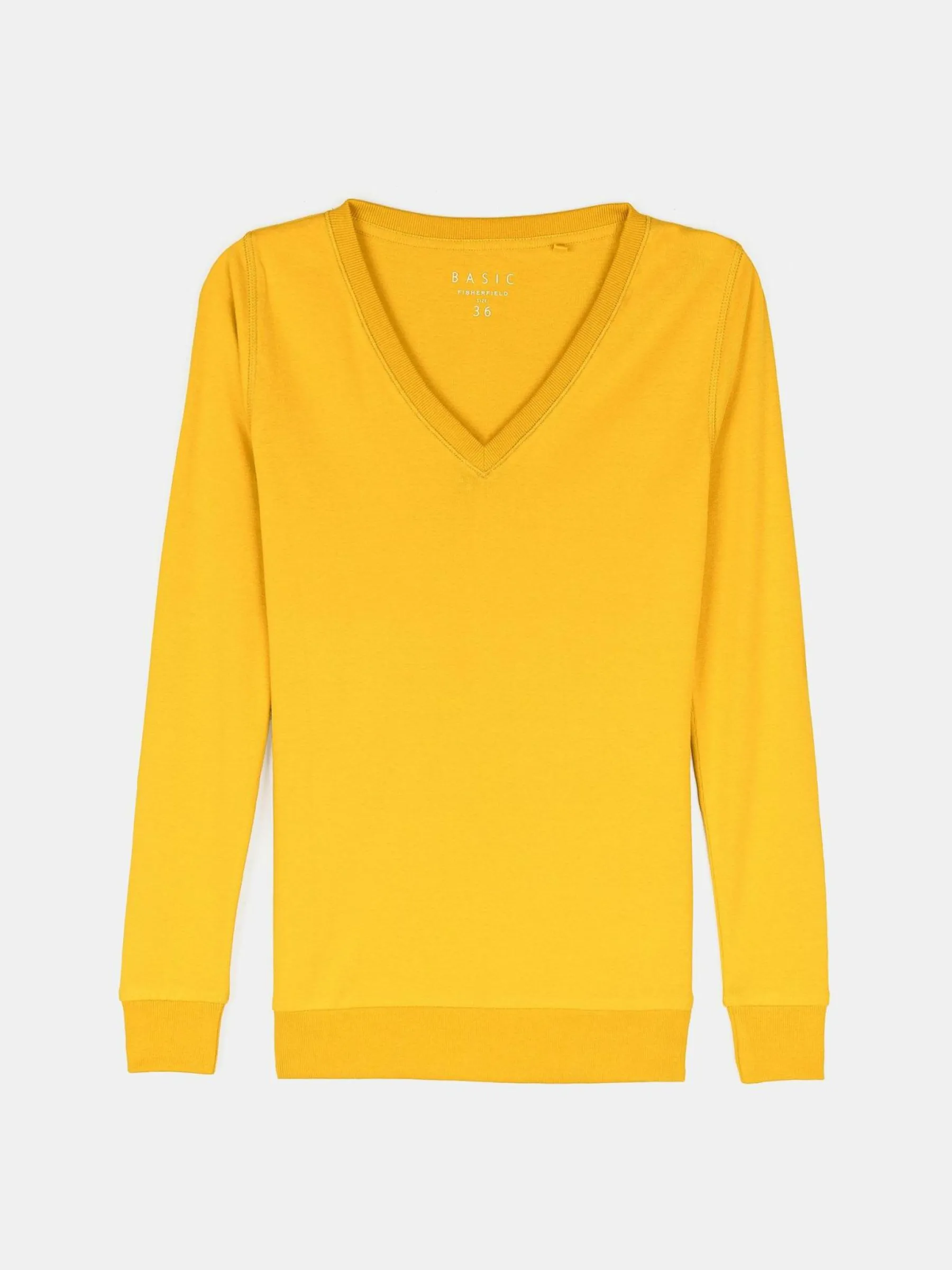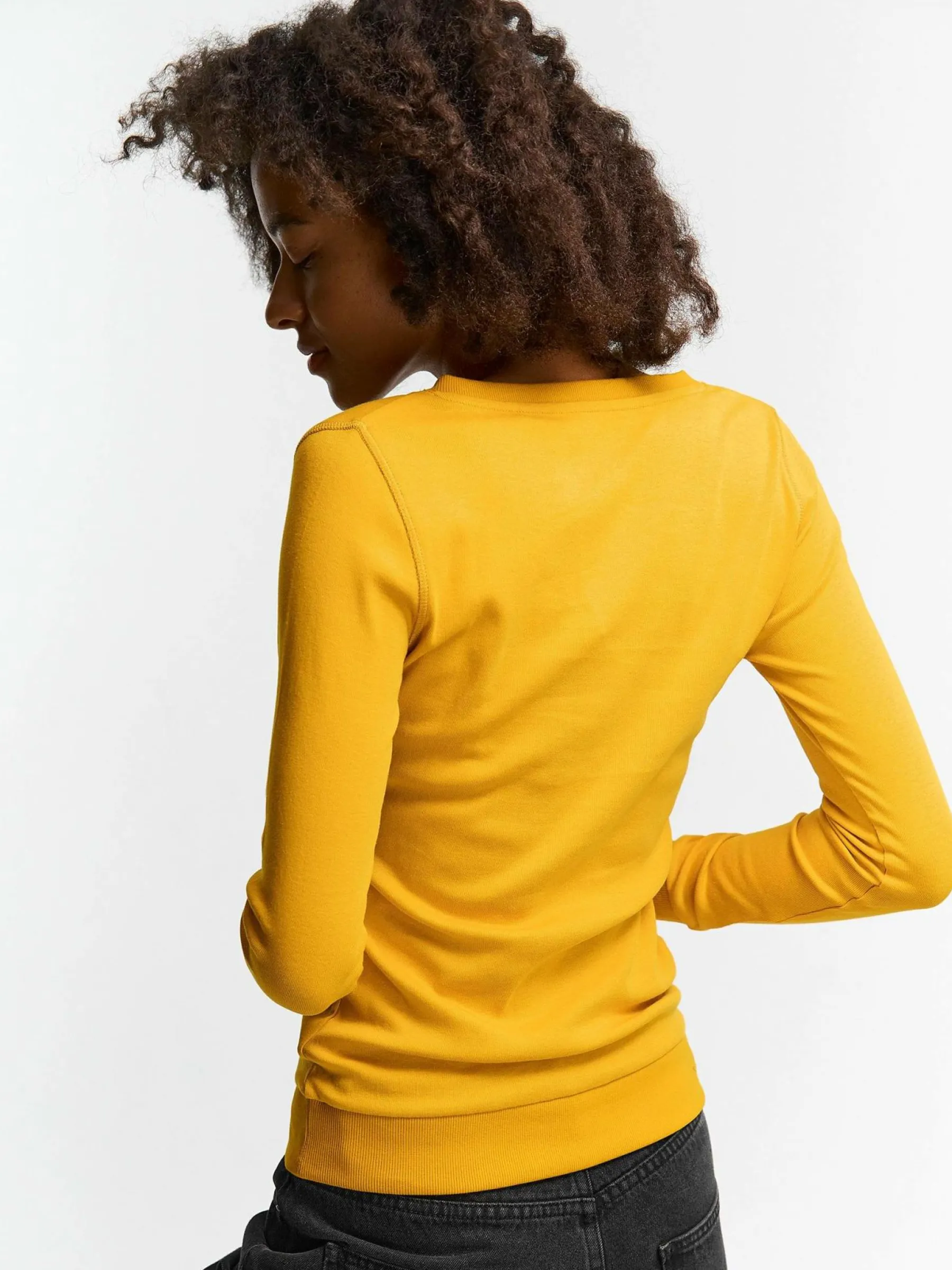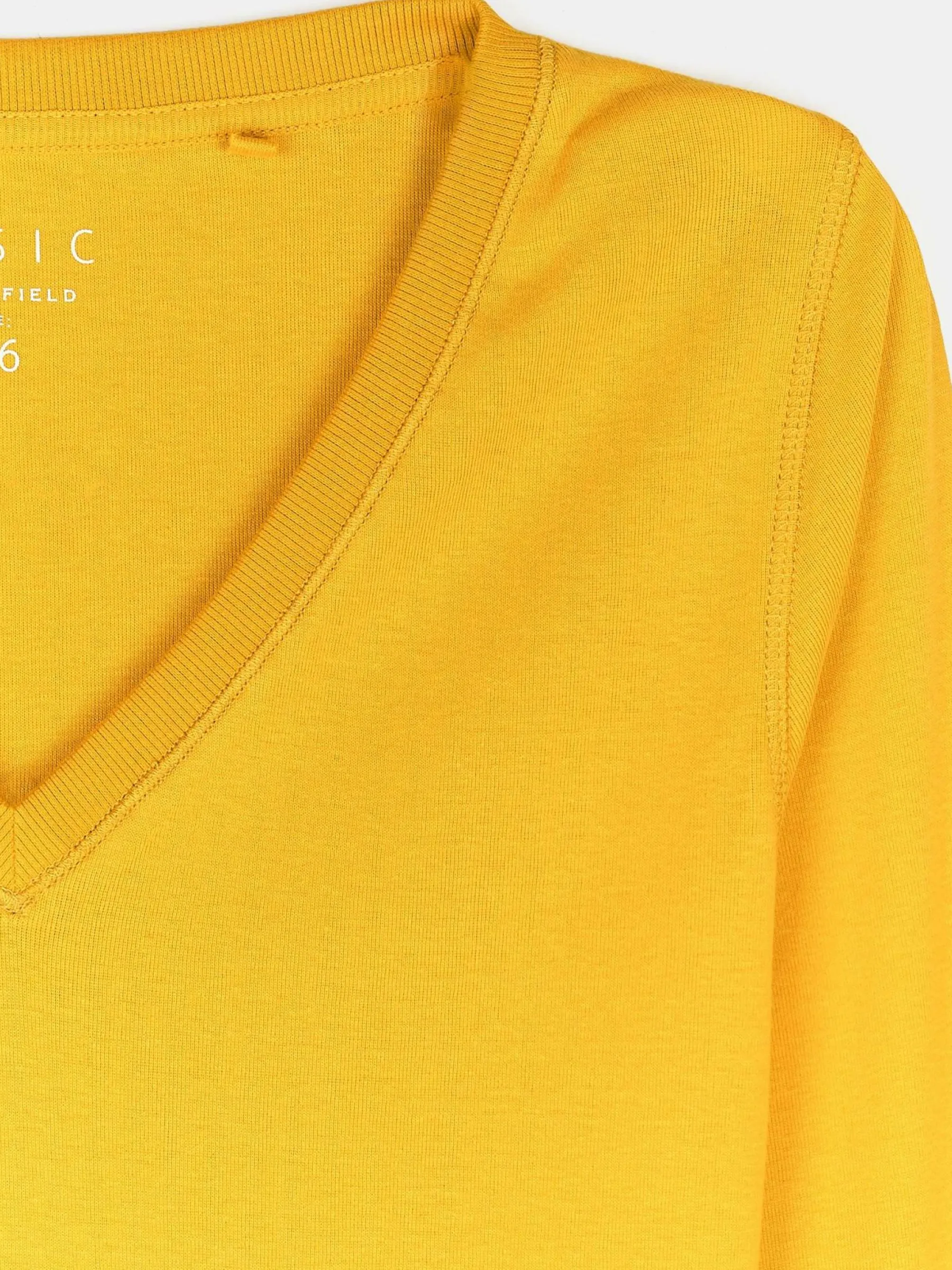 Kolor: żółty, pomarańczowyKrój: podstawowyTyp: koszulkaRekaw: długi rękawDługość: krótkiPattern style: pojedy…