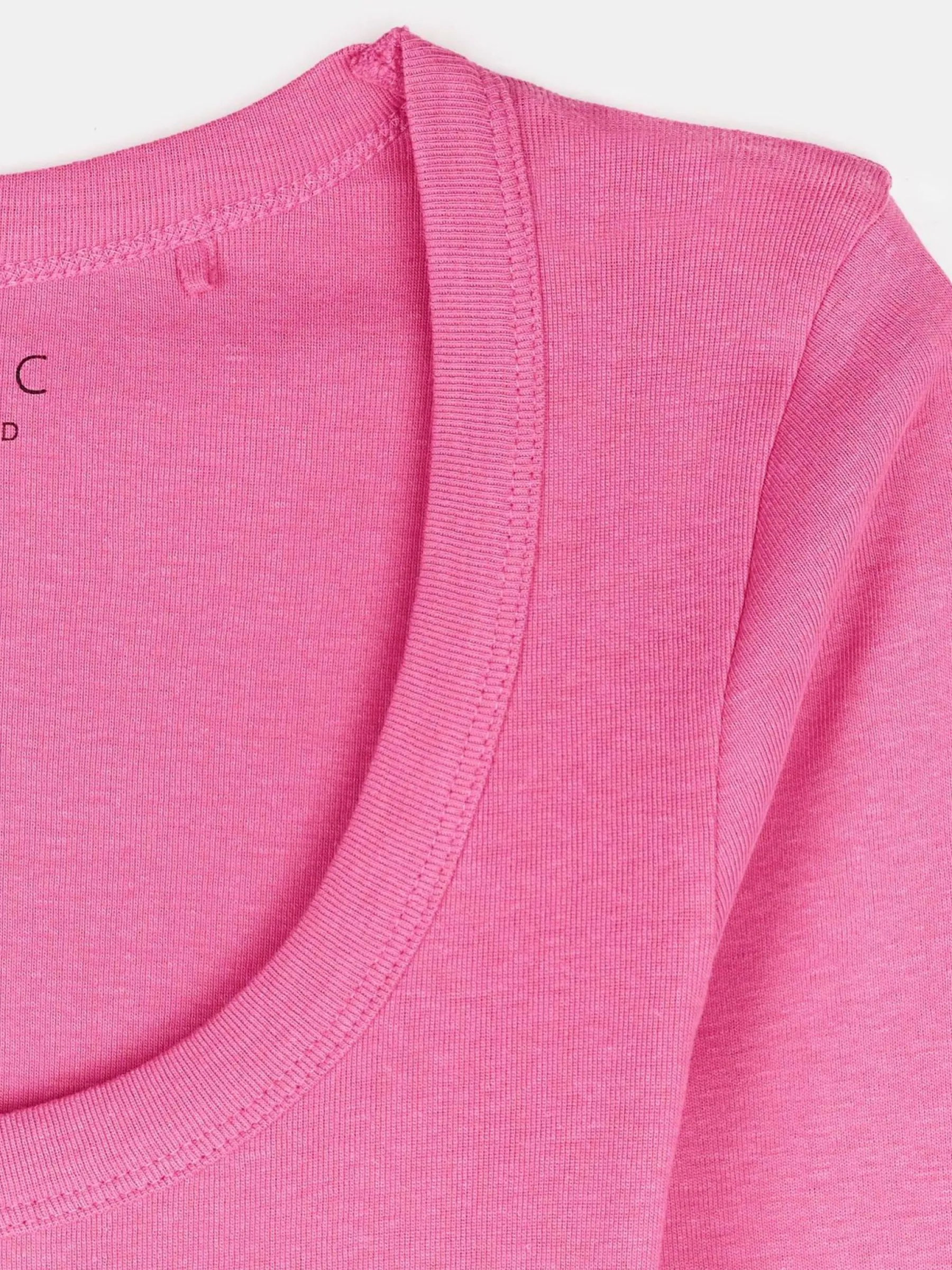 Zdjęcia z modelką mogą nie odpowiadać rzeczywistemu kolorowi produktu.Kolor: różowyKrój: regularTyp: koszulkaReka…
