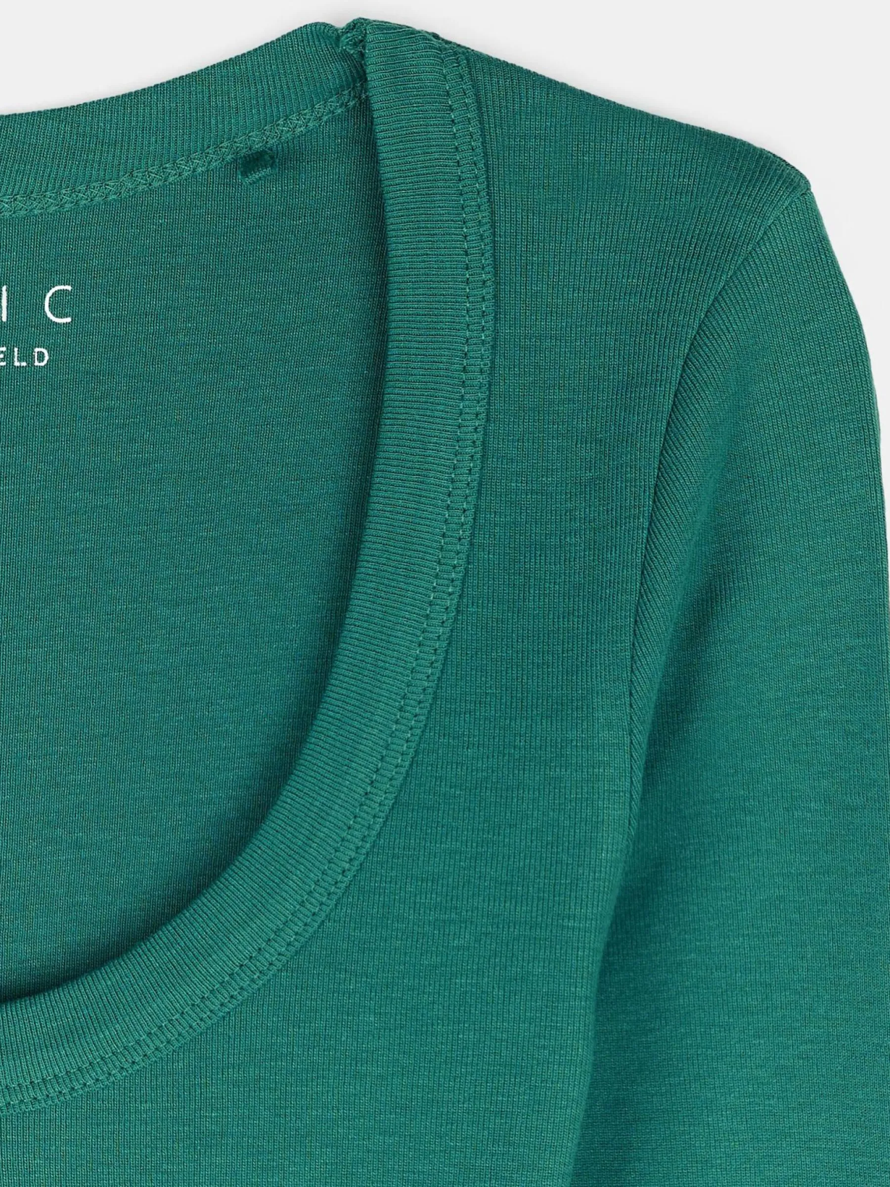 Kolor: zielonyKrój: regularTyp: koszulkaRekaw: długi rękawDługość: krótkiPattern style: pojedynczy kolorDetal: na…