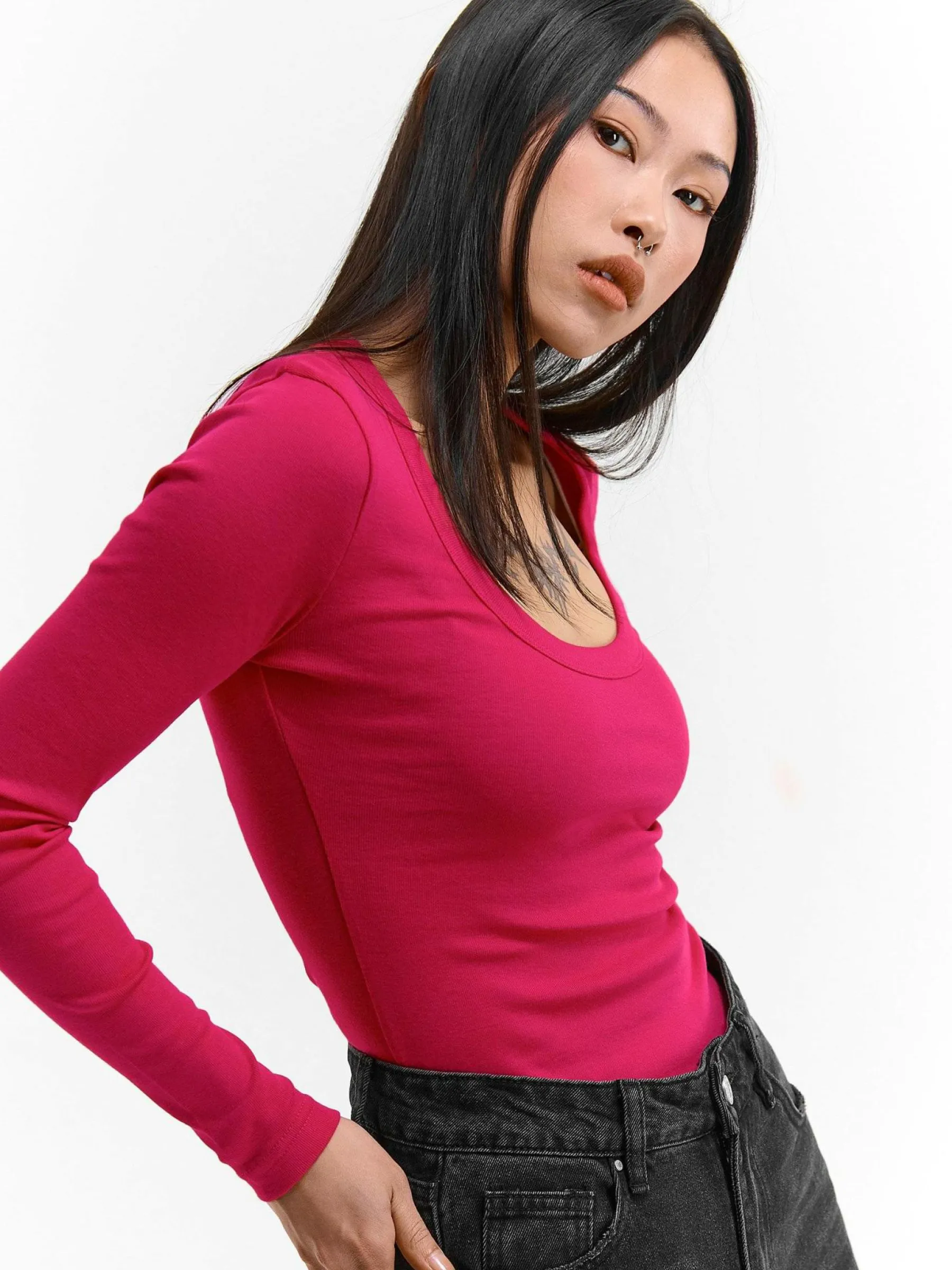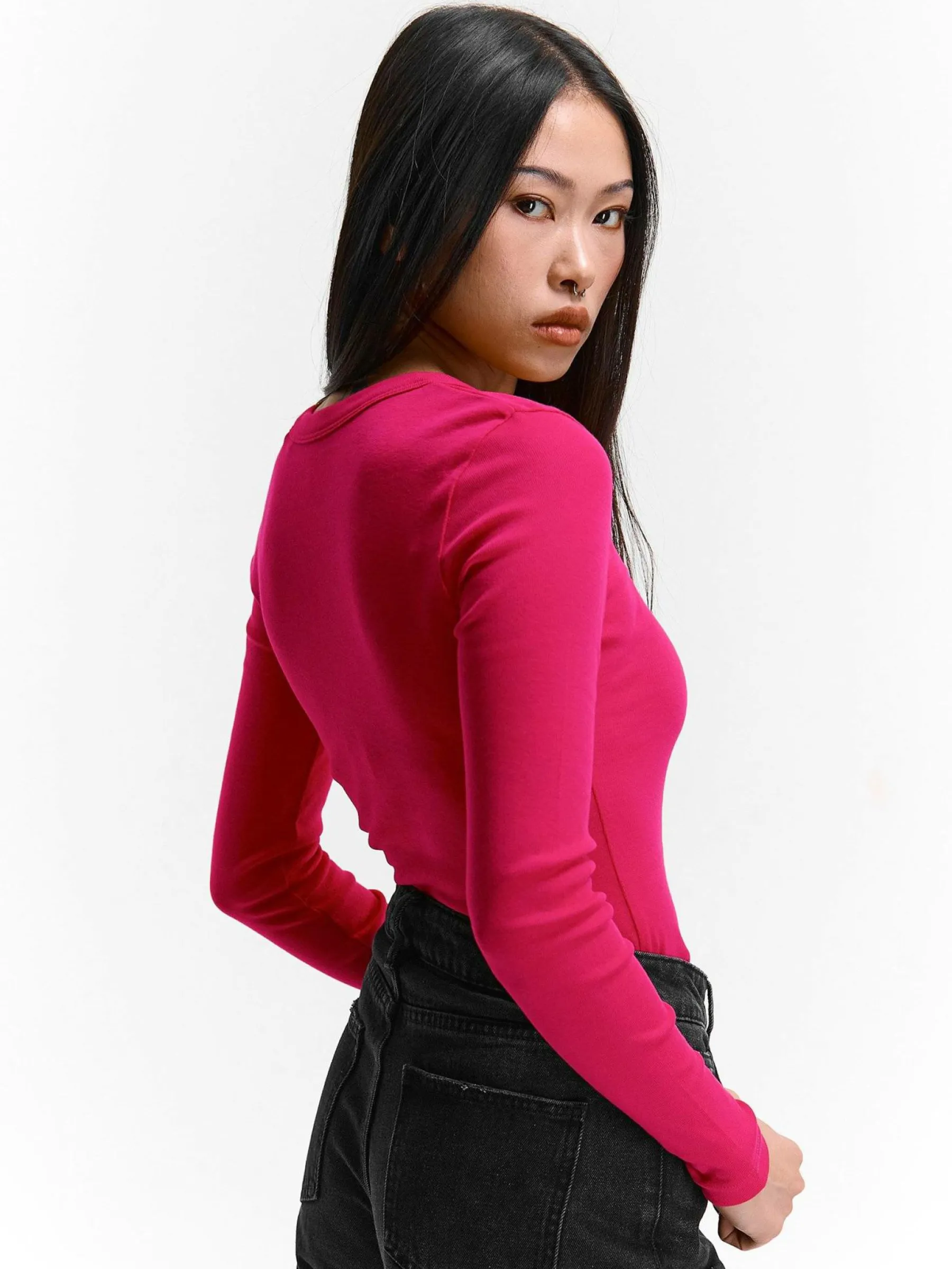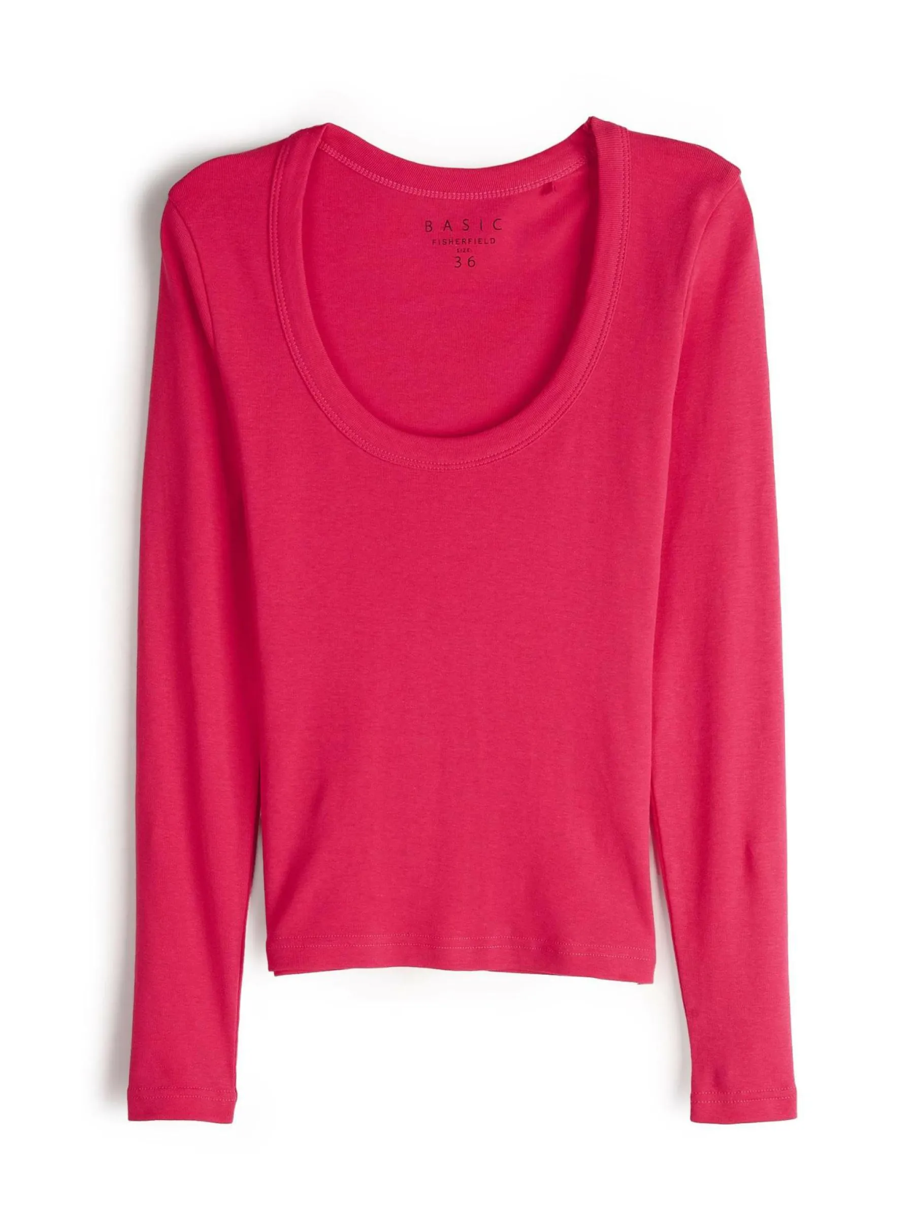 Kolor: różowyKrój: regularTyp: koszulkaRekaw: długi rękawDługość: krótkiPattern style: pojedynczy kolorDetal: n…