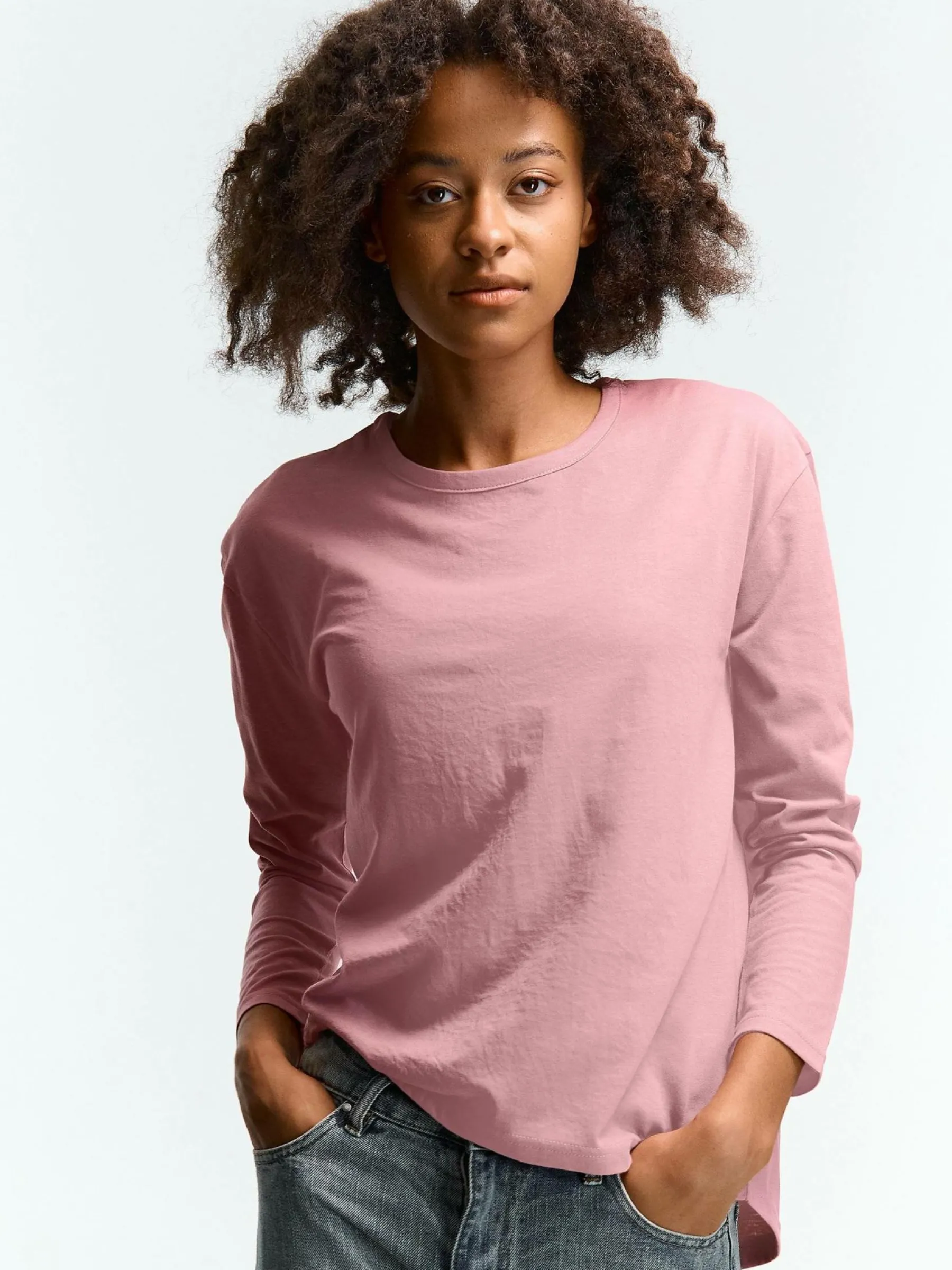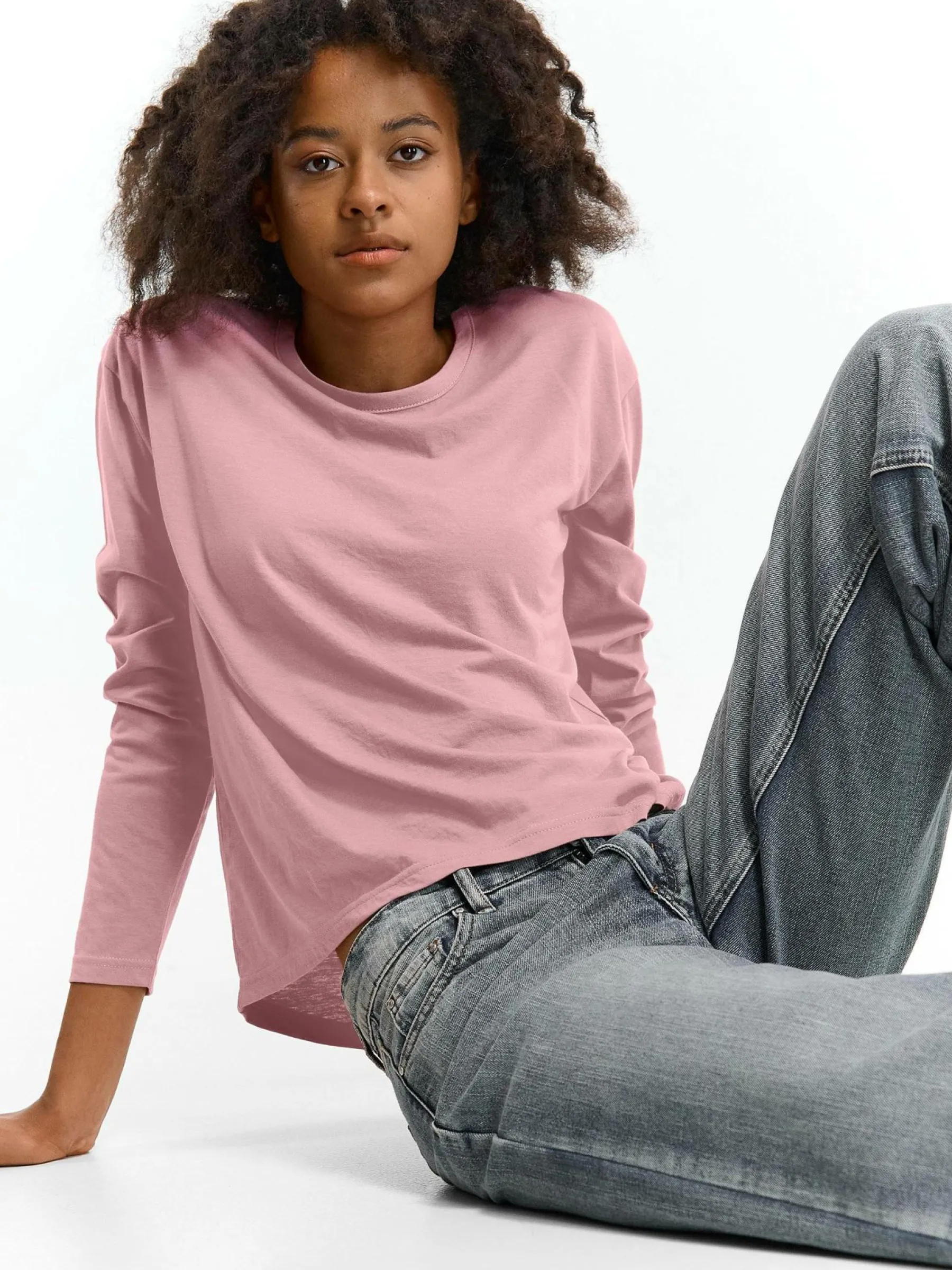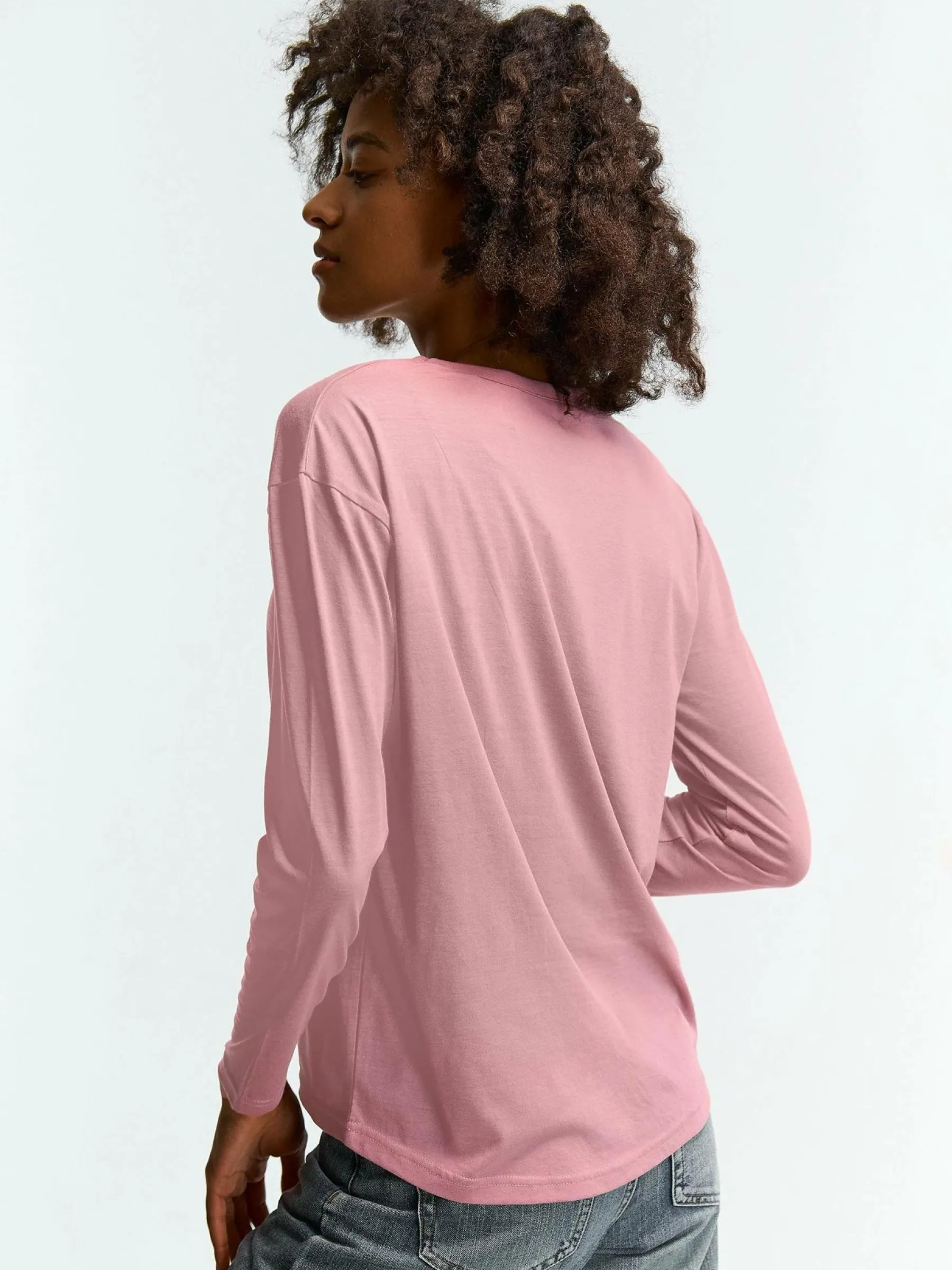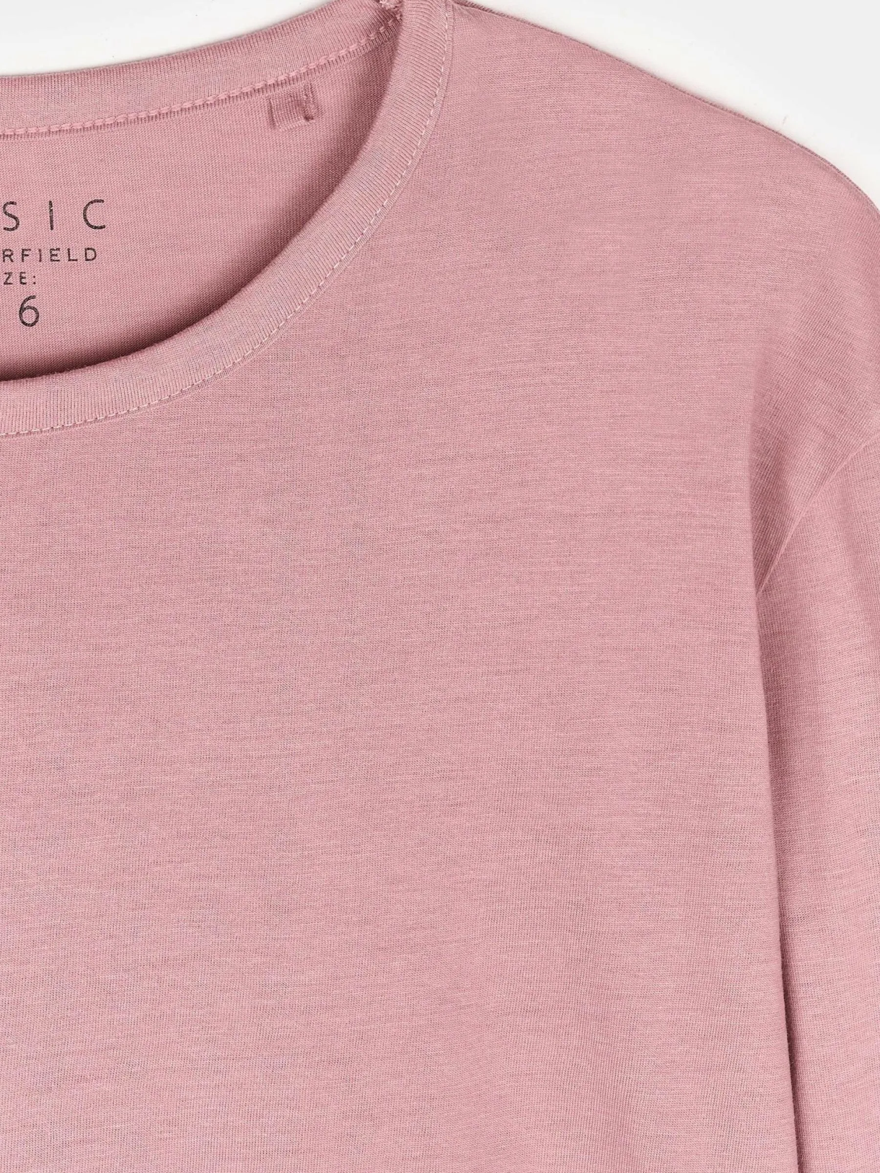 Kolor: różowyKrój: regularTyp: koszulkaRekaw: długi rękawDługość: krótkiPattern style: pojedynczy kolorDetal: n…