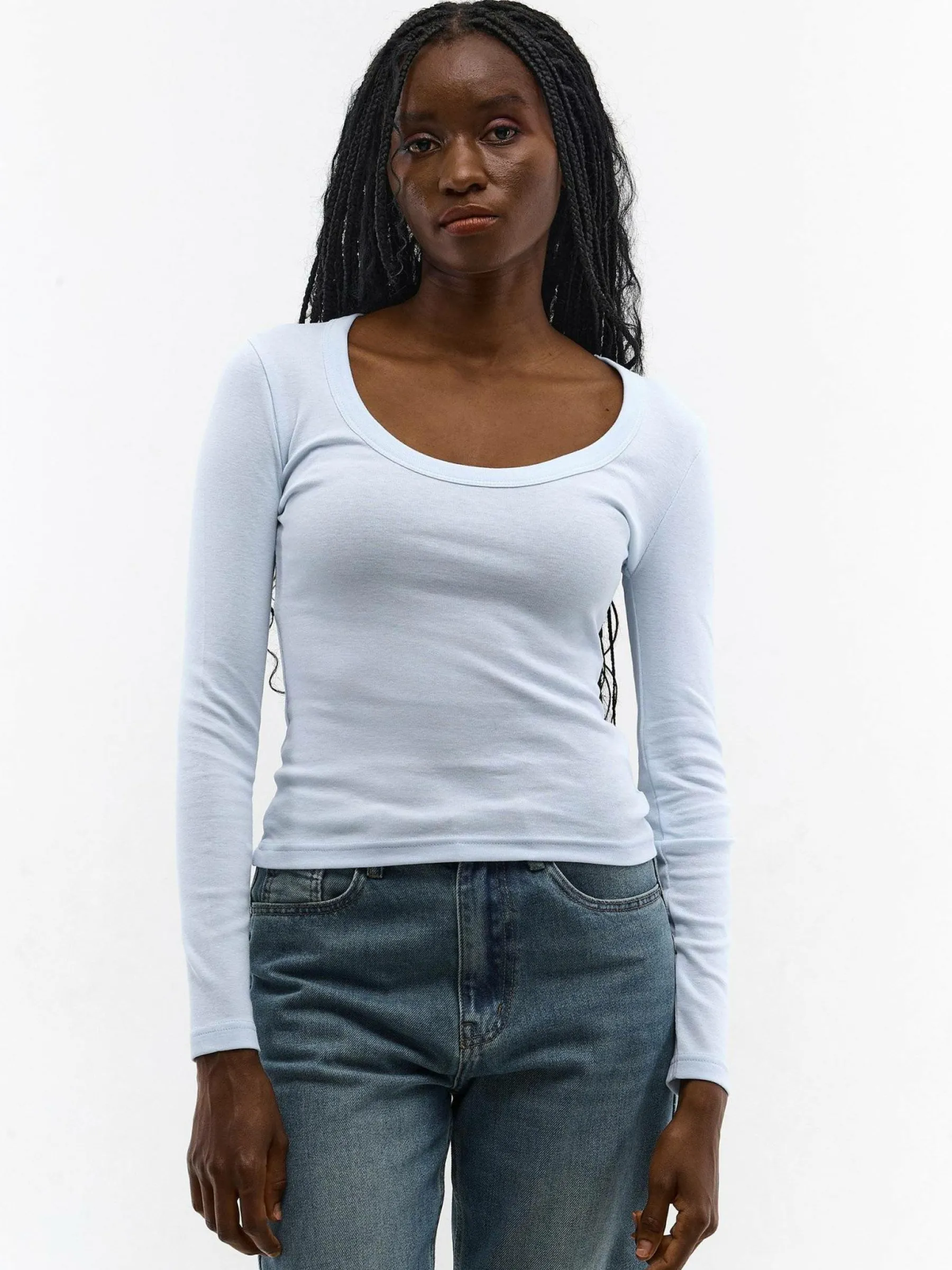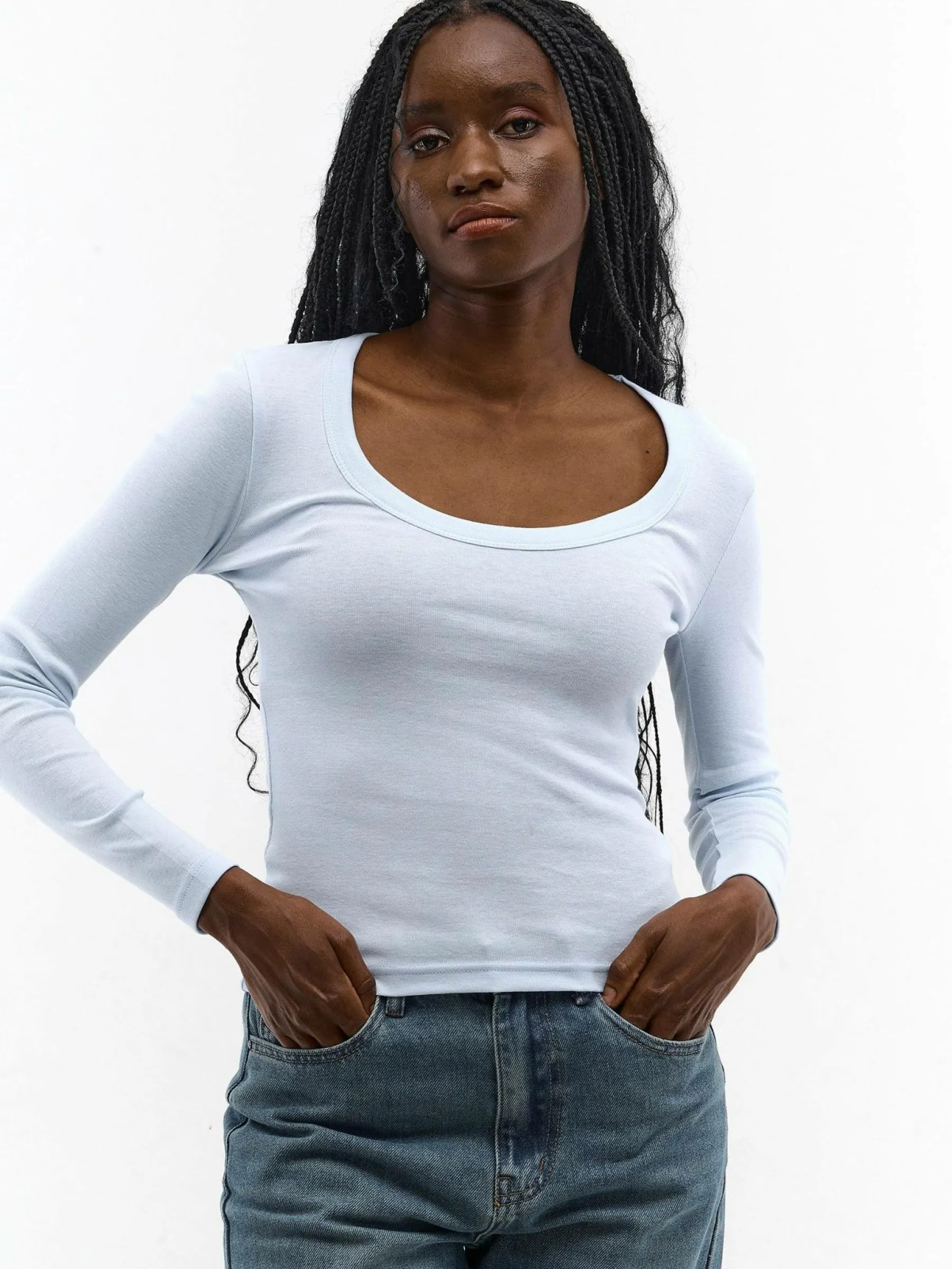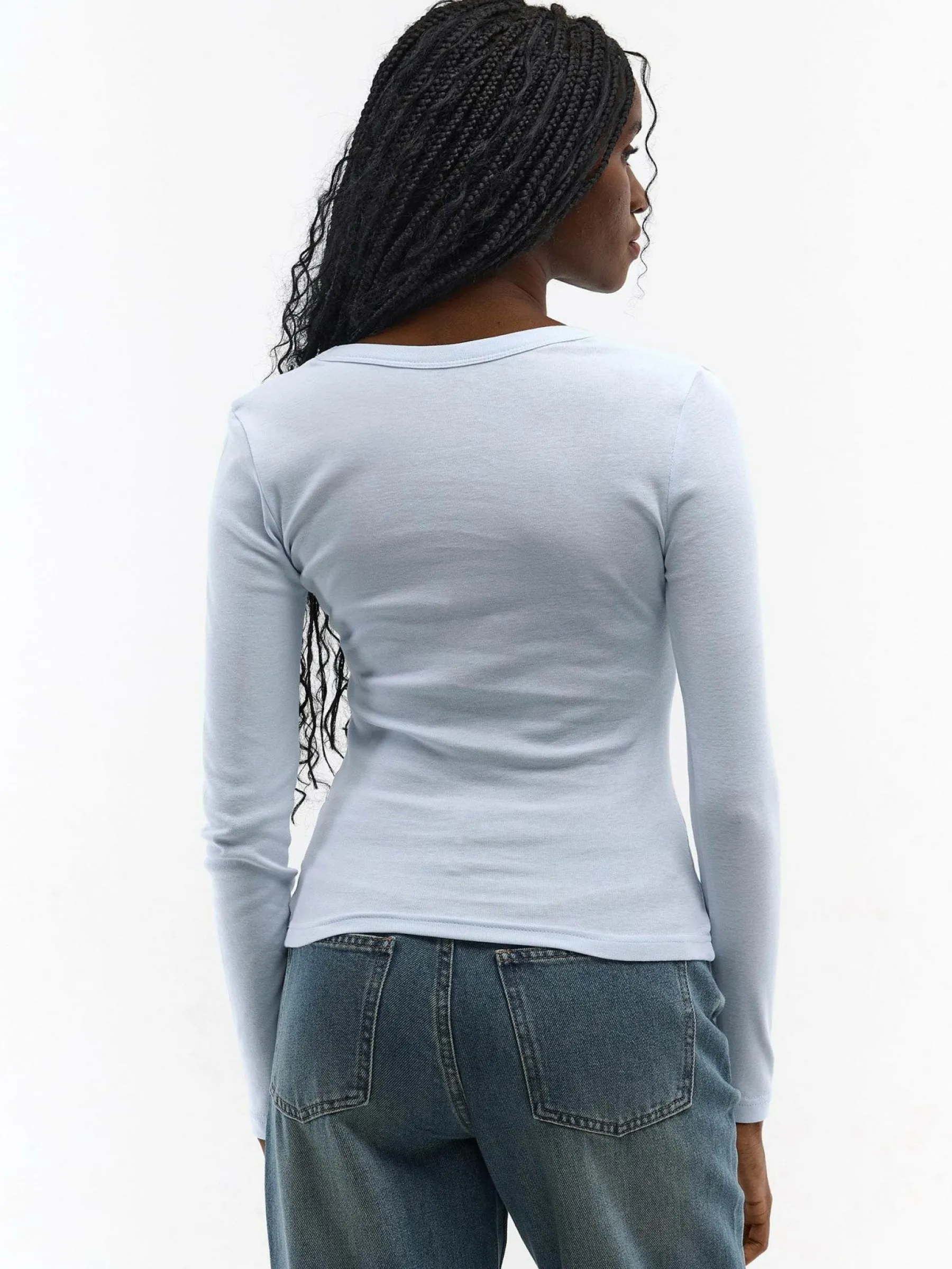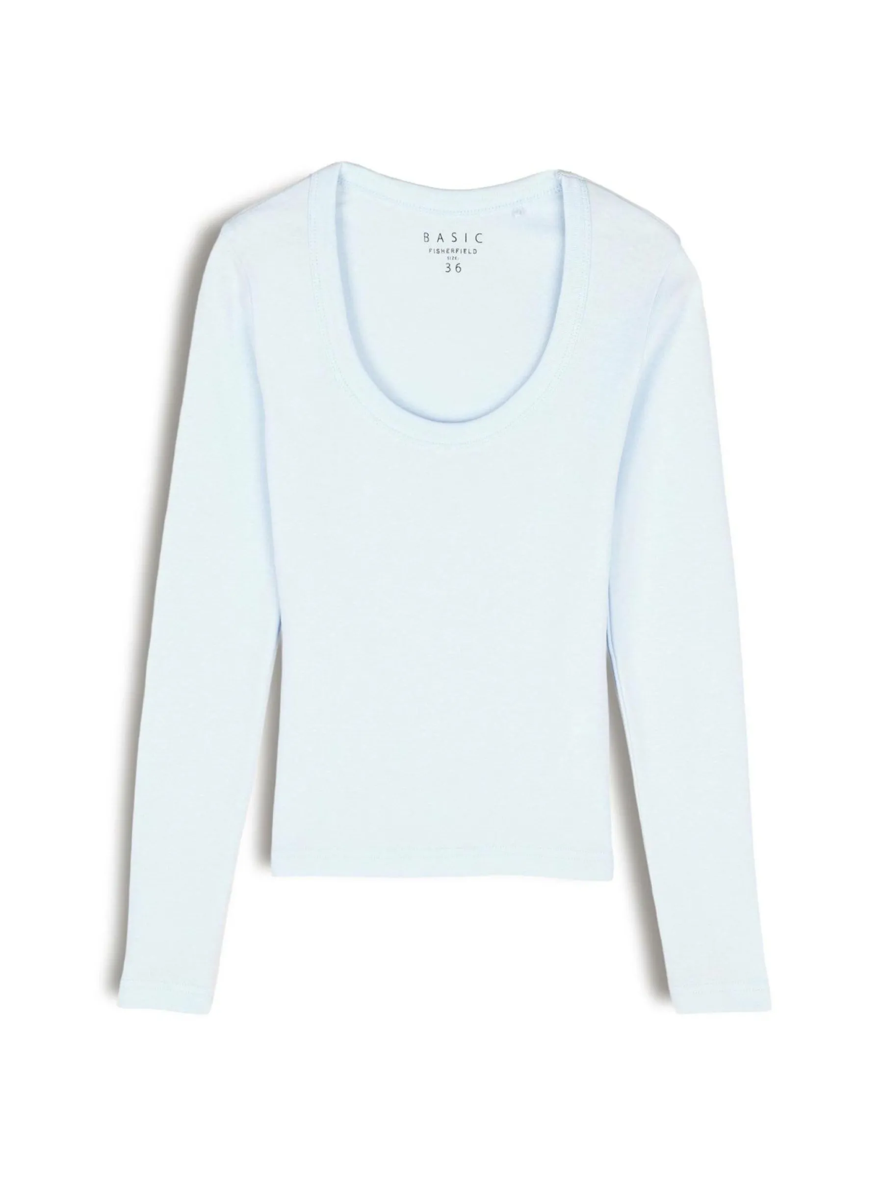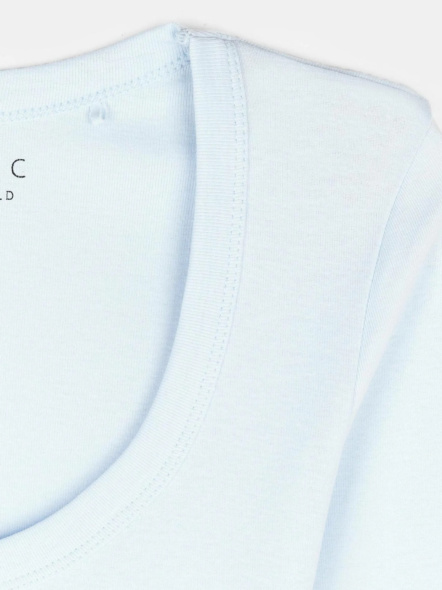 Kolor: niebieskiKrój: regularTyp: koszulkaRekaw: długi rękawDługość: krótkiPattern style: pojedynczy kolorDetal: …