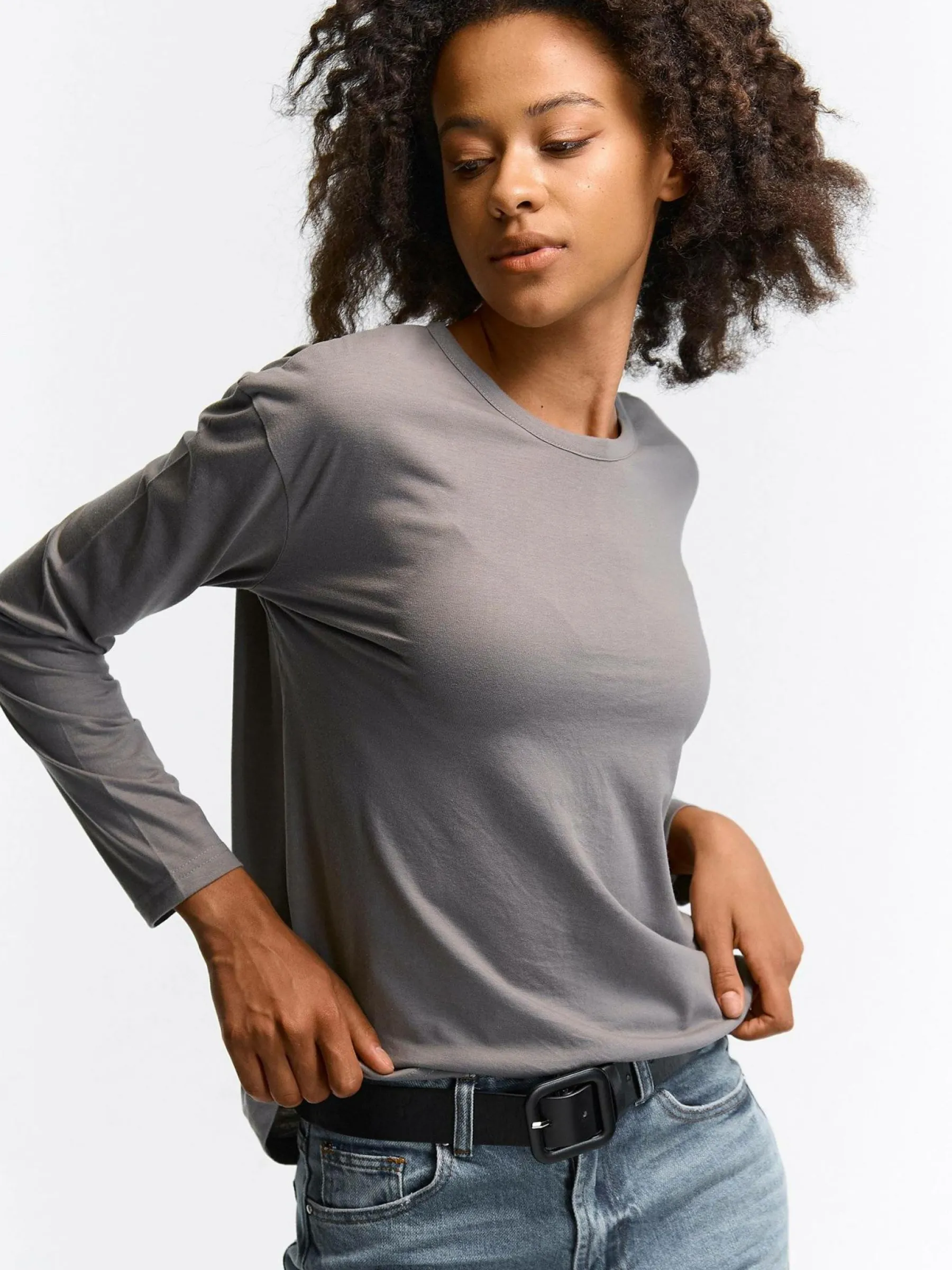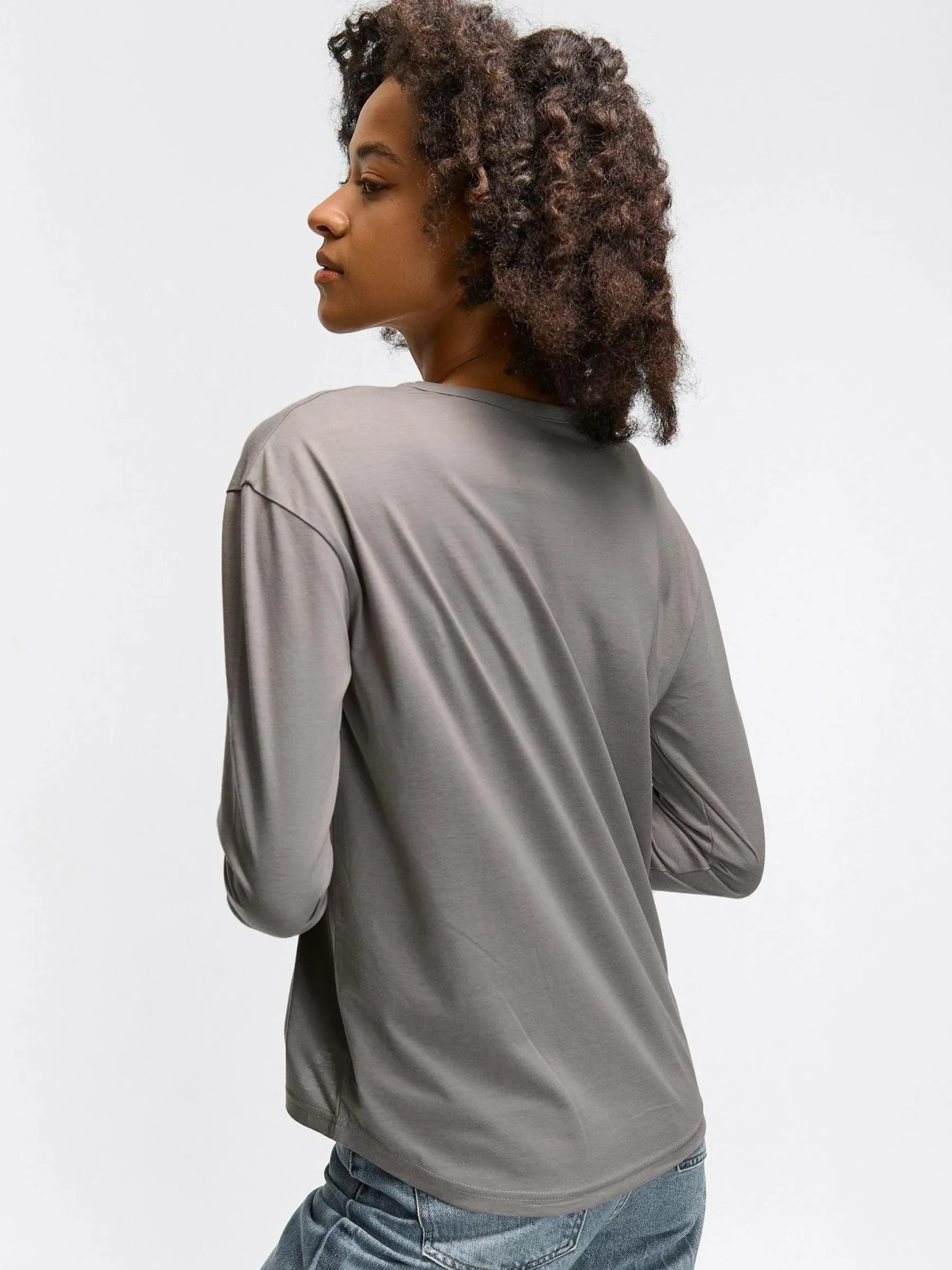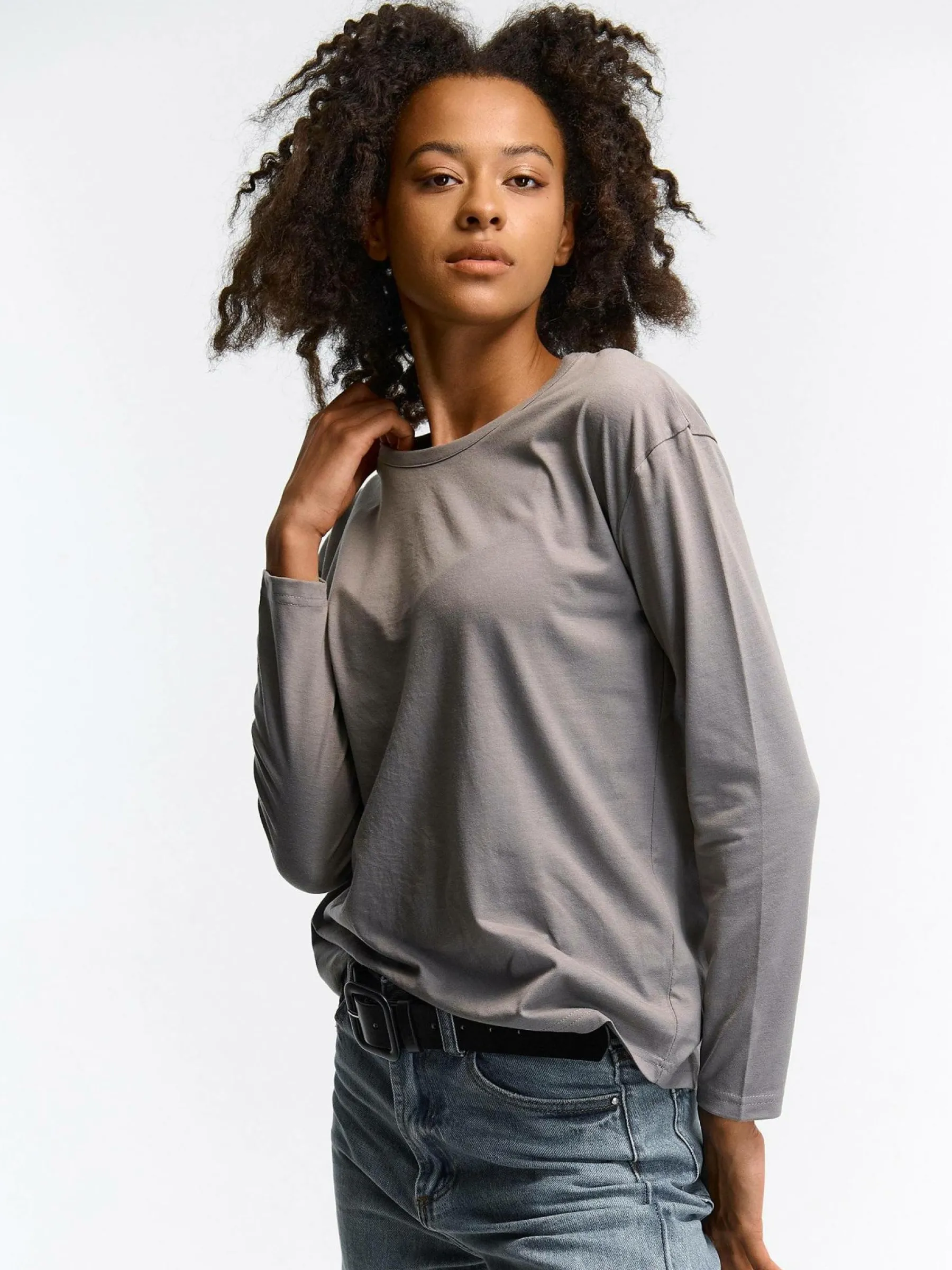 Kolor: szaryKrój: regularTyp: koszulkaRekaw: długi rękawDługość: krótkiPattern style: pojedynczy kolorDetal: nad …