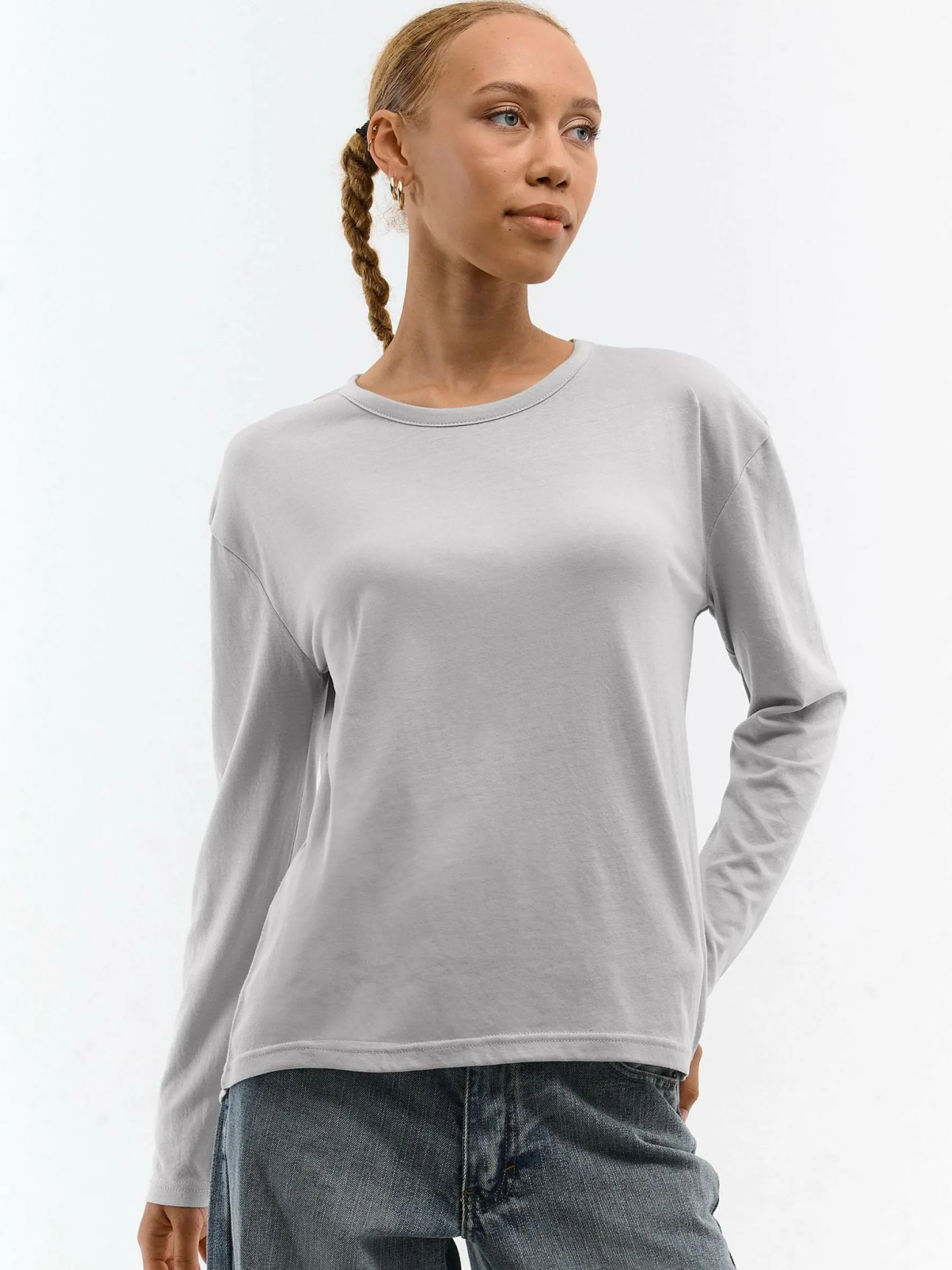 Kolor: szaryKrój: regularTyp: koszulkaRekaw: długi rękawDługość: krótkiPattern style: pojedynczy kolorDetal: nad …
