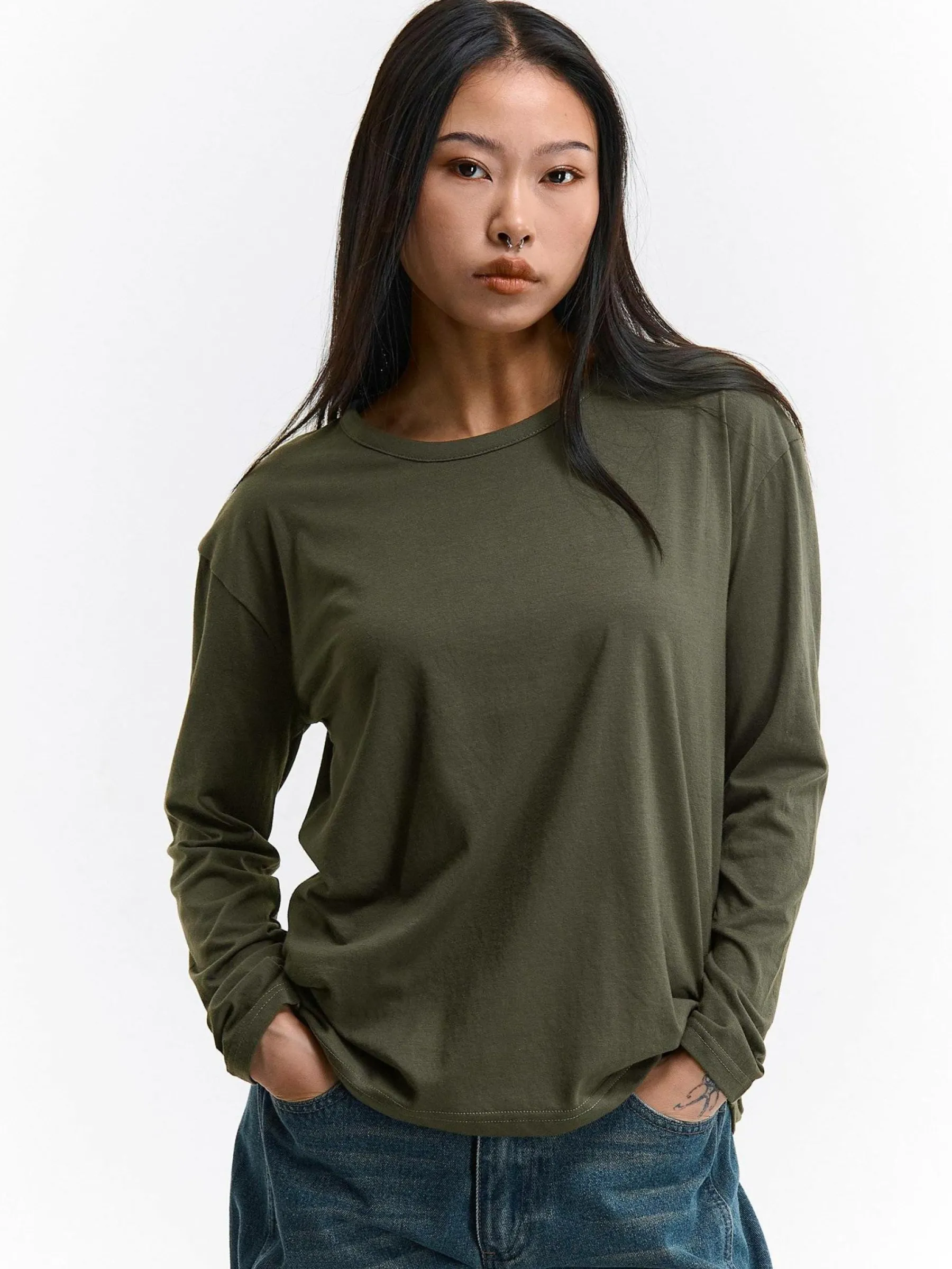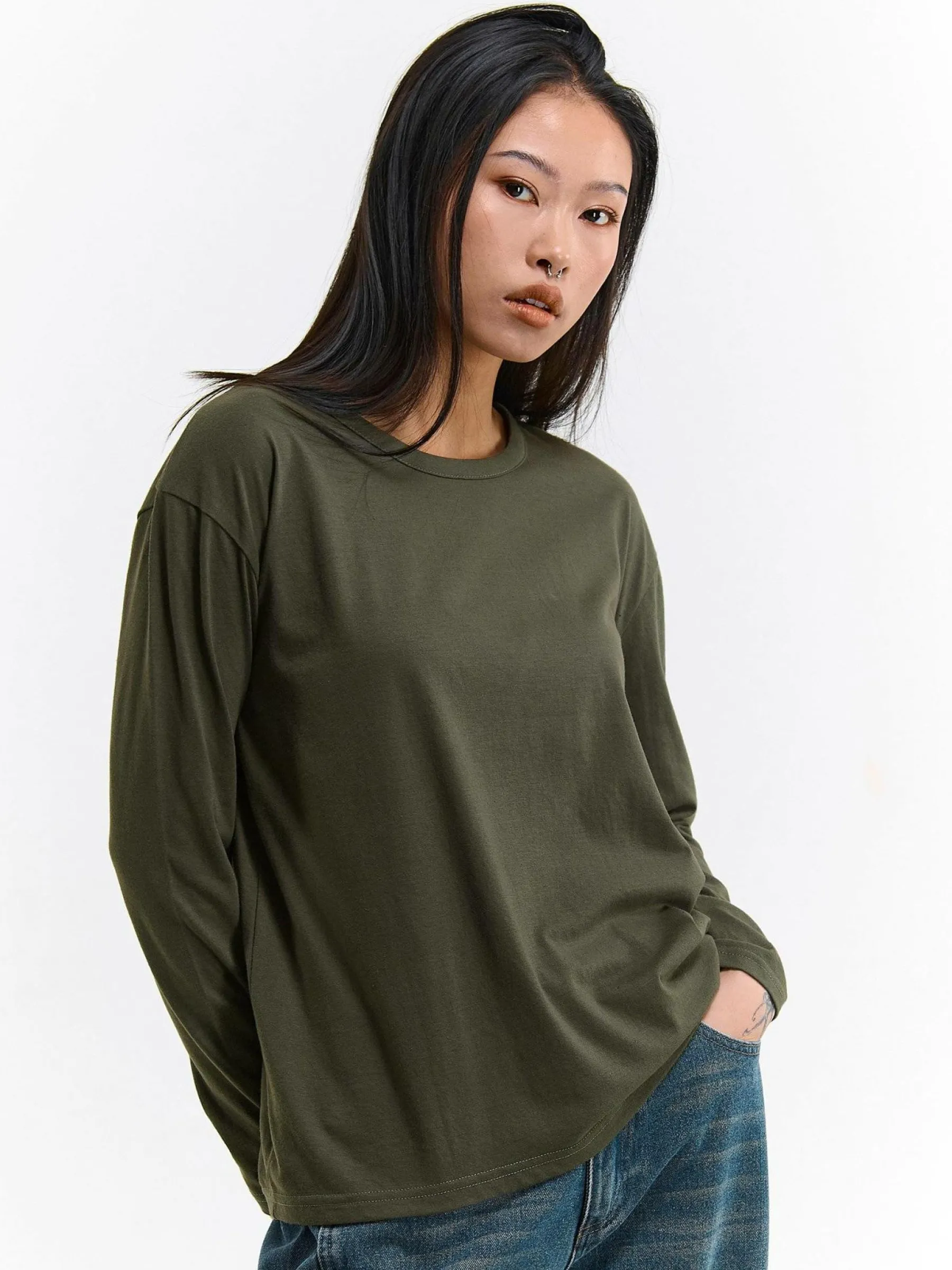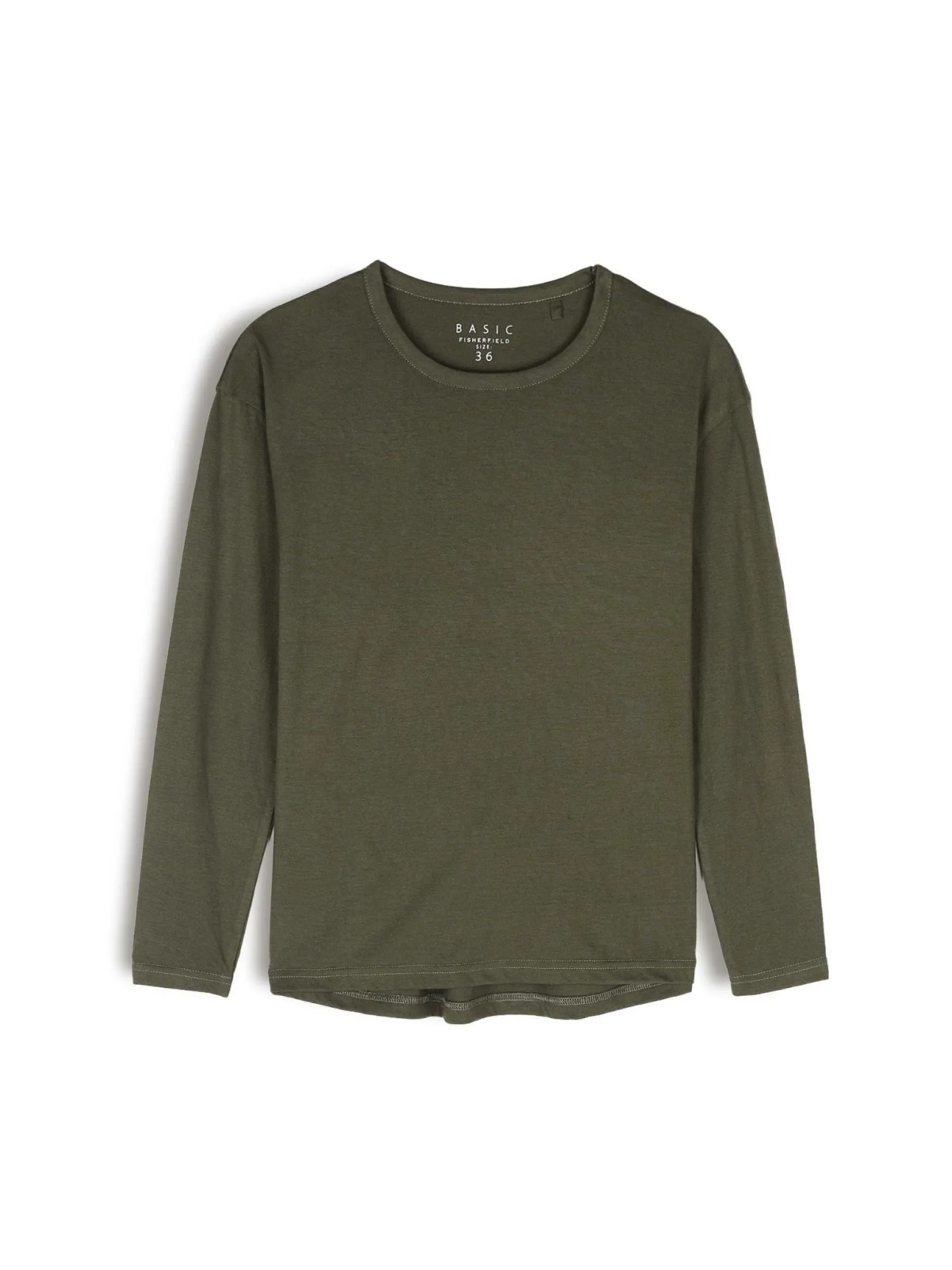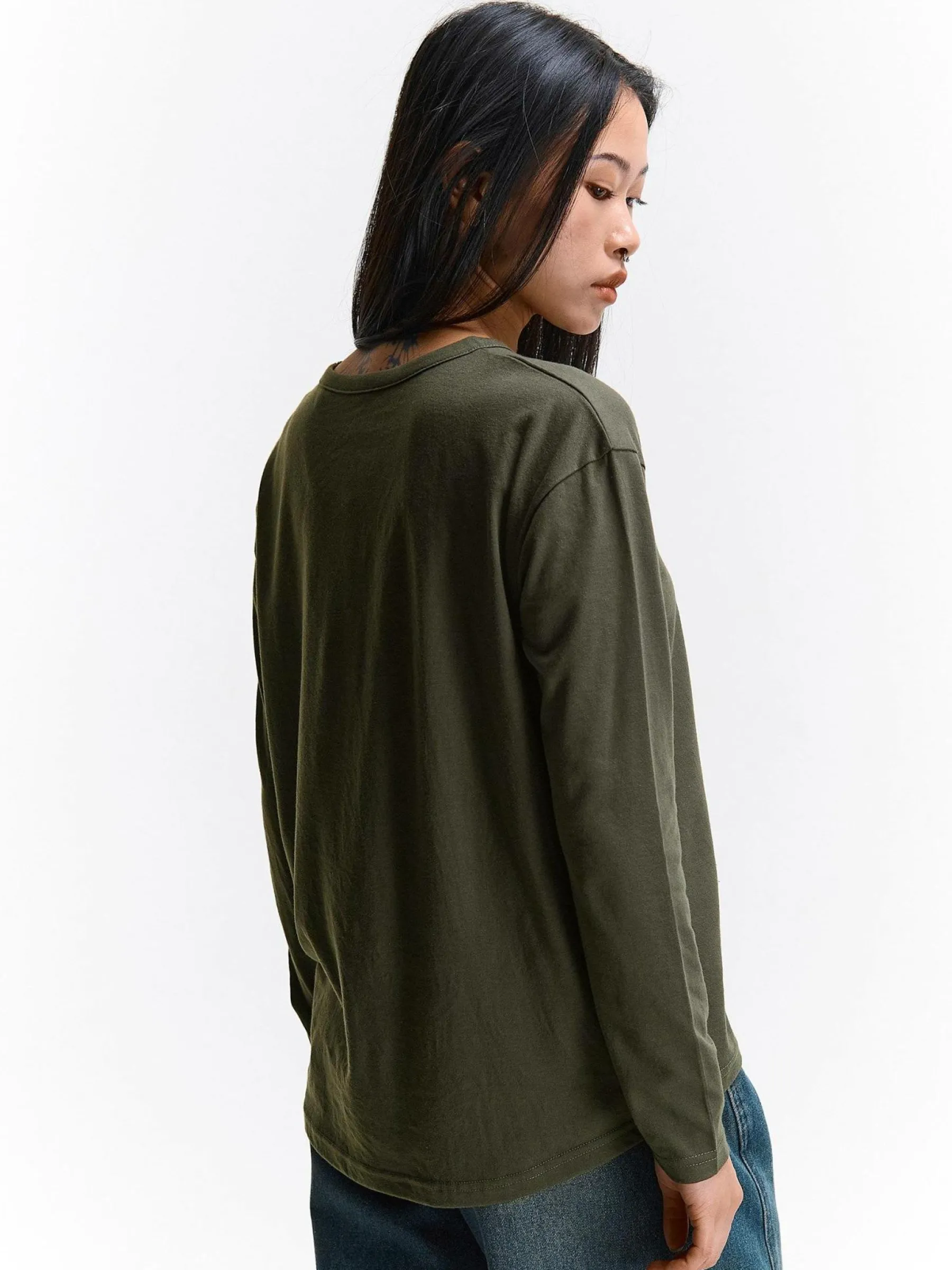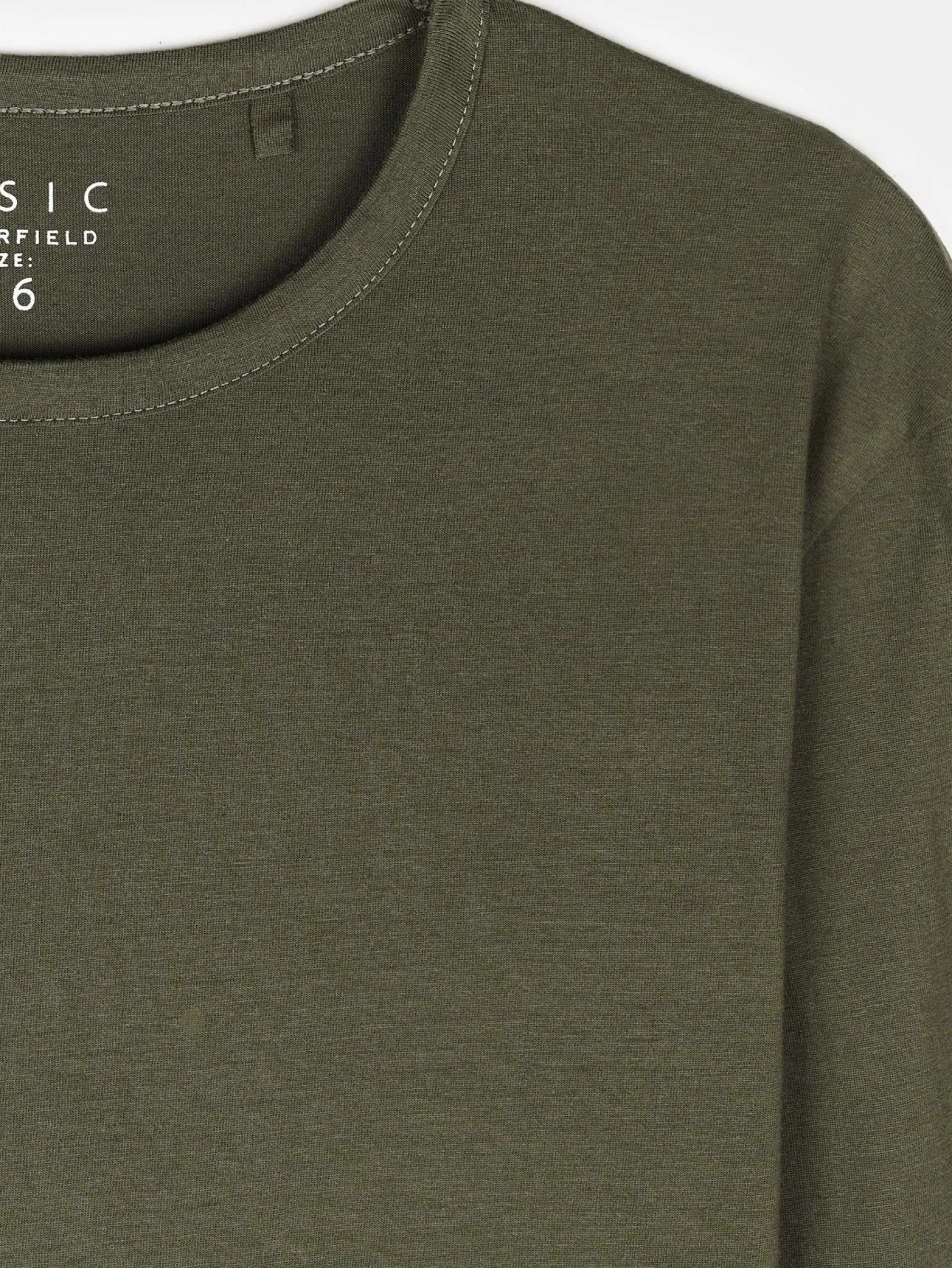 Kolor: khaki, zielonyKrój: regularTyp: koszulkaRekaw: długi rękawDługość: krótkiPattern style: pojedynczy kolorDe…