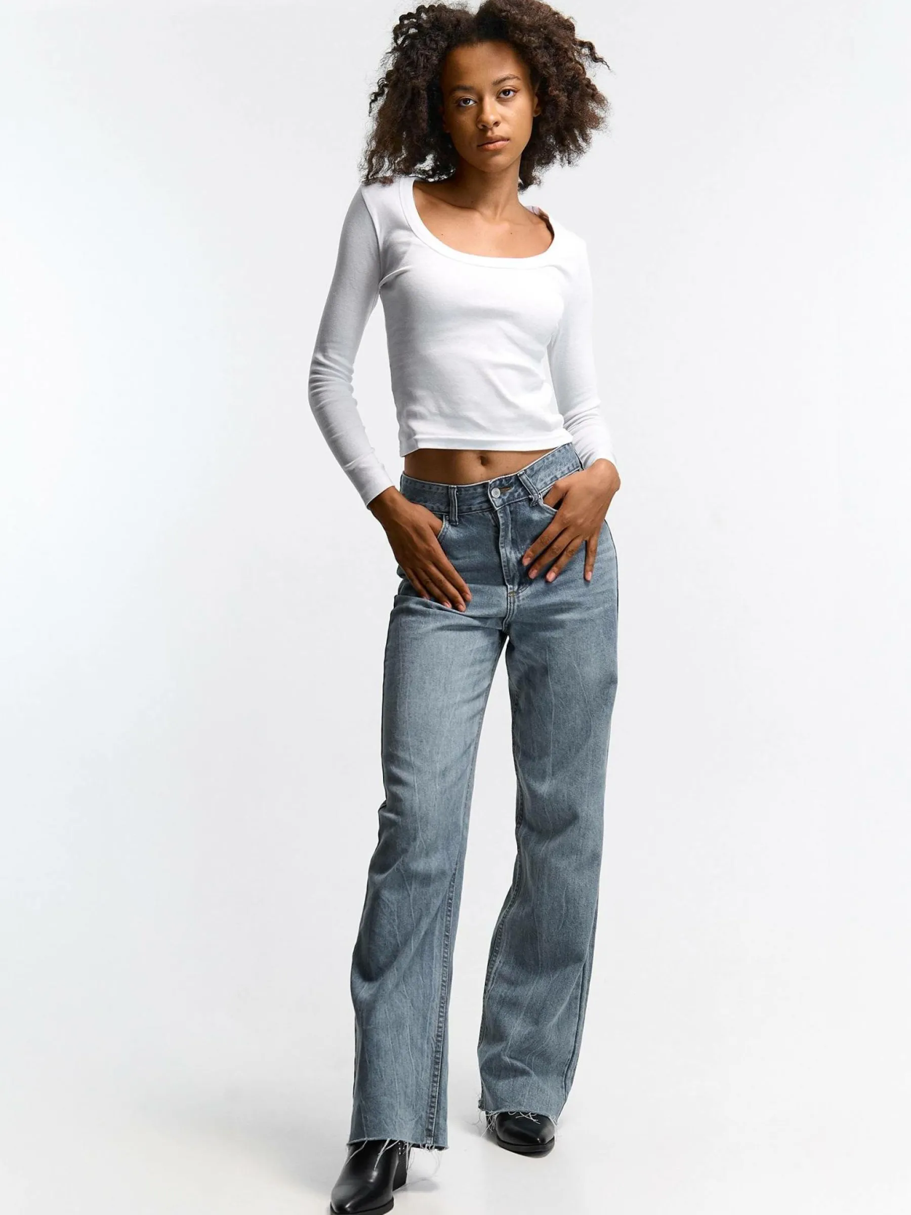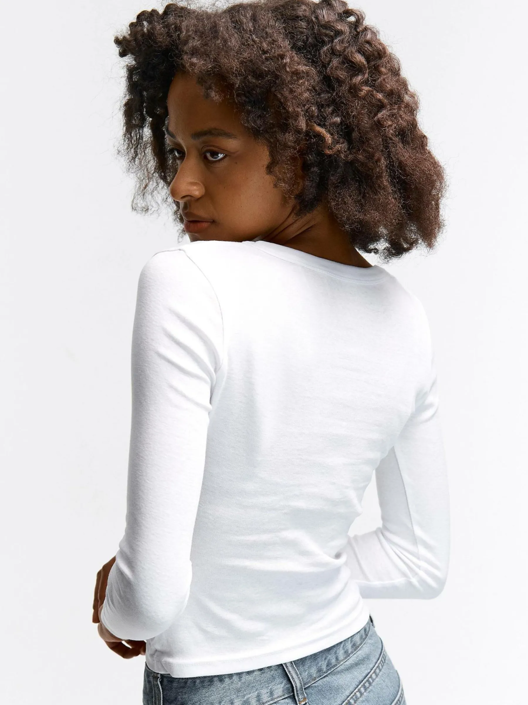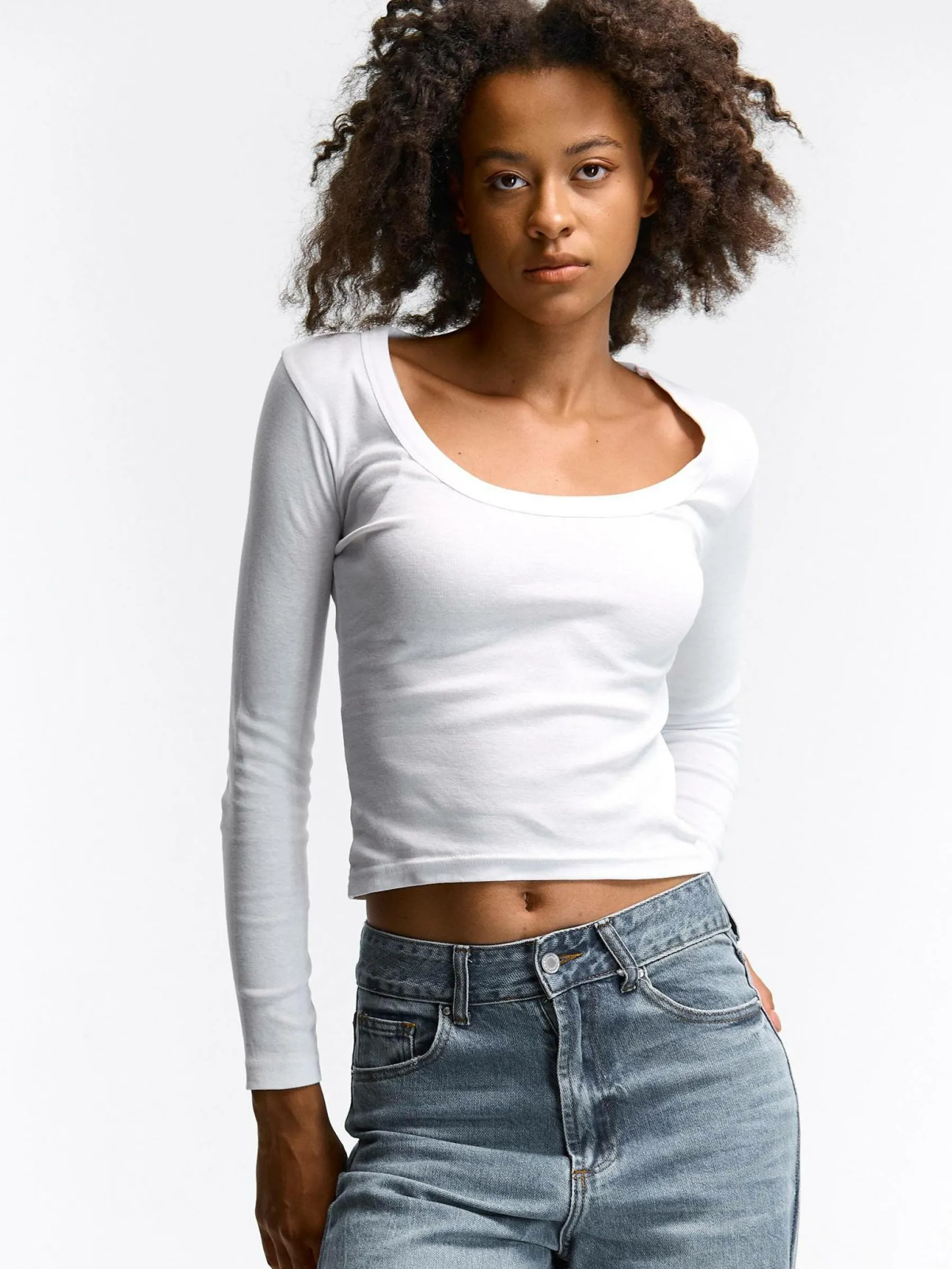 Kolor: białyKrój: regularTyp: koszulkaRekaw: długi rękawDługość: krótkiPattern style: pojedynczy kolorDetal: nad…