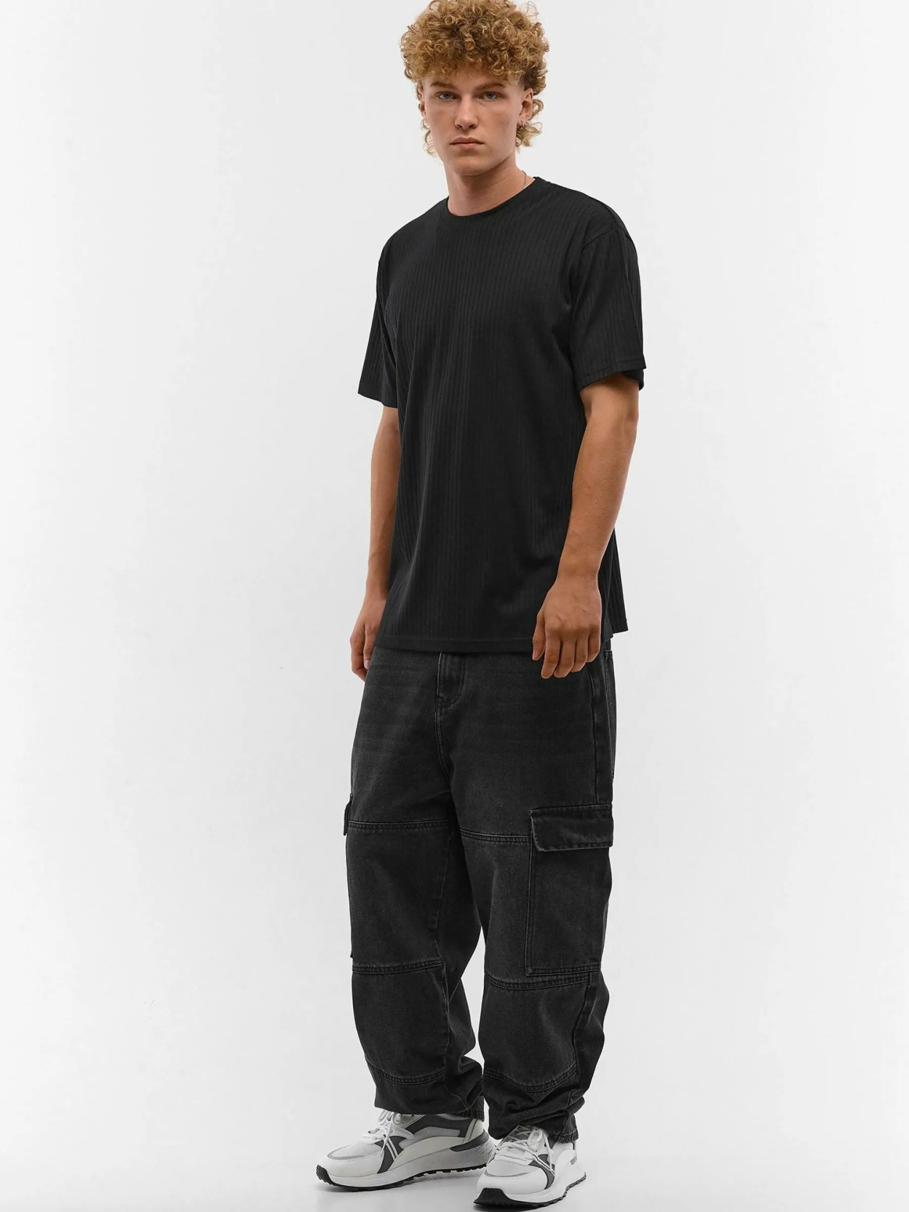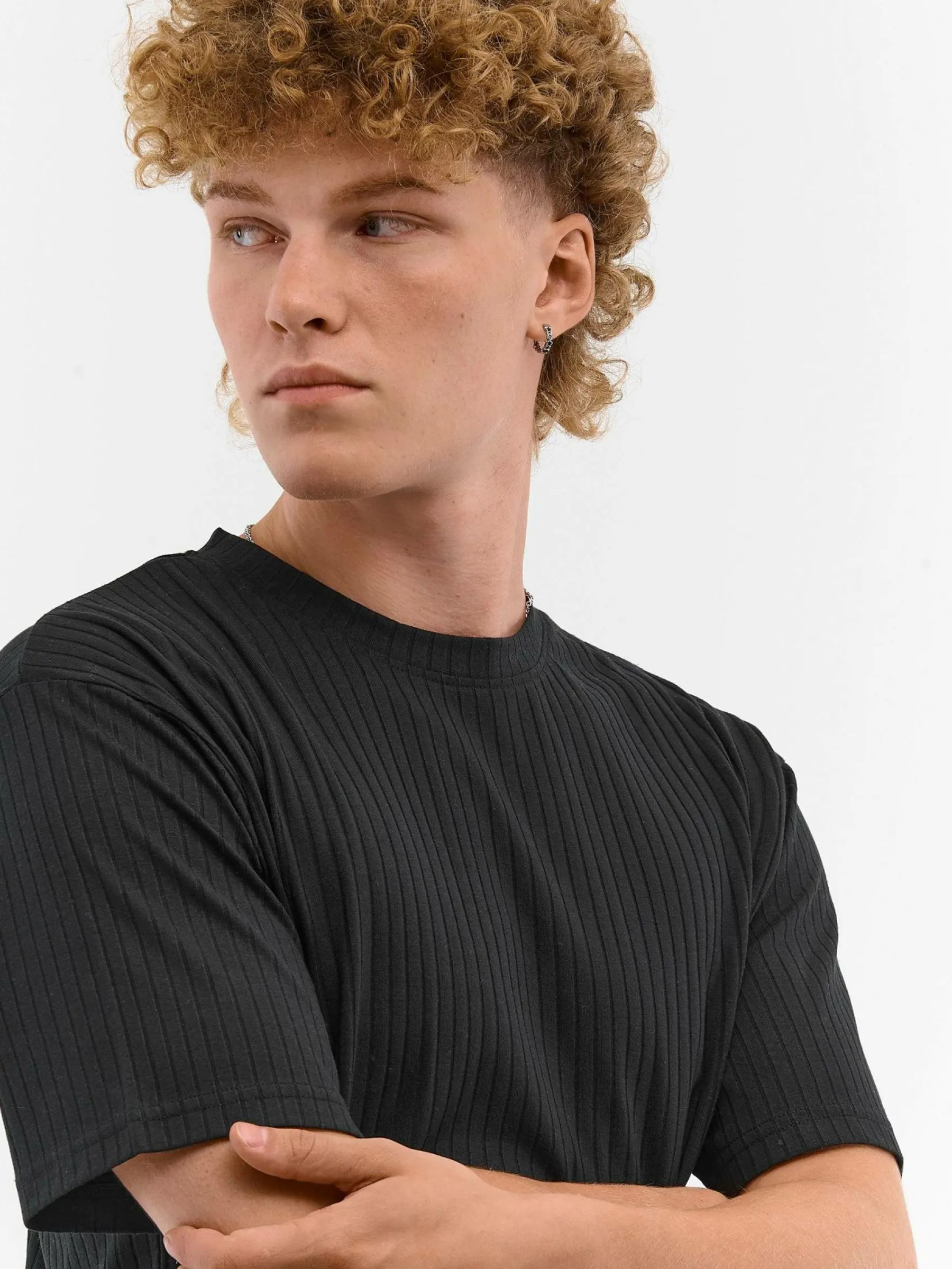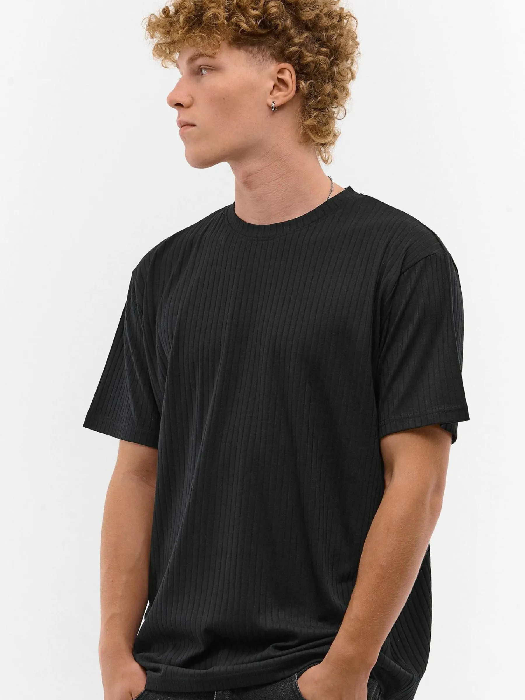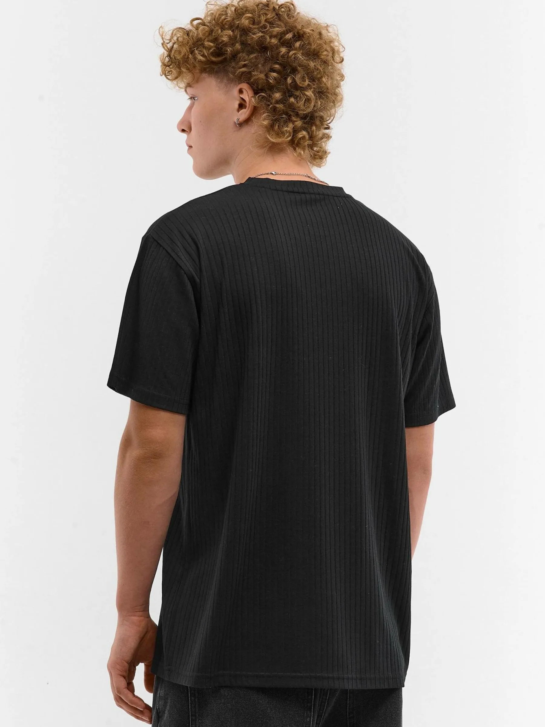 Kolor: czarnyKrój: regularTyp: koszulkaRekaw: krótki rękawPattern style: pojedynczy kolor, żebrowanyDetal: nad głow…