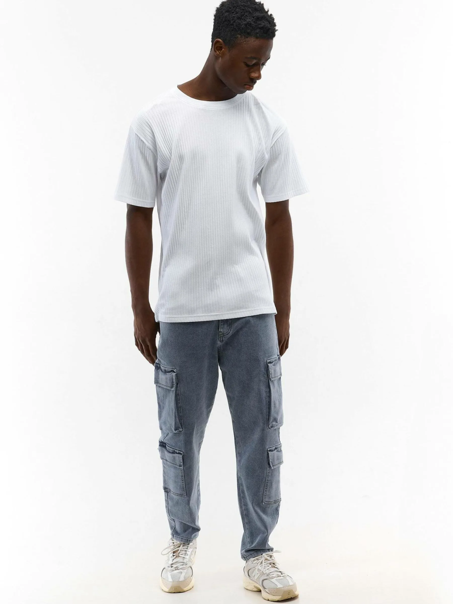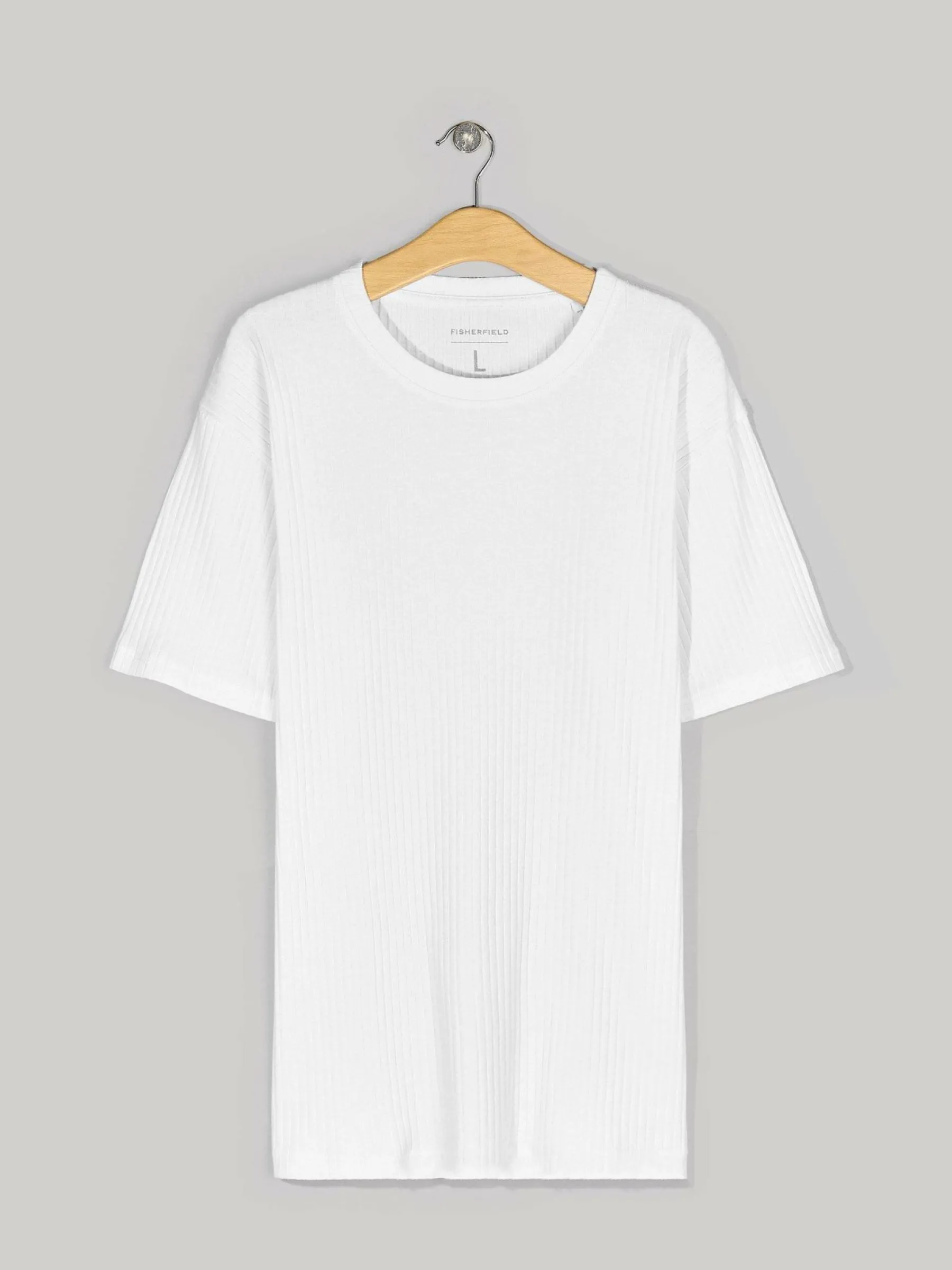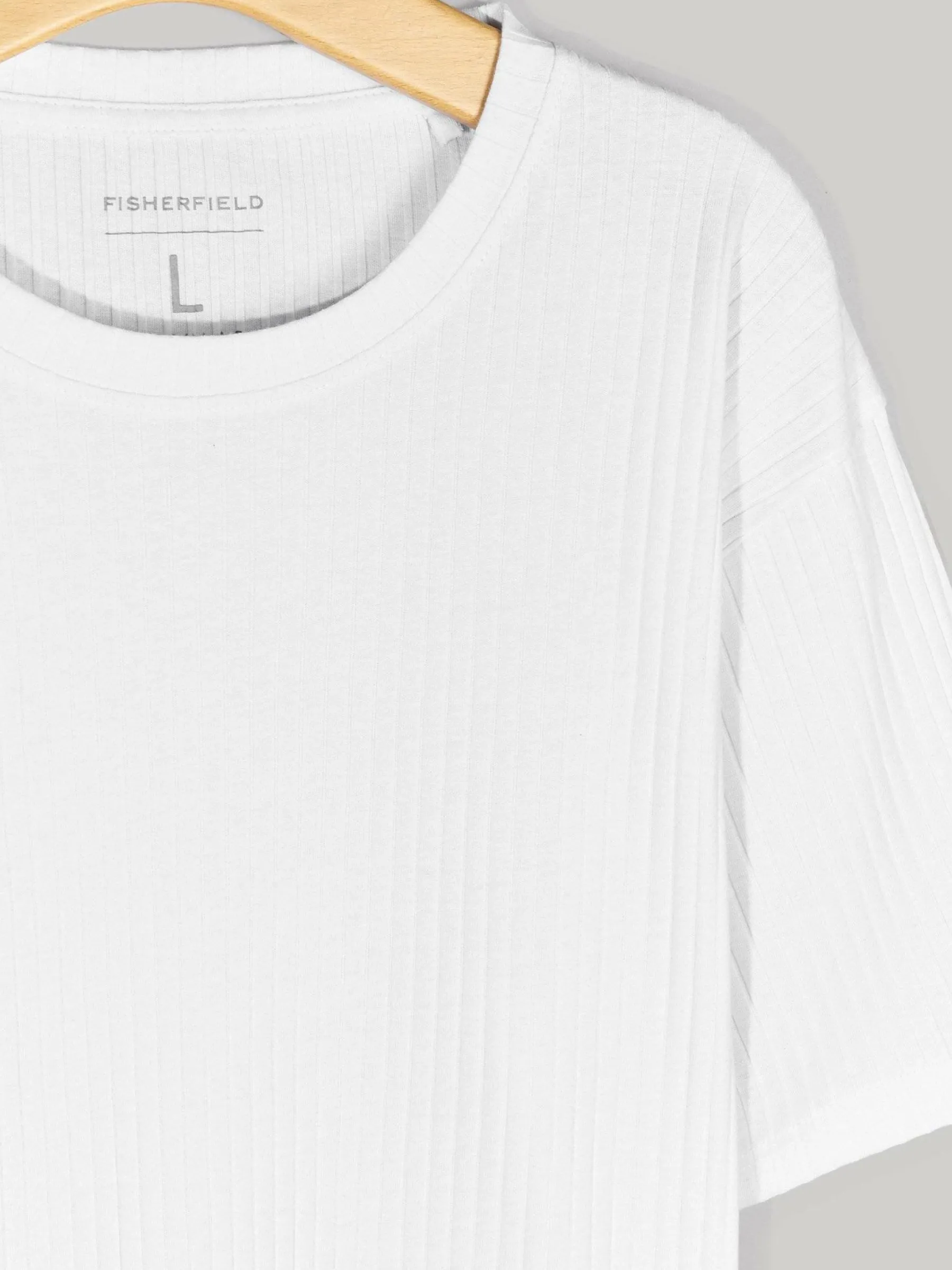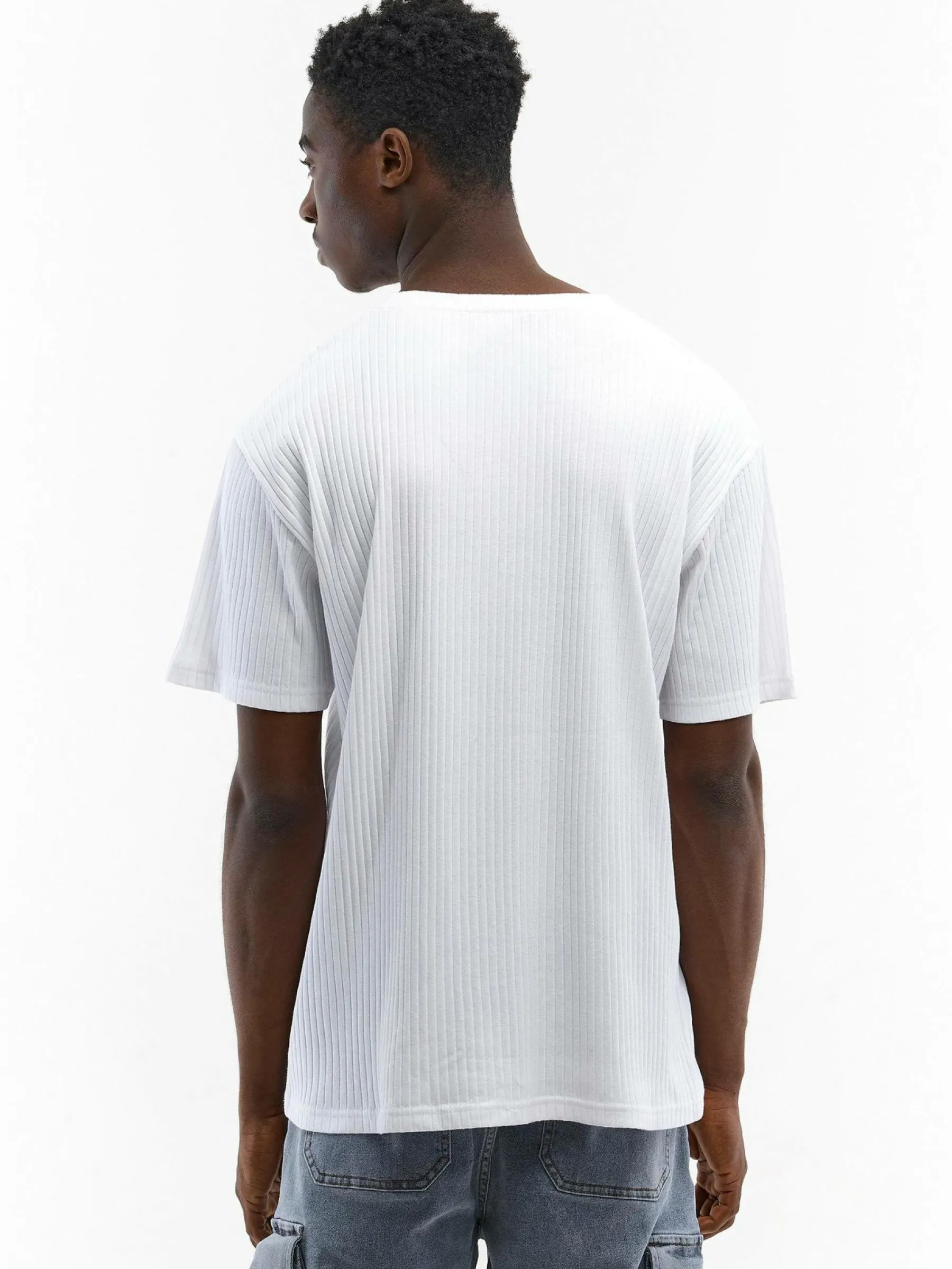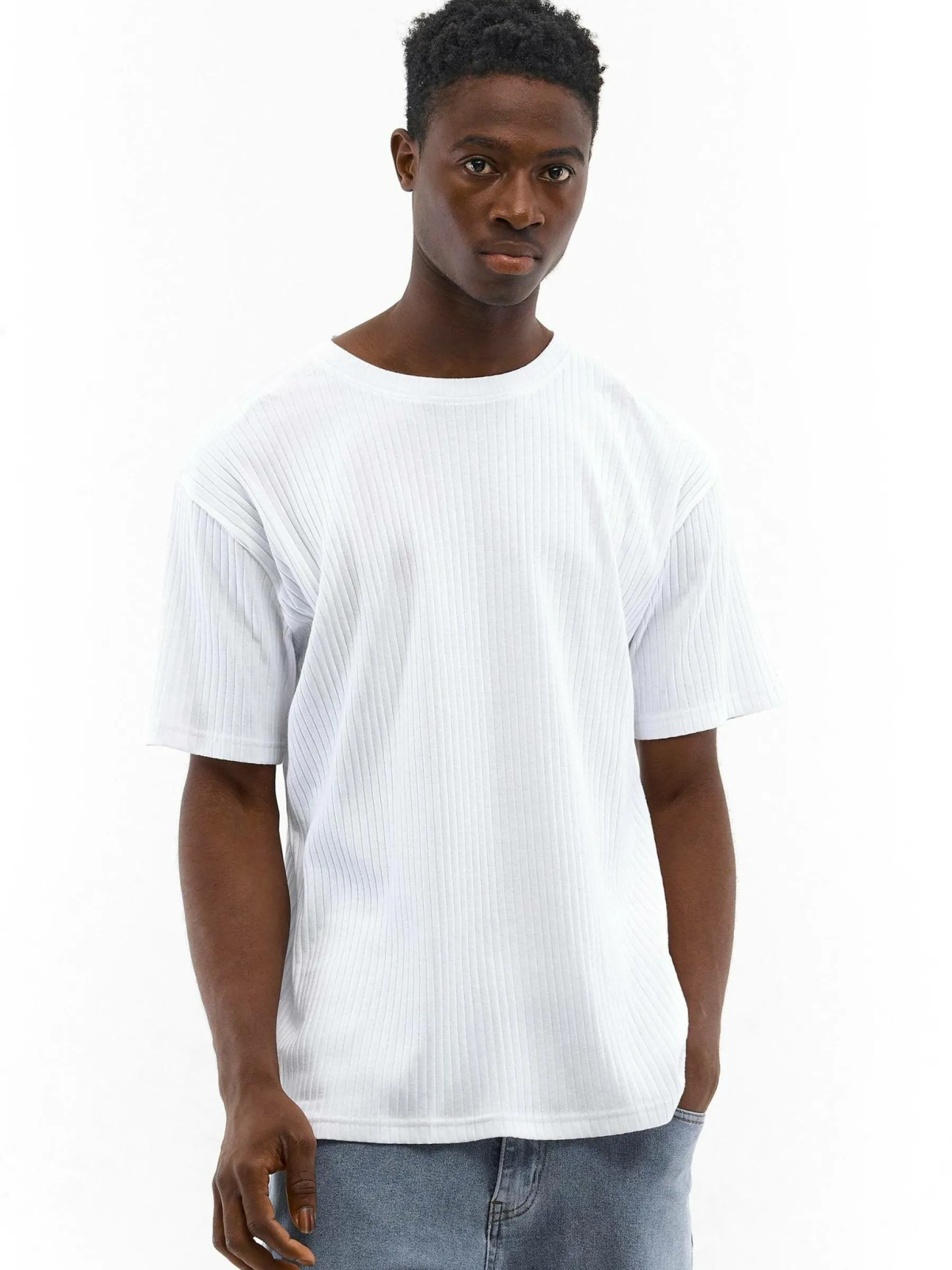 Kolor: białyKrój: regularTyp: koszulkaRekaw: krótki rękawPattern style: pojedynczy kolor, żebrowanyDetal: nad głow…
