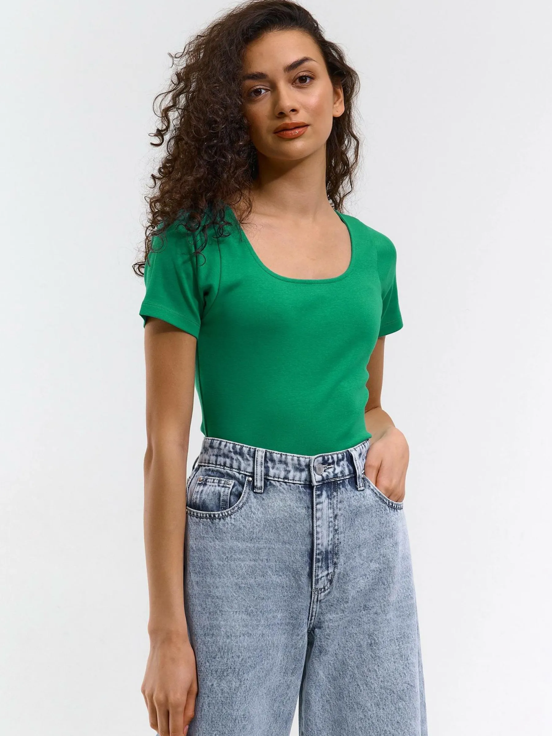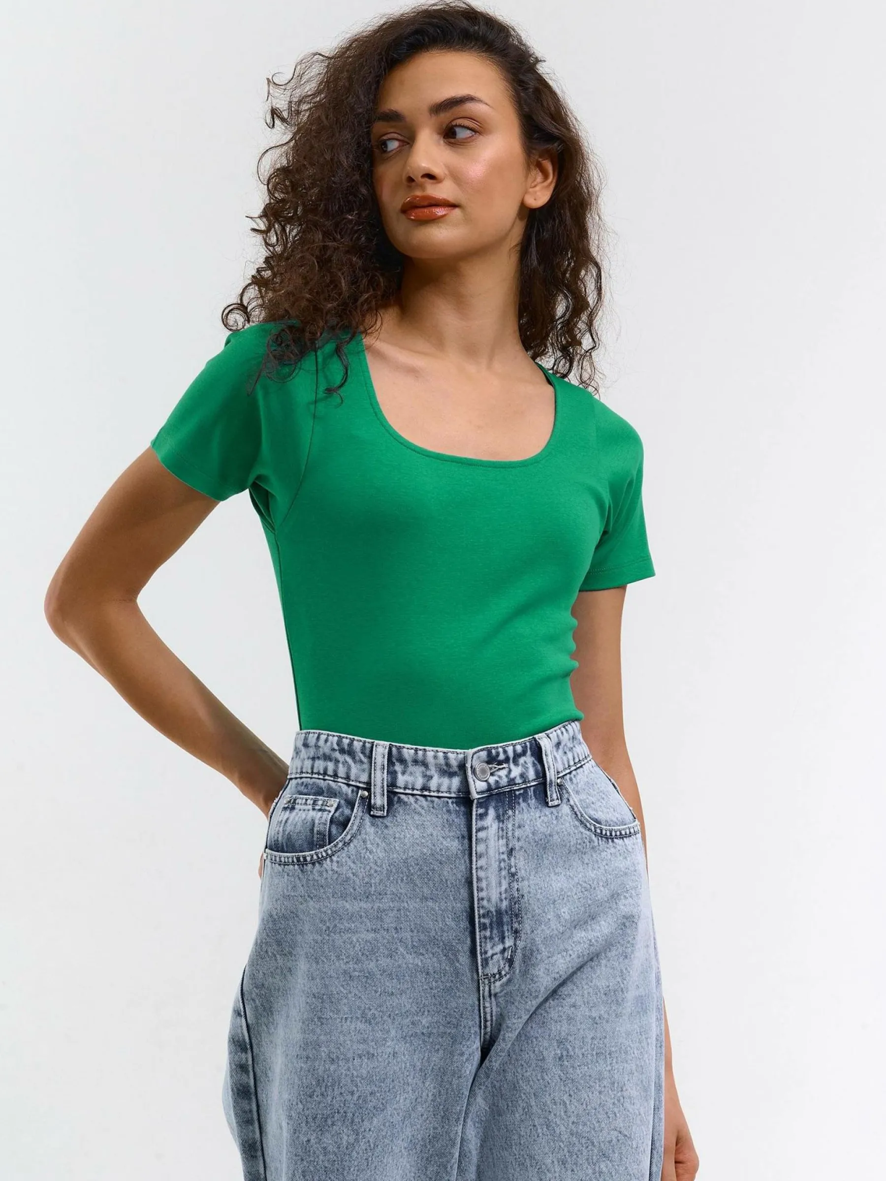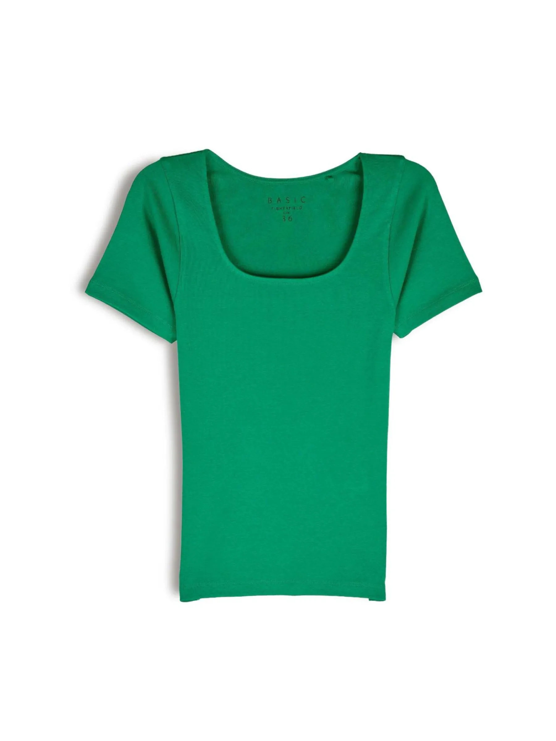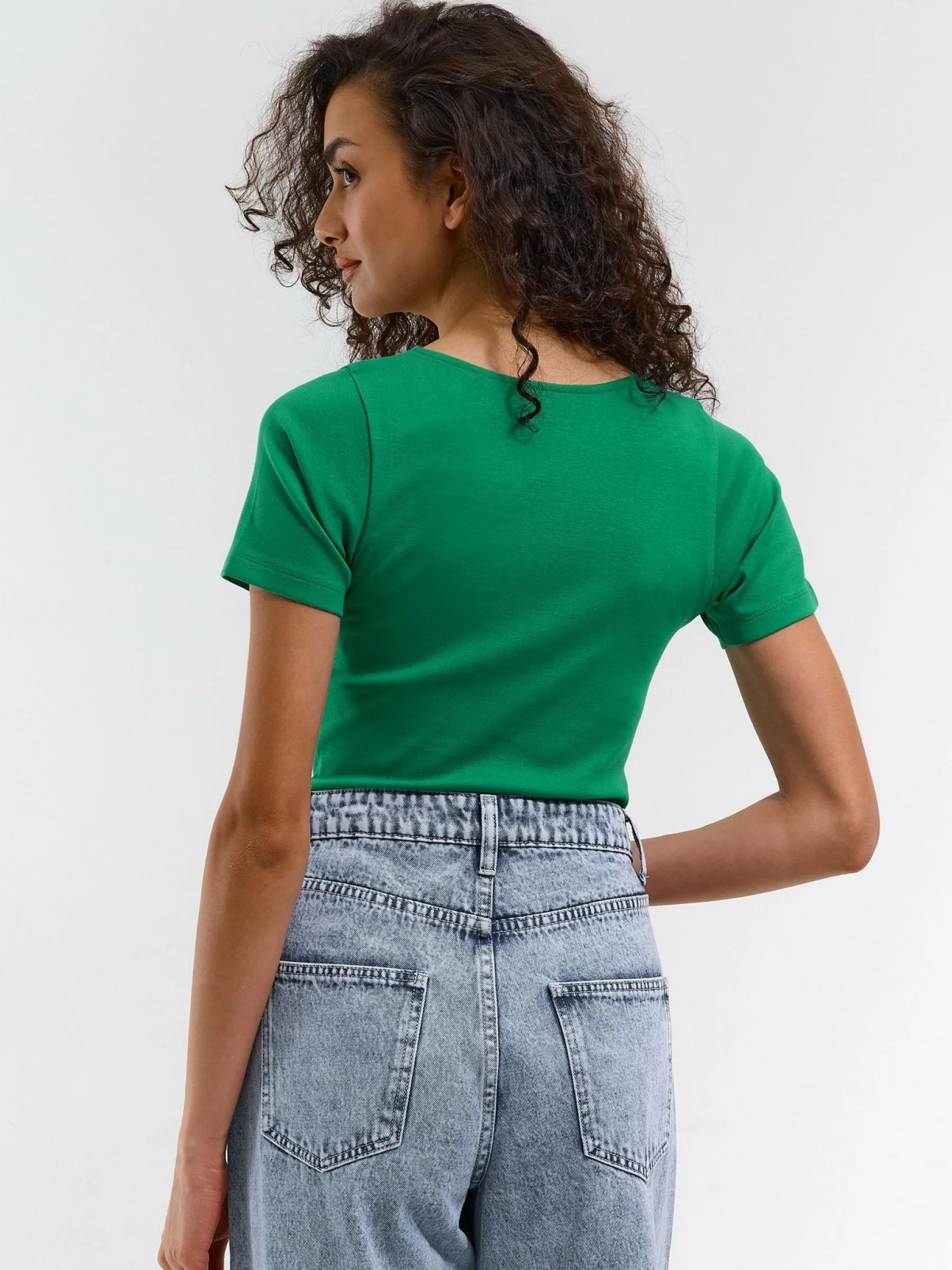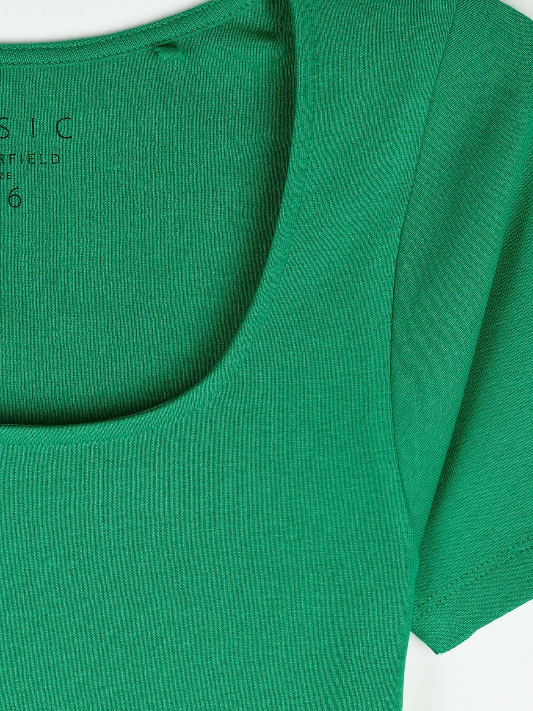 Kolor: zielonyKrój: regularTyp: koszulkaRekaw: krótki rękawDługość: krótkiPattern style: pojedynczy kolorDetal: n…