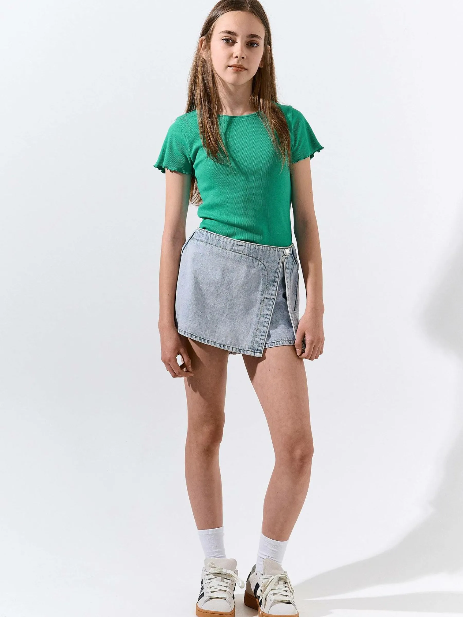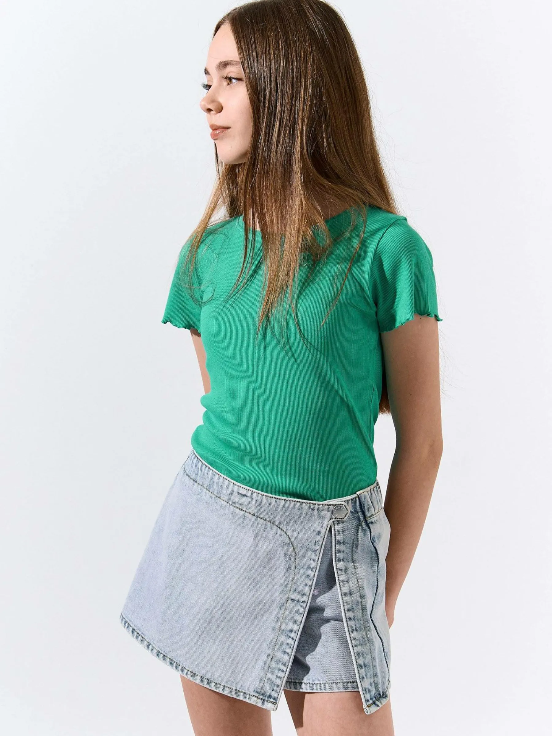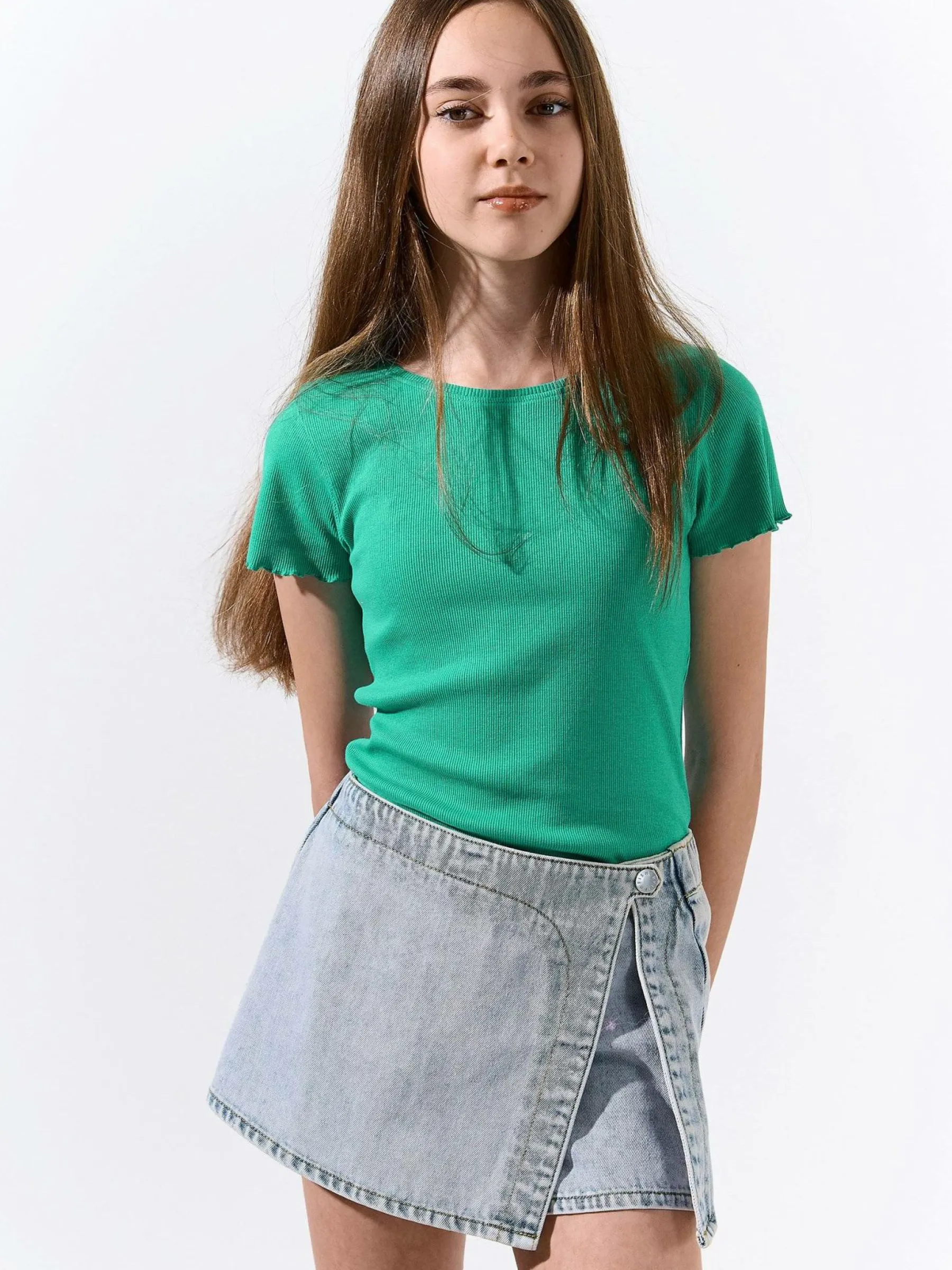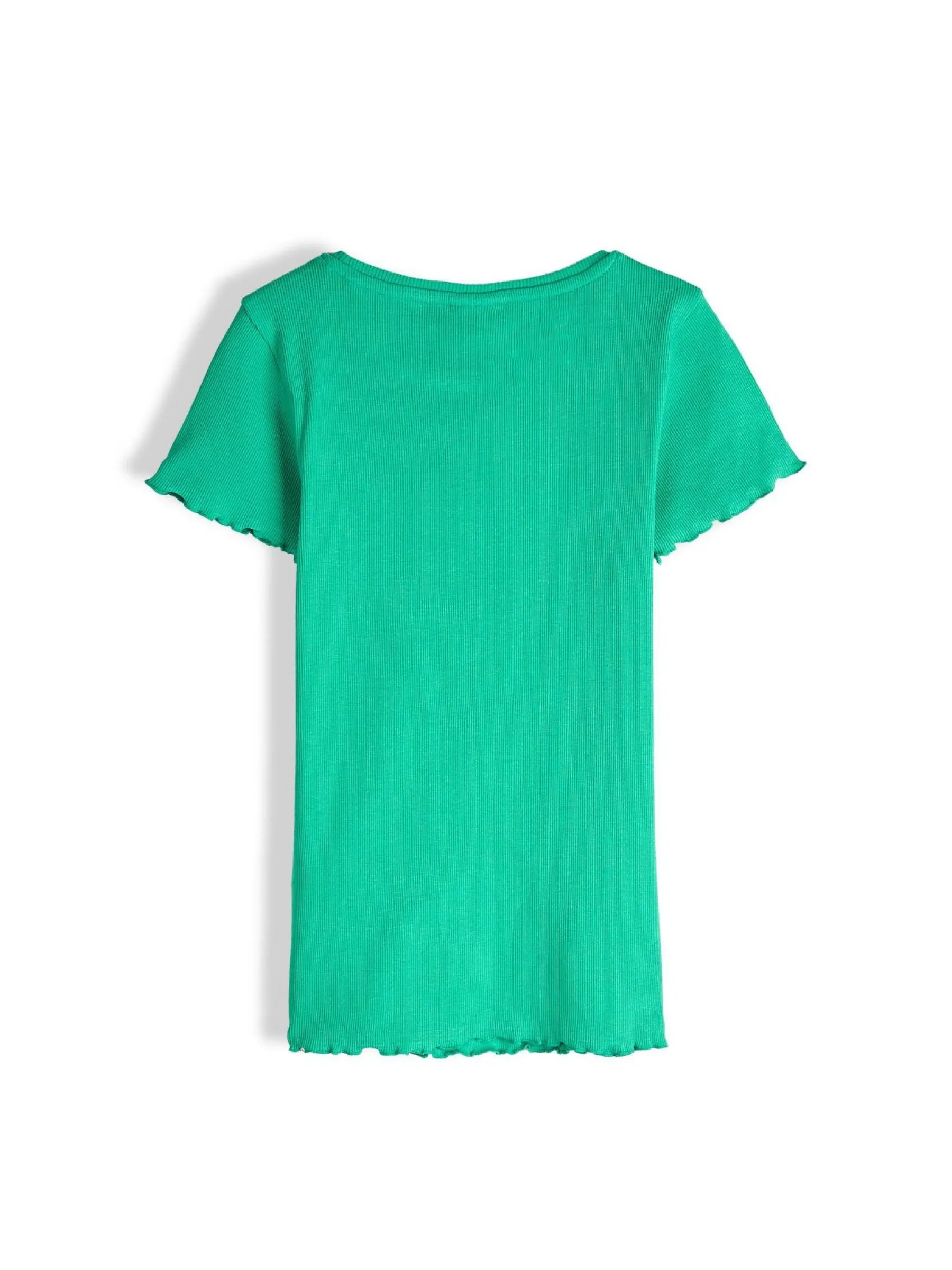 Kolor: zielonyKrój: regularTyp: koszulkaRekaw: krótki rękawDługość: krótkiPattern style: pojedynczy kolor, żebro…