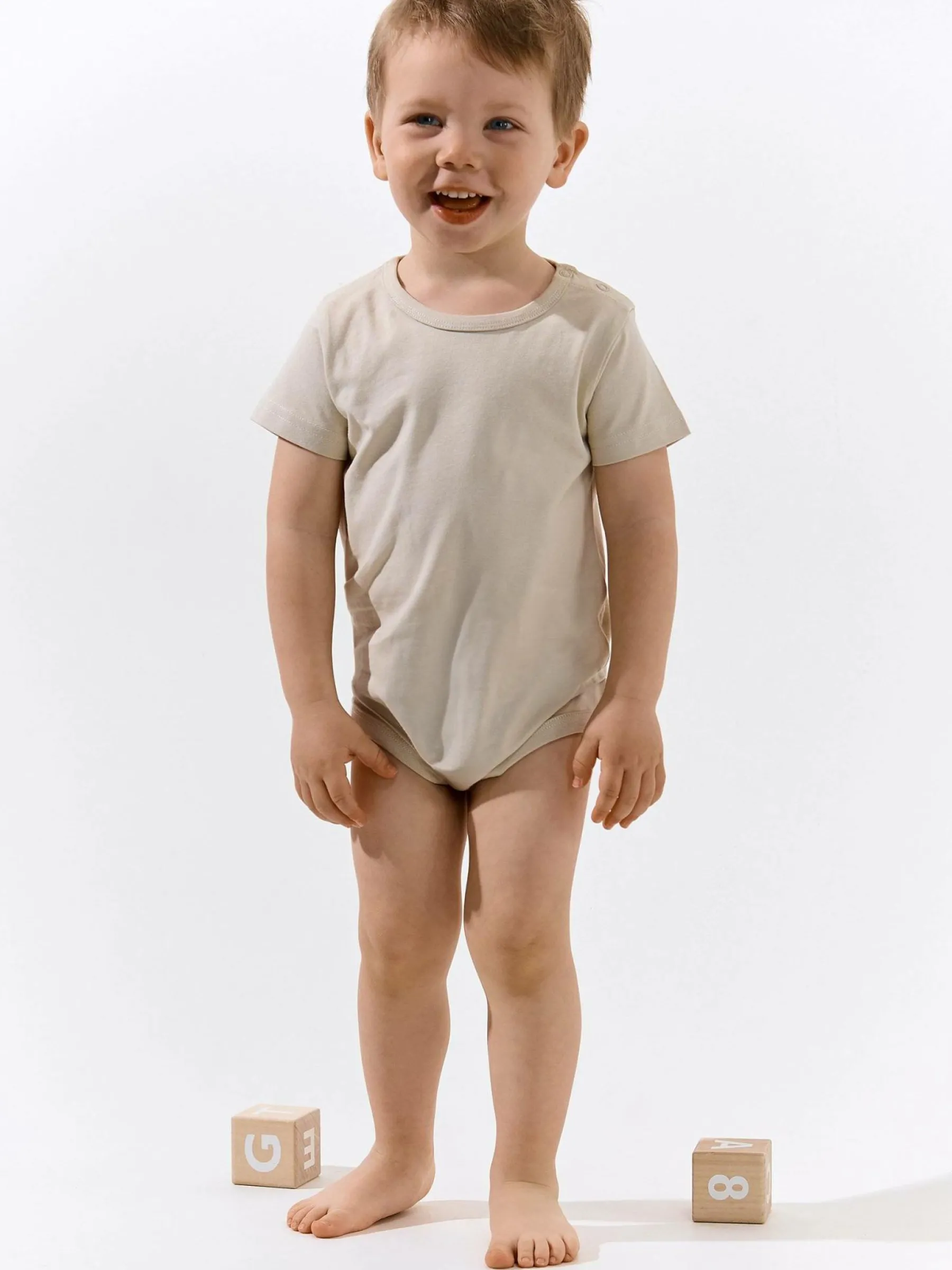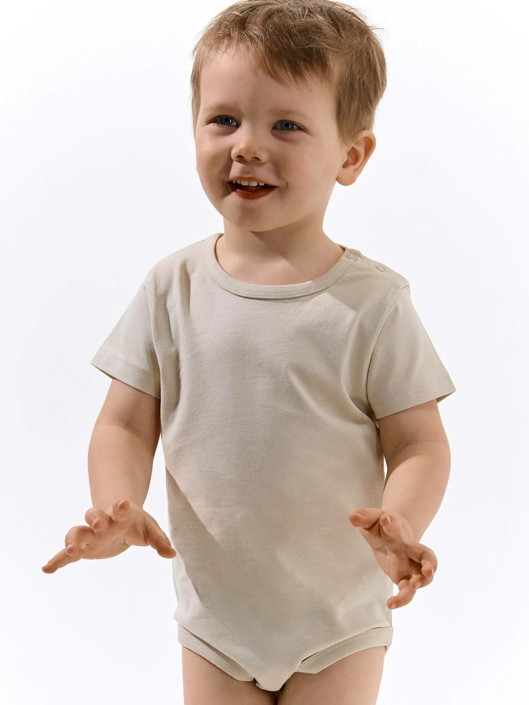 Kolor: beżowyKrój: podstawowyTyp: bodyRekaw: krótki rękawDługość: krótkiPattern style: pojedynczy kolorDetal: na…
