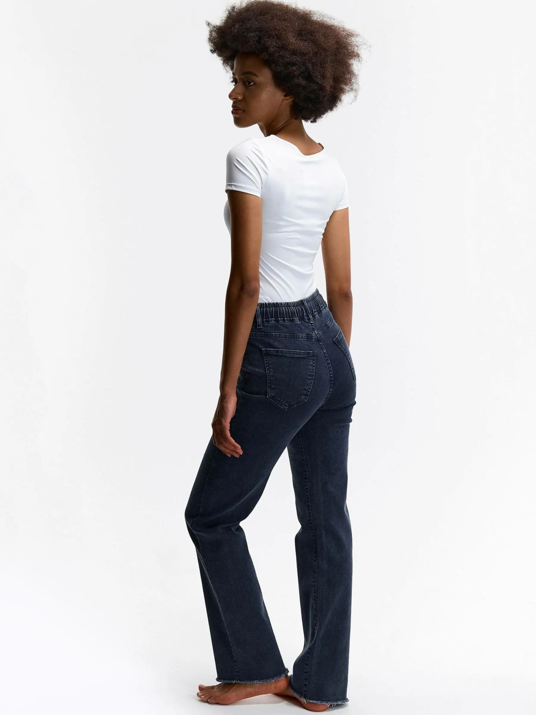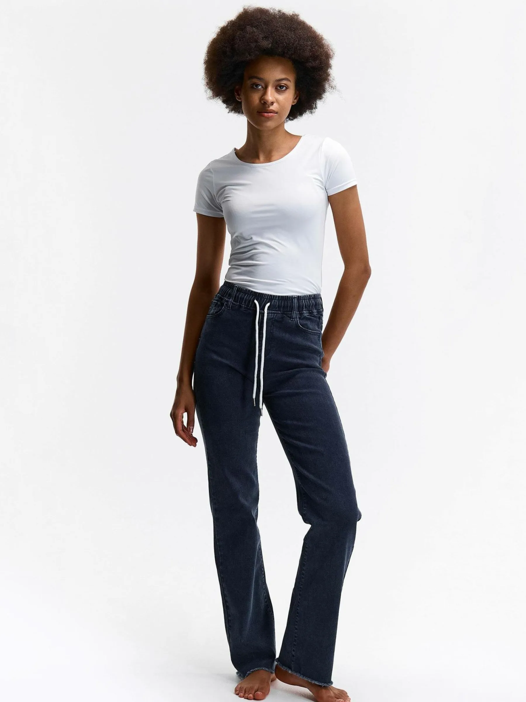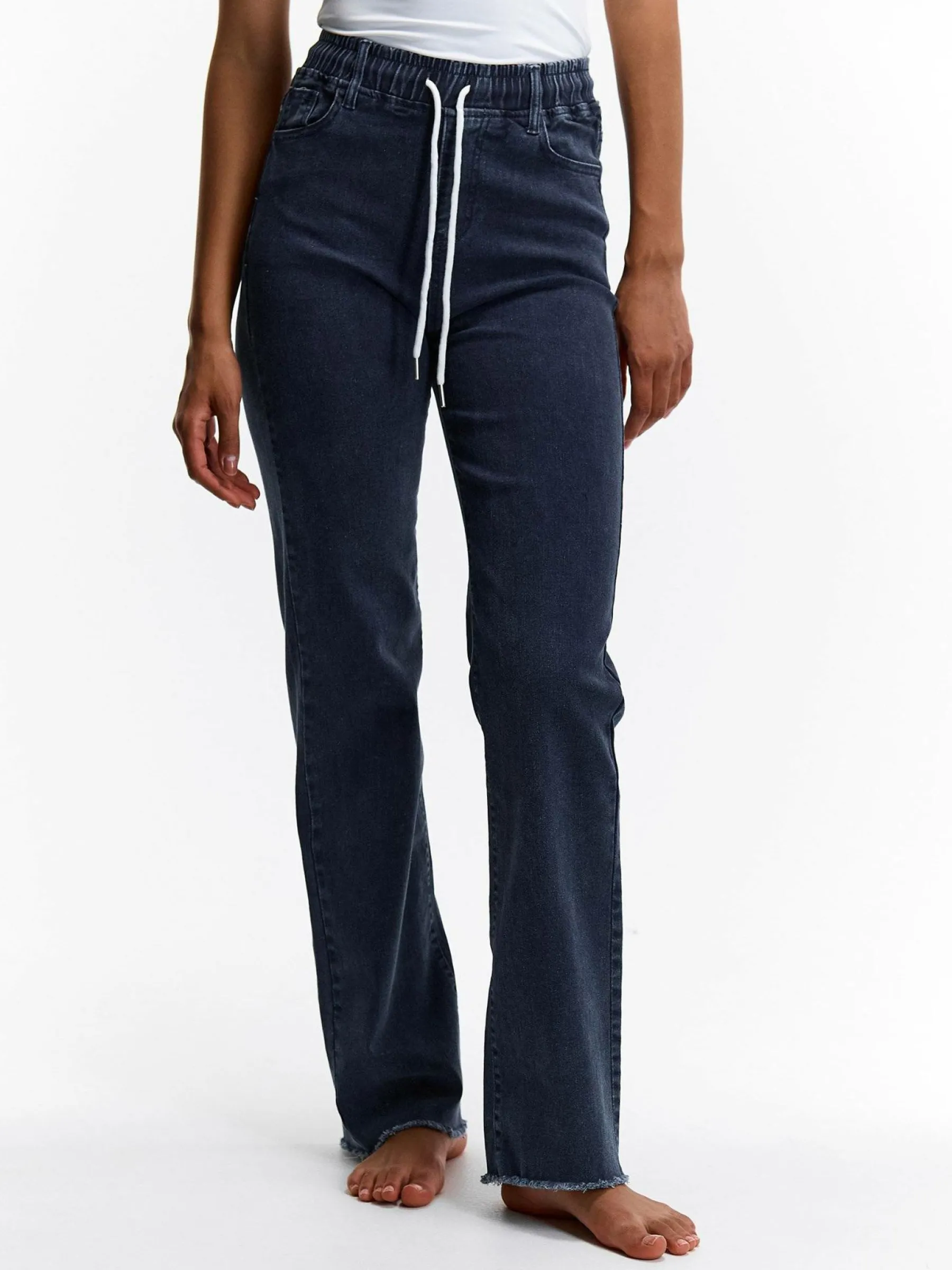Kolor: niebieskiKrój: straightTyp: jeansDługość: dlugiePattern style: pojedynczy kolorDetal: ze sznurowaniem, z elas…