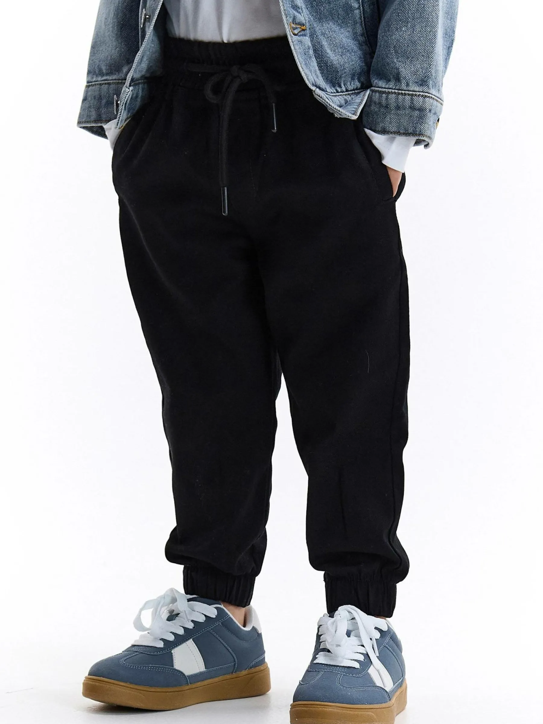 Kolor: czarnyKrój: joggerTyp: spodnieDługość: dlugiePattern style: pojedynczy kolorDetal: ze sznurowaniem, z kieszen…