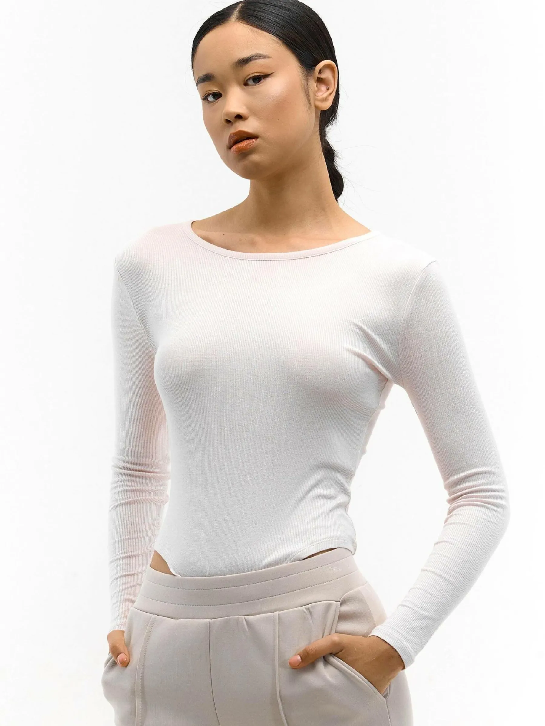 Kolor: białyKrój: slimTyp: bodyRekaw: długi rękawDługość: krótkiPattern style: pojedynczy kolor, żebrowanyDetal…