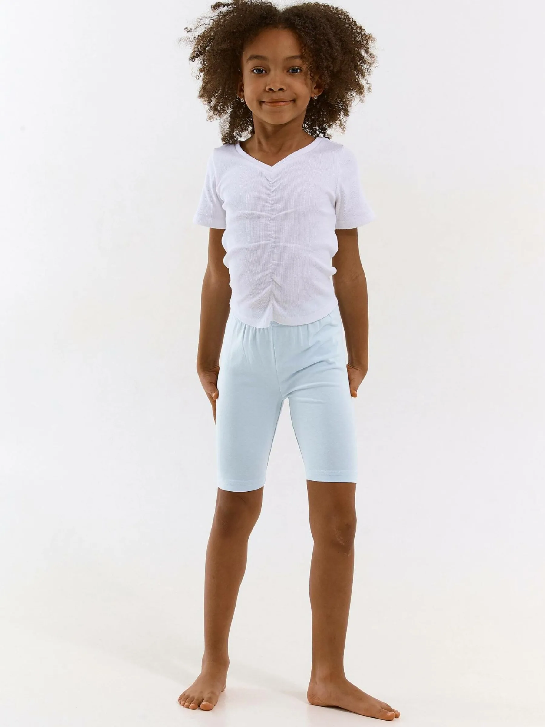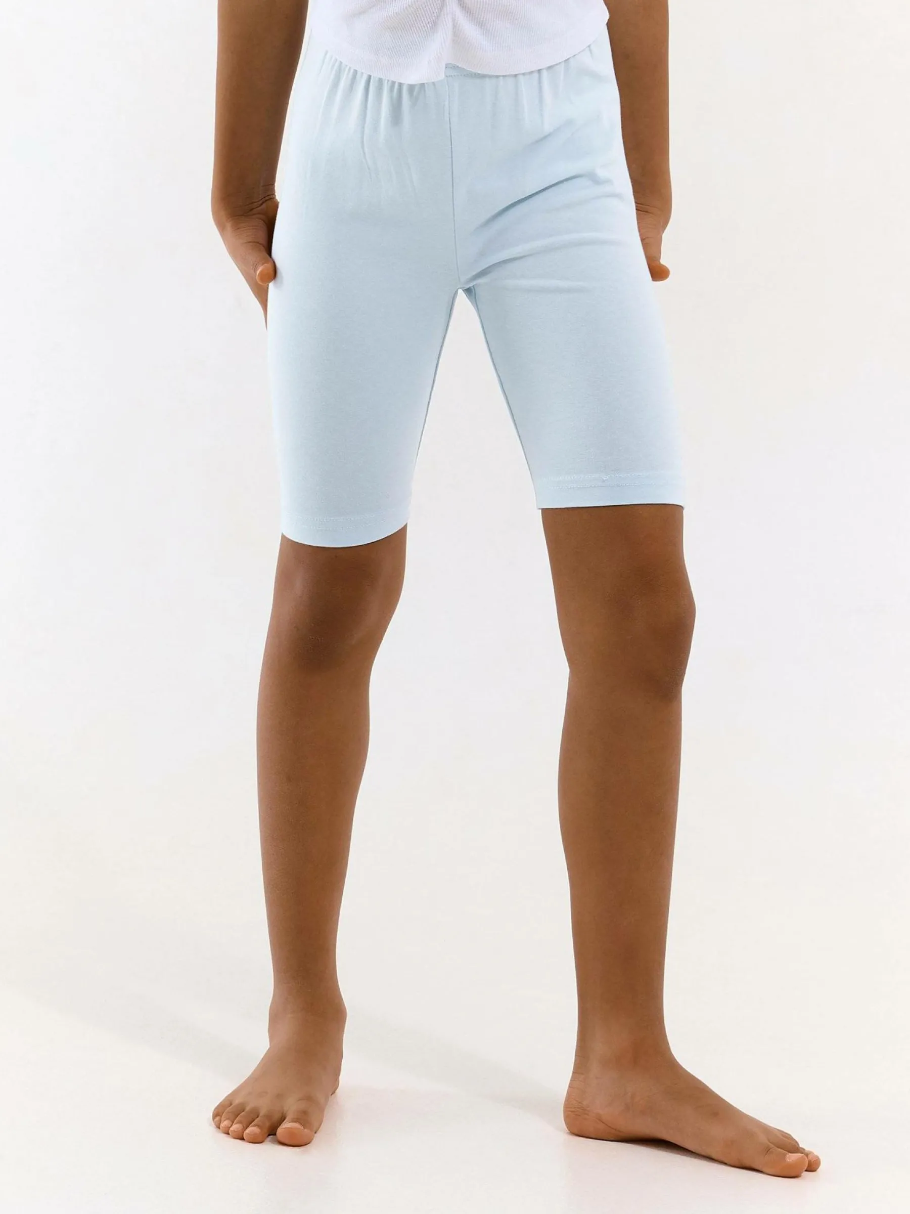Kolor: niebieskiKrój: bikerTyp: spodenkiDługość: krótkiPattern style: pojedynczy kolorMateriał: bawełnaPłeć: dz…