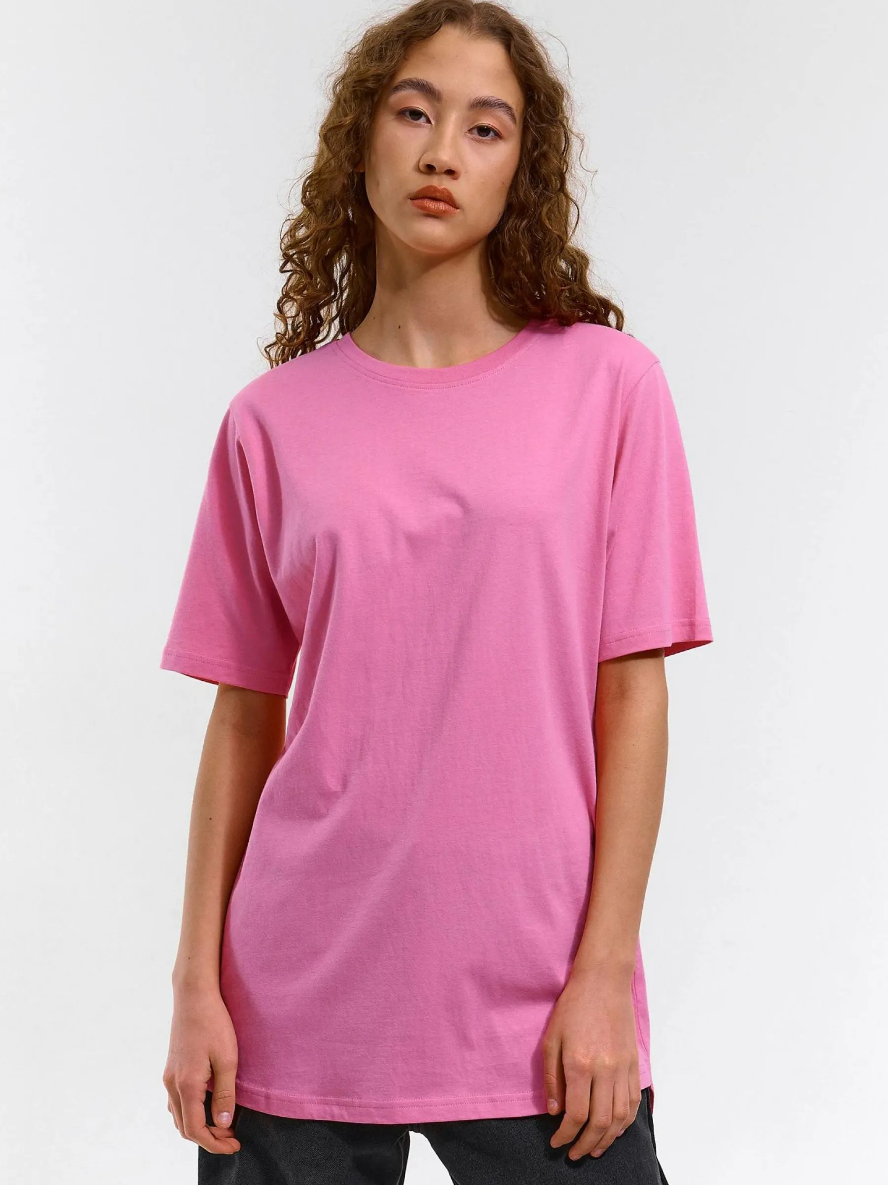 Kolor: różowyKrój: asymetryczneTyp: koszulkaRekaw: krótki rękawDługość: dlugiePattern style: pojedynczy kolorDet…