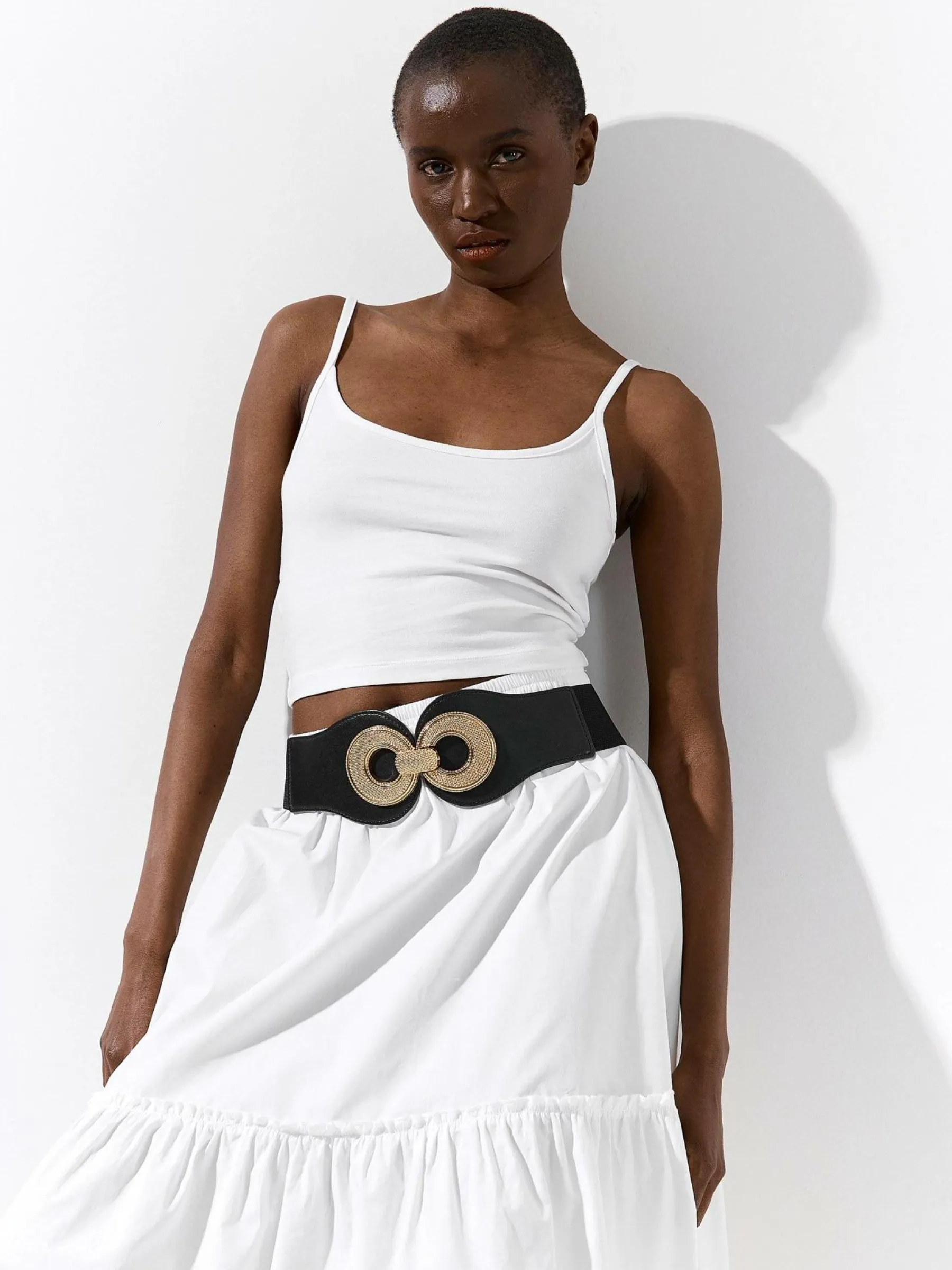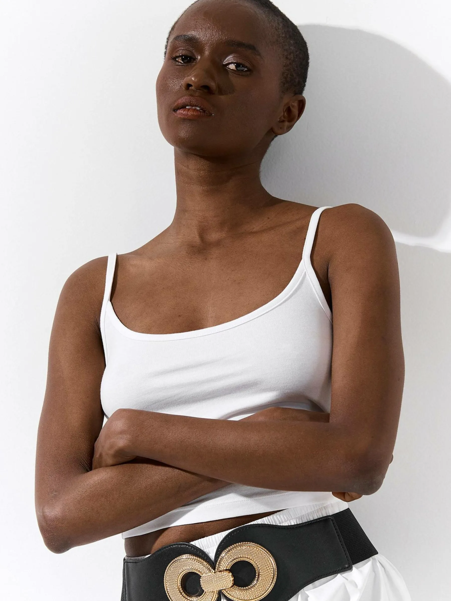 Kolor: białyKrój: regularTyp: podkoszulekRekaw: bez rękawówDługość: krótki topPattern style: pojedynczy kolorDet…