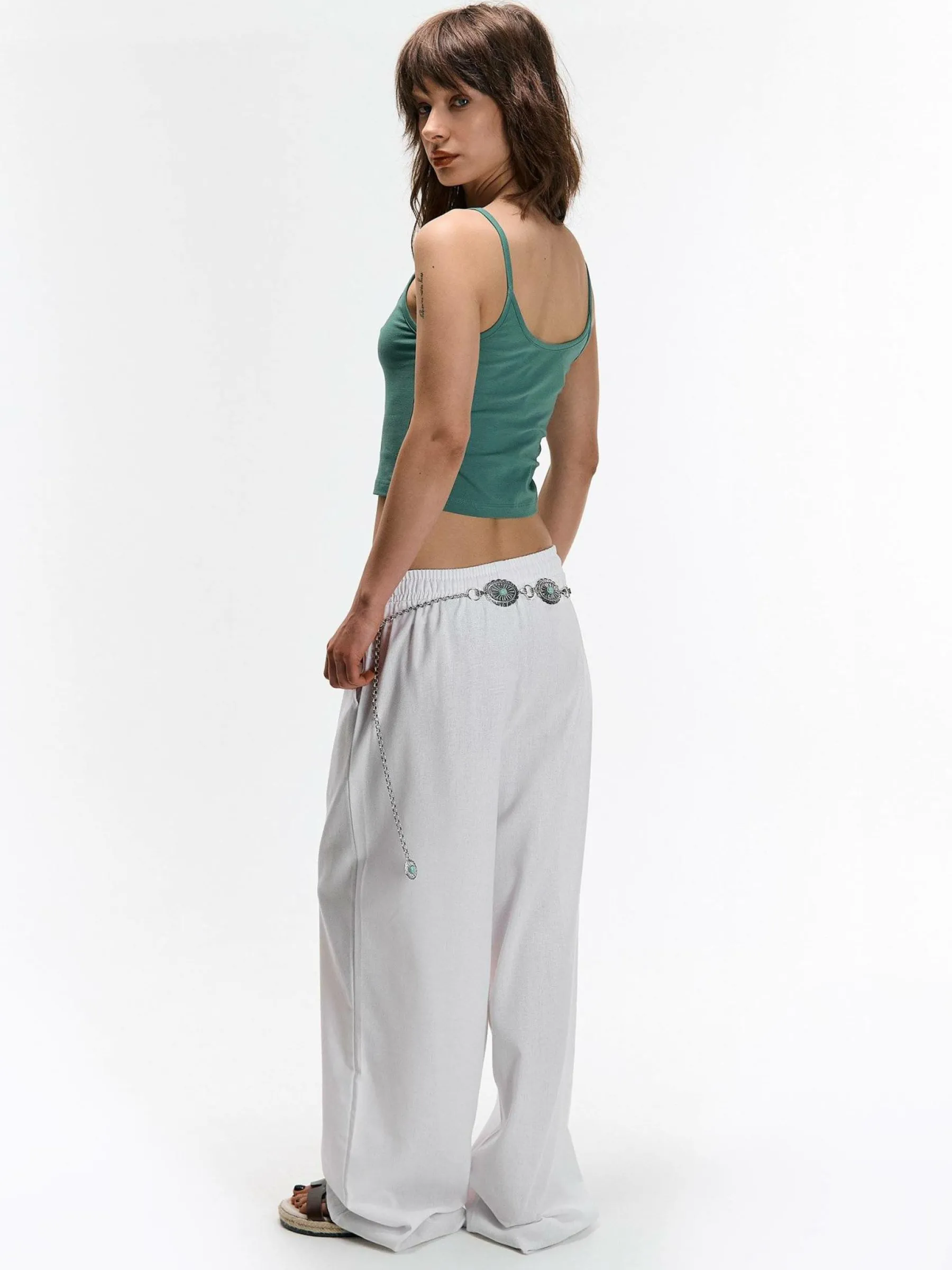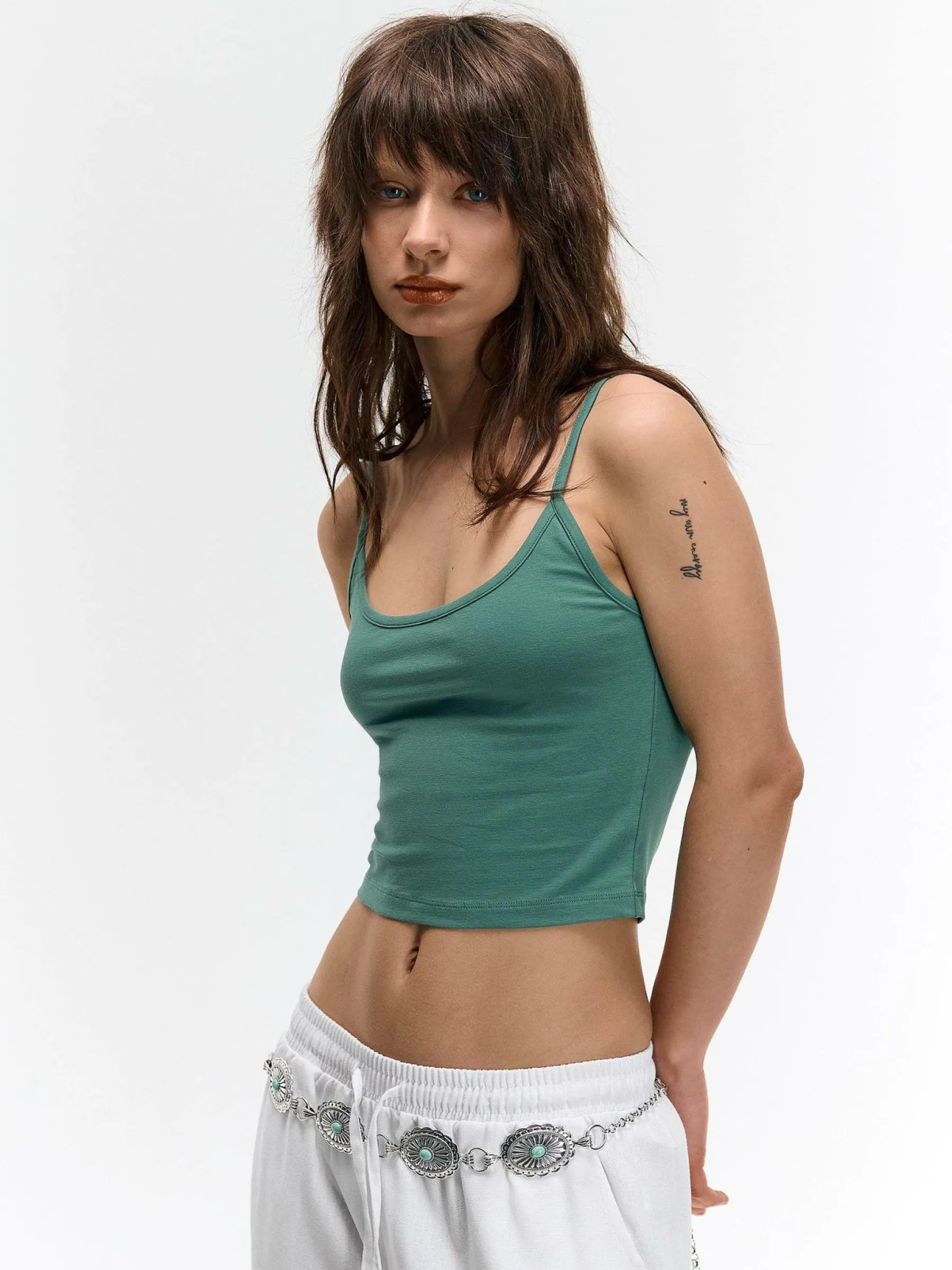 Kolor: zielonyKrój: regularTyp: podkoszulekRekaw: bez rękawówDługość: krótki topPattern style: pojedynczy kolorDe…