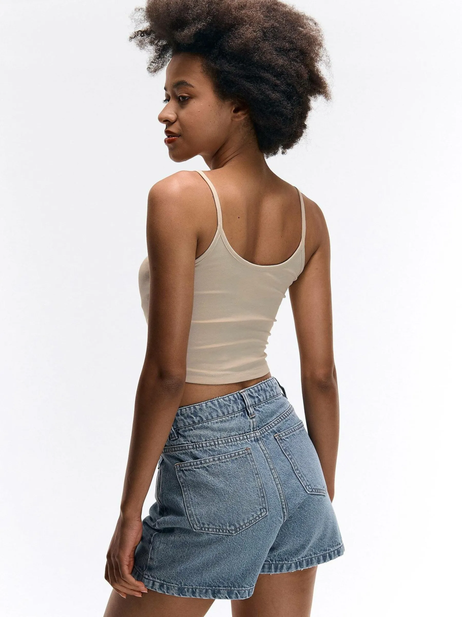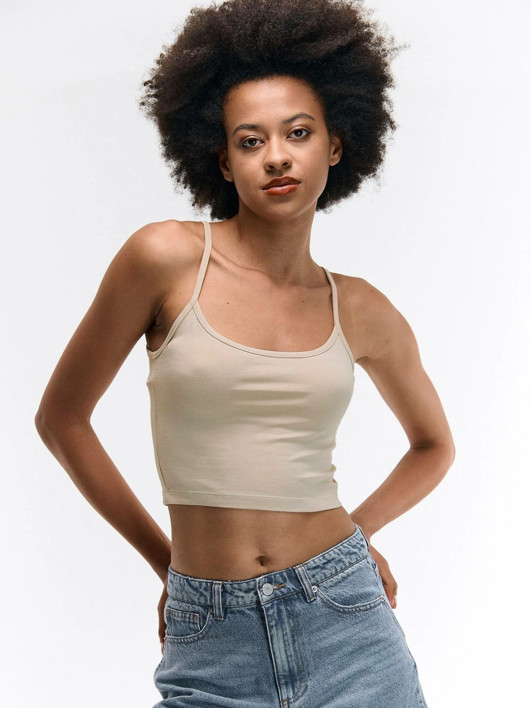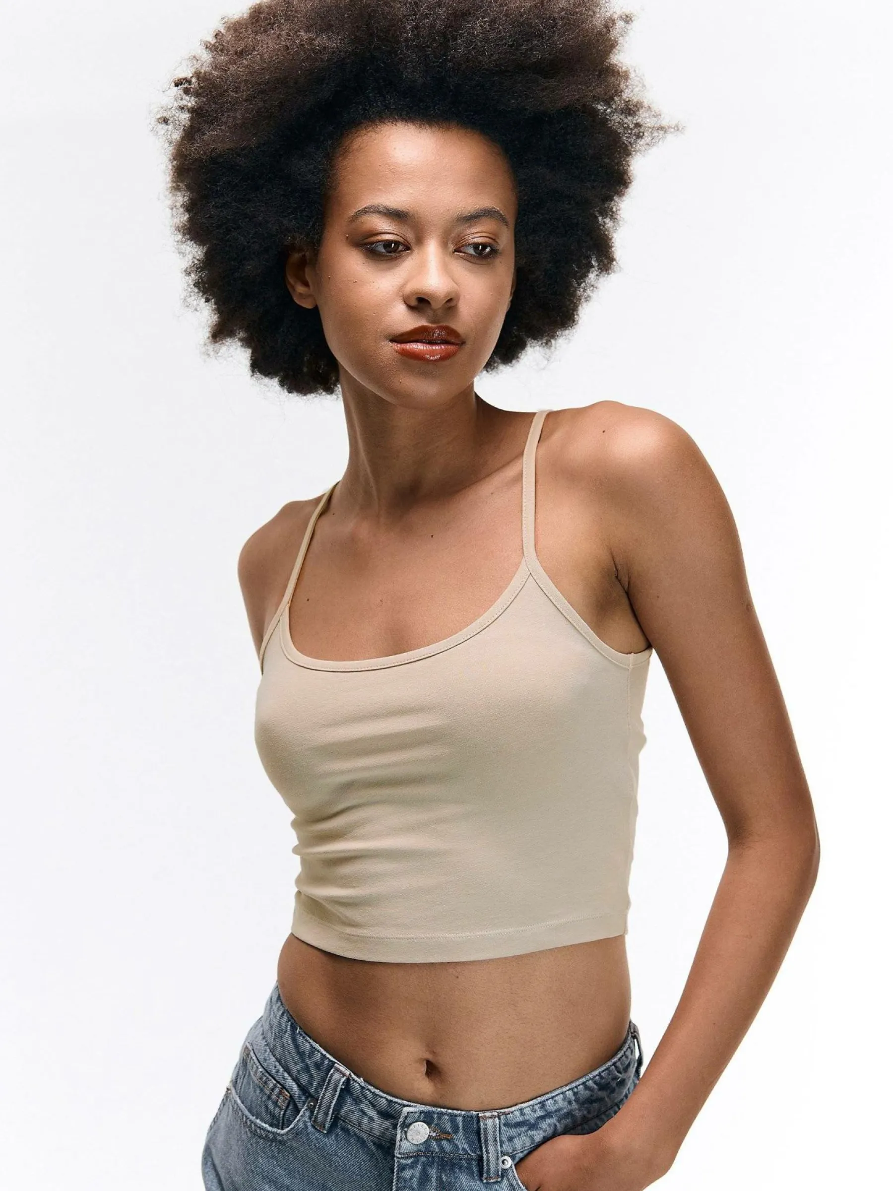 Kolor: beżowyKrój: regularTyp: podkoszulekRekaw: bez rękawówDługość: krótki topPattern style: pojedynczy kolorDe…
