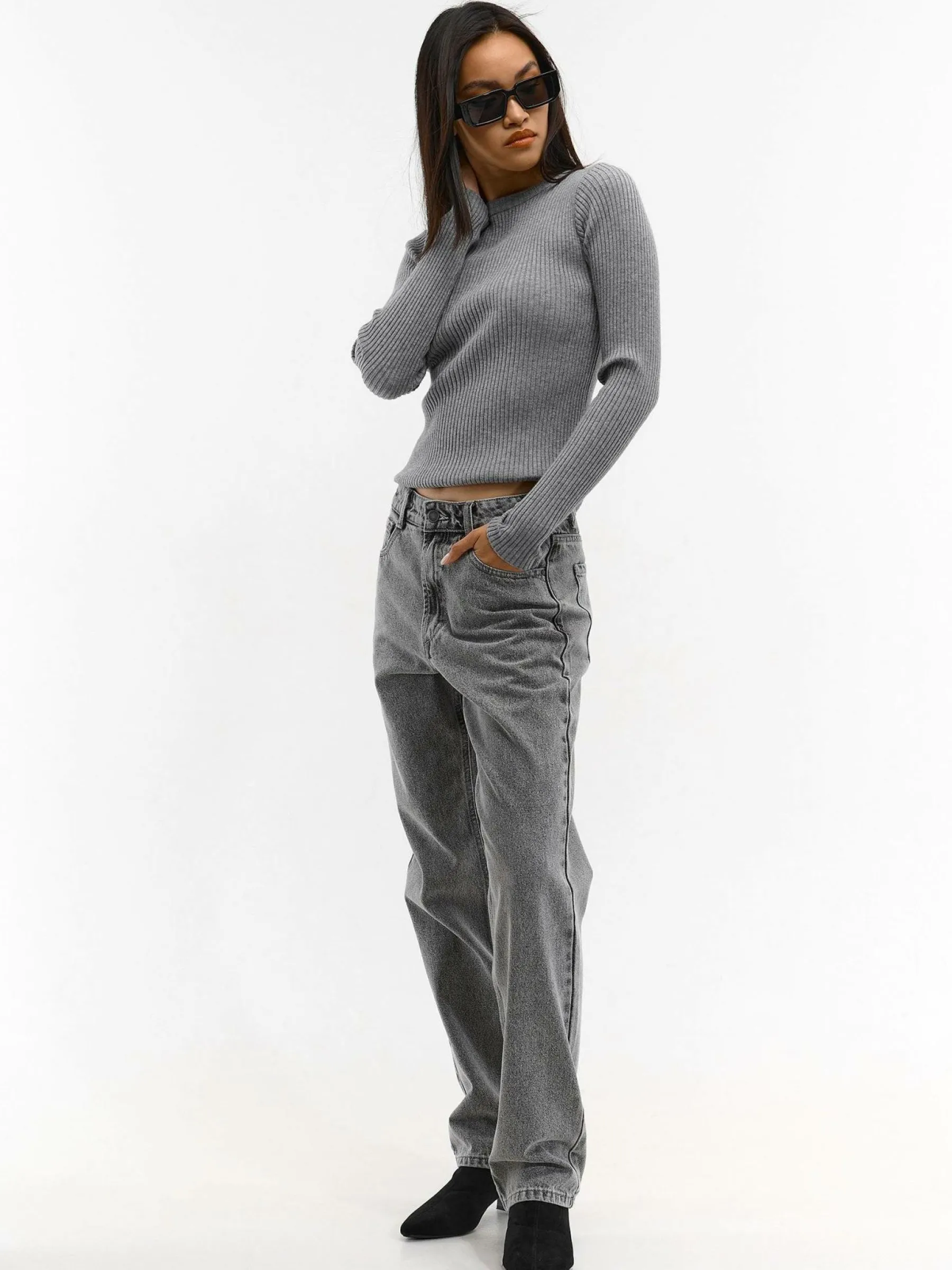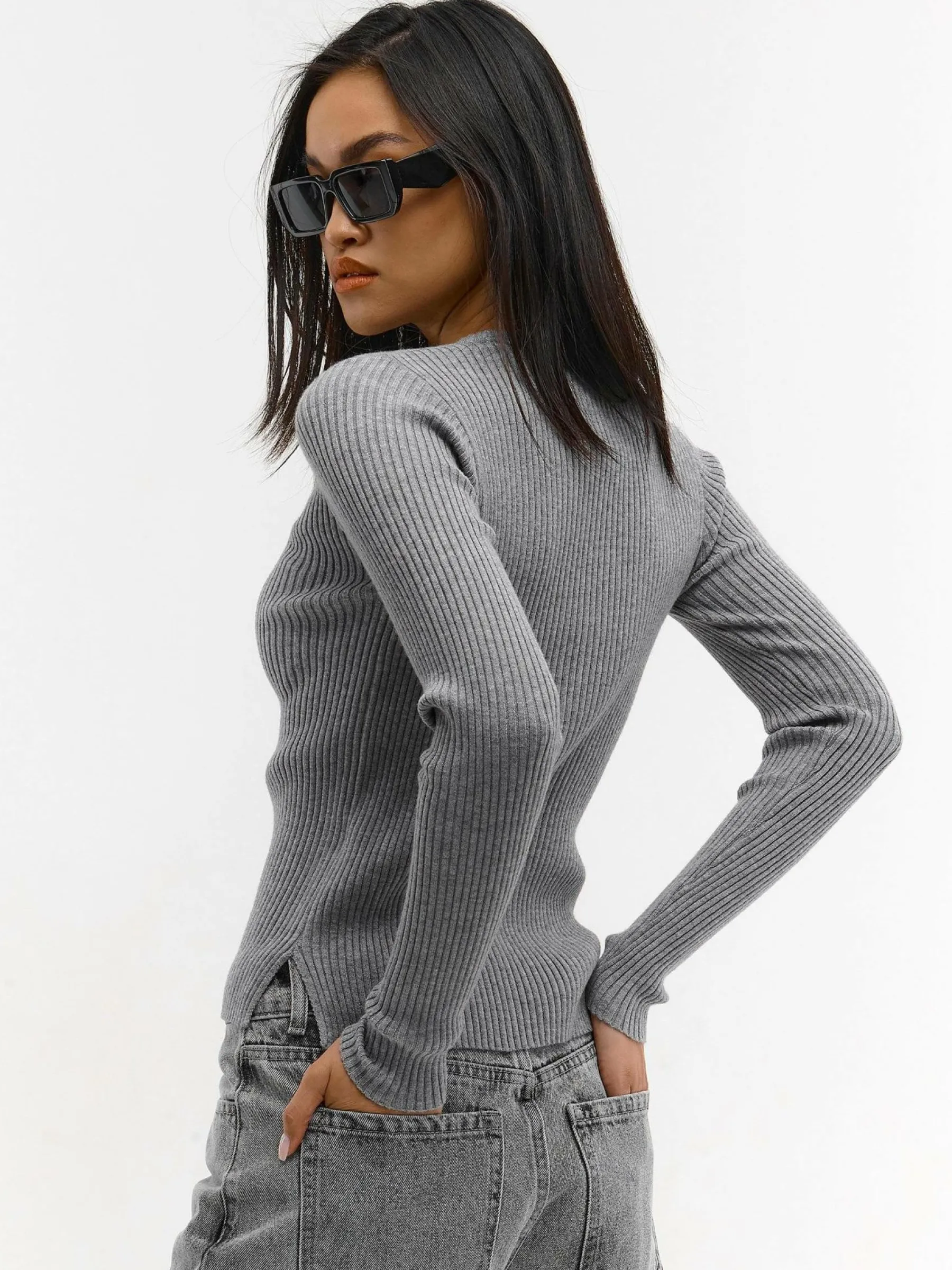 Kolor: szaryKrój: podstawowyTyp: swetryRekaw: długi rękawDługość: krótkiPattern style: pojedynczy kolor, żebrowa…