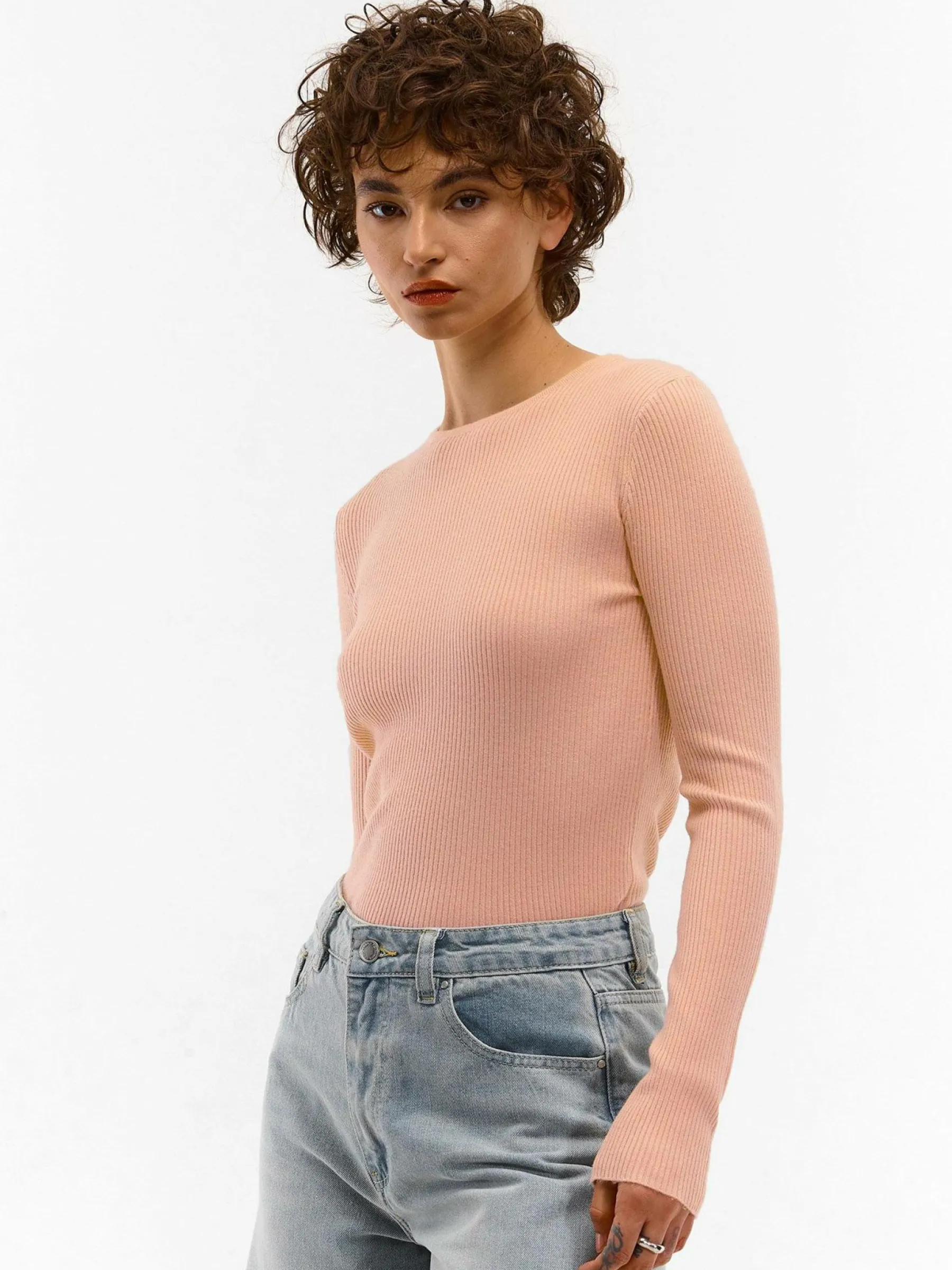 Kolor: różowyKrój: regularTyp: swetryRekaw: długi rękawDługość: krótkiPattern style: pojedynczy kolor, żebrowa…