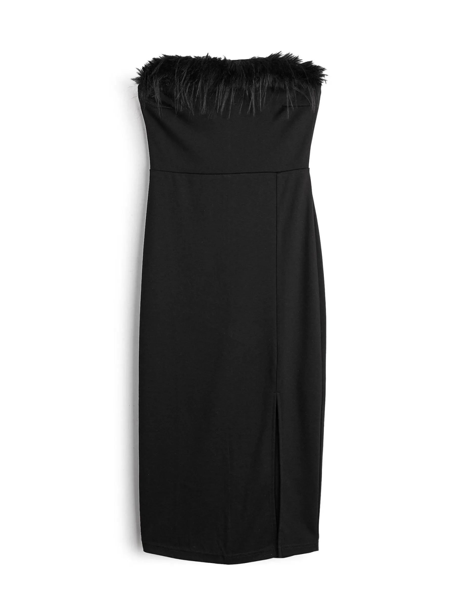 Kolor: czarnyKrój: ołówkoweTyp: sukienkaRekaw: bez rękawówDługość: midiPattern style: pojedynczy kolorDetal: na …
