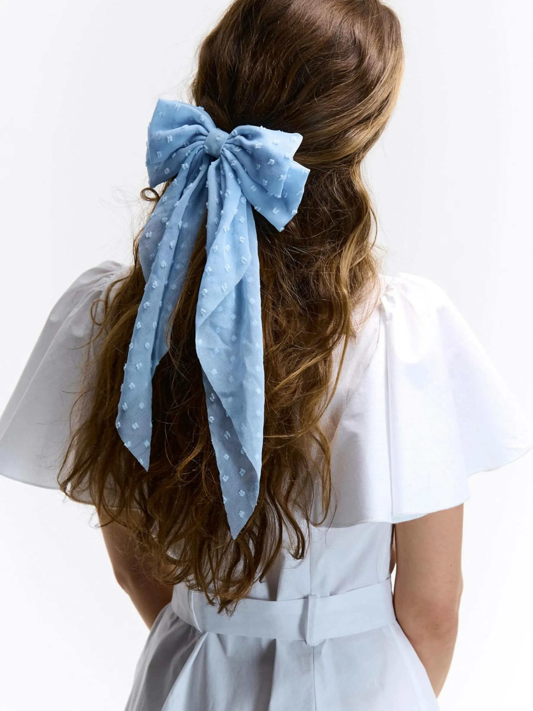 Kolor: niebieskiTyp: klamraPattern style: pojedynczy kolor, strukturowaneDetal: z kokardkąMateriał: syntetyczne, metal…