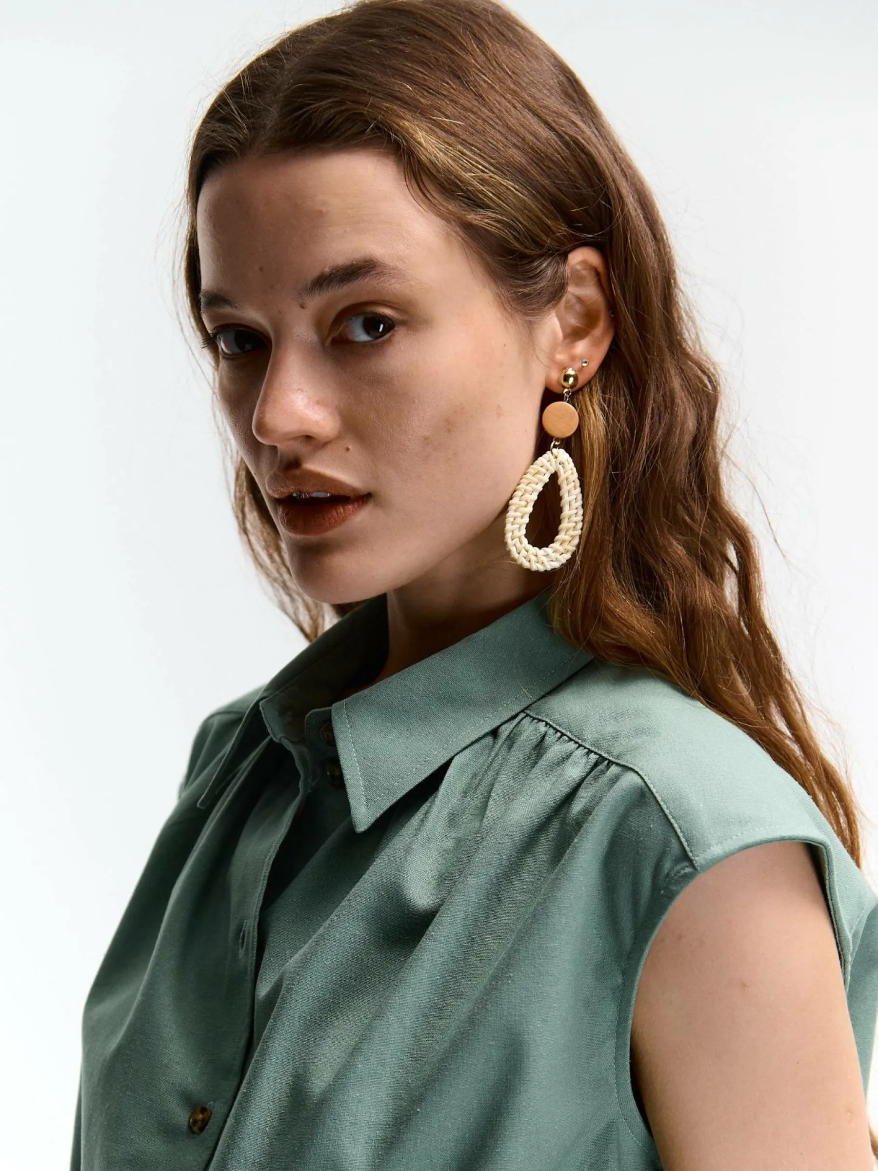 Kolor: beżowyKrój: wisząceTyp: kolczykiPattern style: pojedynczy kolorMateriał: drewnianePłeć: kobietyOkazja: odzi…