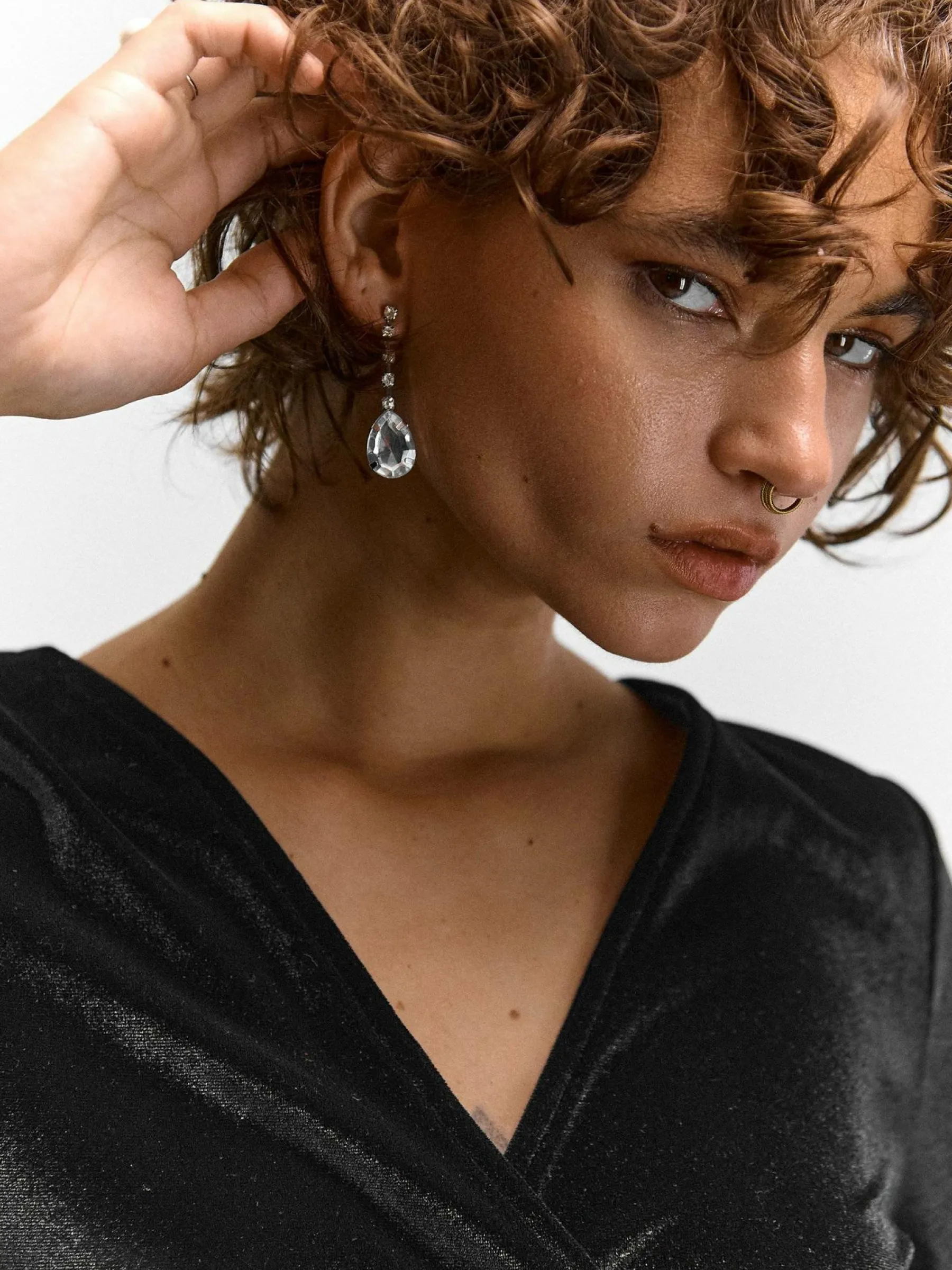 Kolor: silverKrój: wisząceTyp: kolczykiPattern style: pojedynczy kolorDetal: z kamieniamiMateriał: metalPłeć: kobie…
