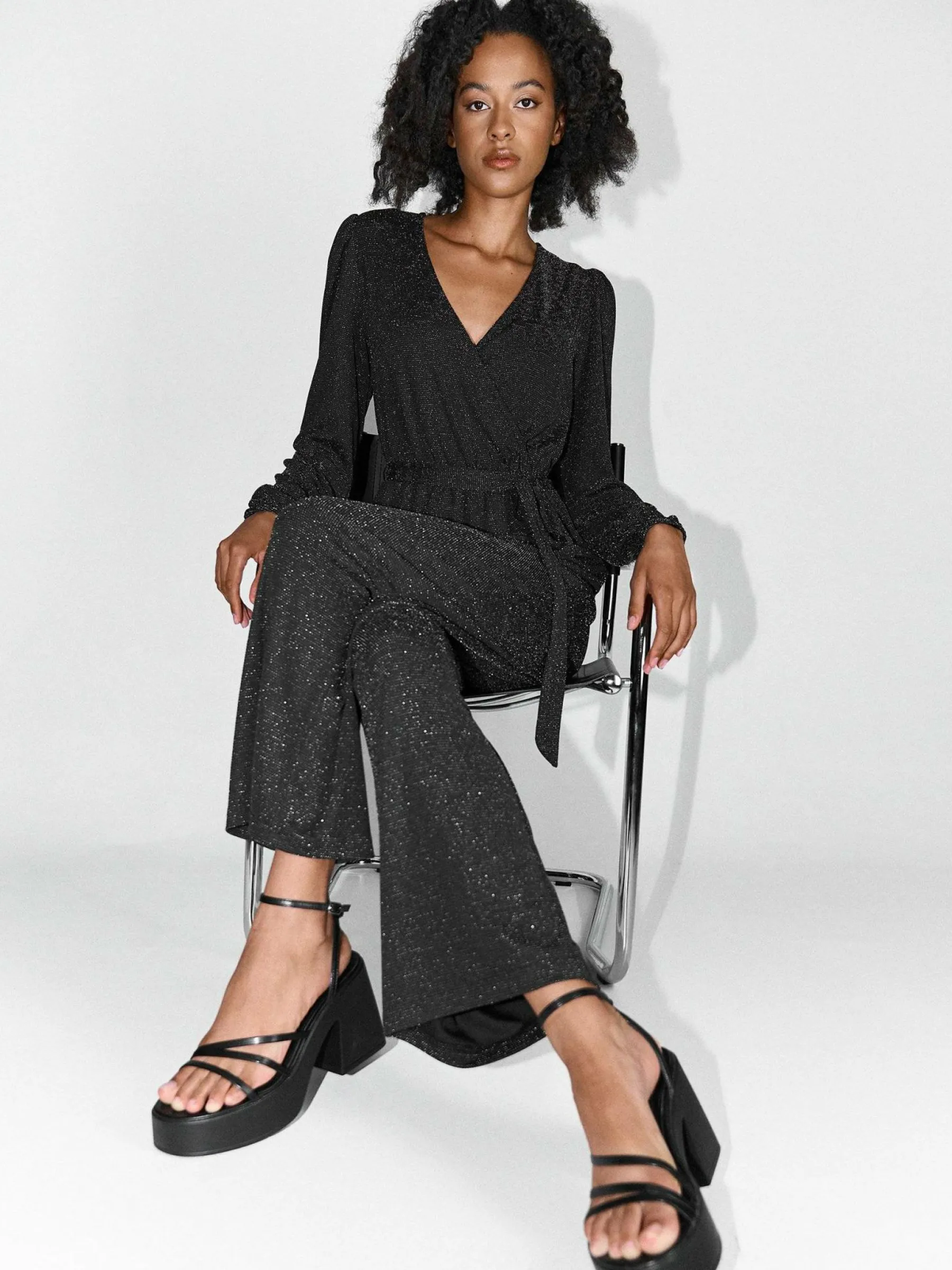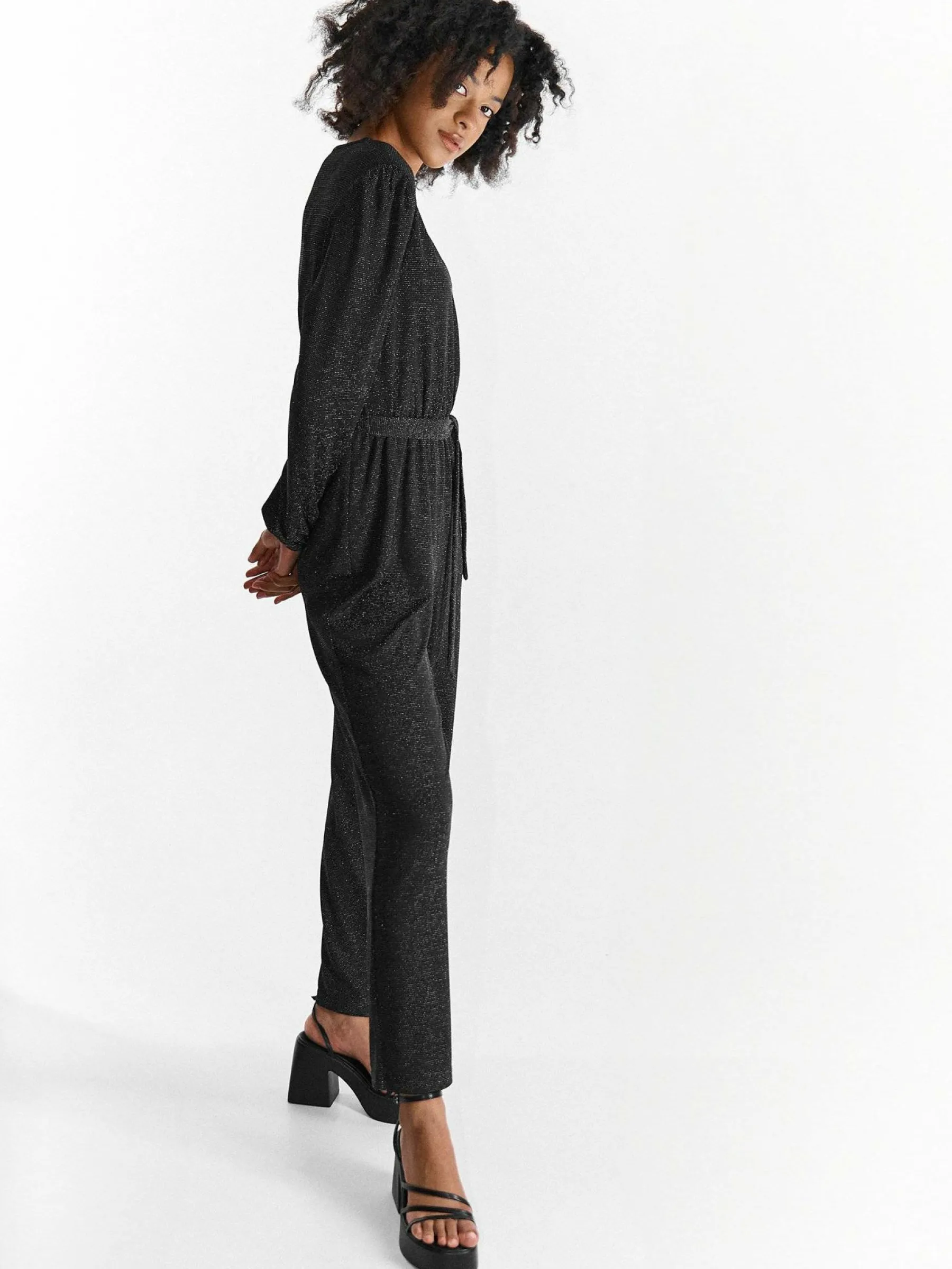 Kolor: czarnyKrój: kopertówkiTyp: kombinezonRekaw: długi rękawDługość: dlugiePattern style: pojedynczy kolor, z w…