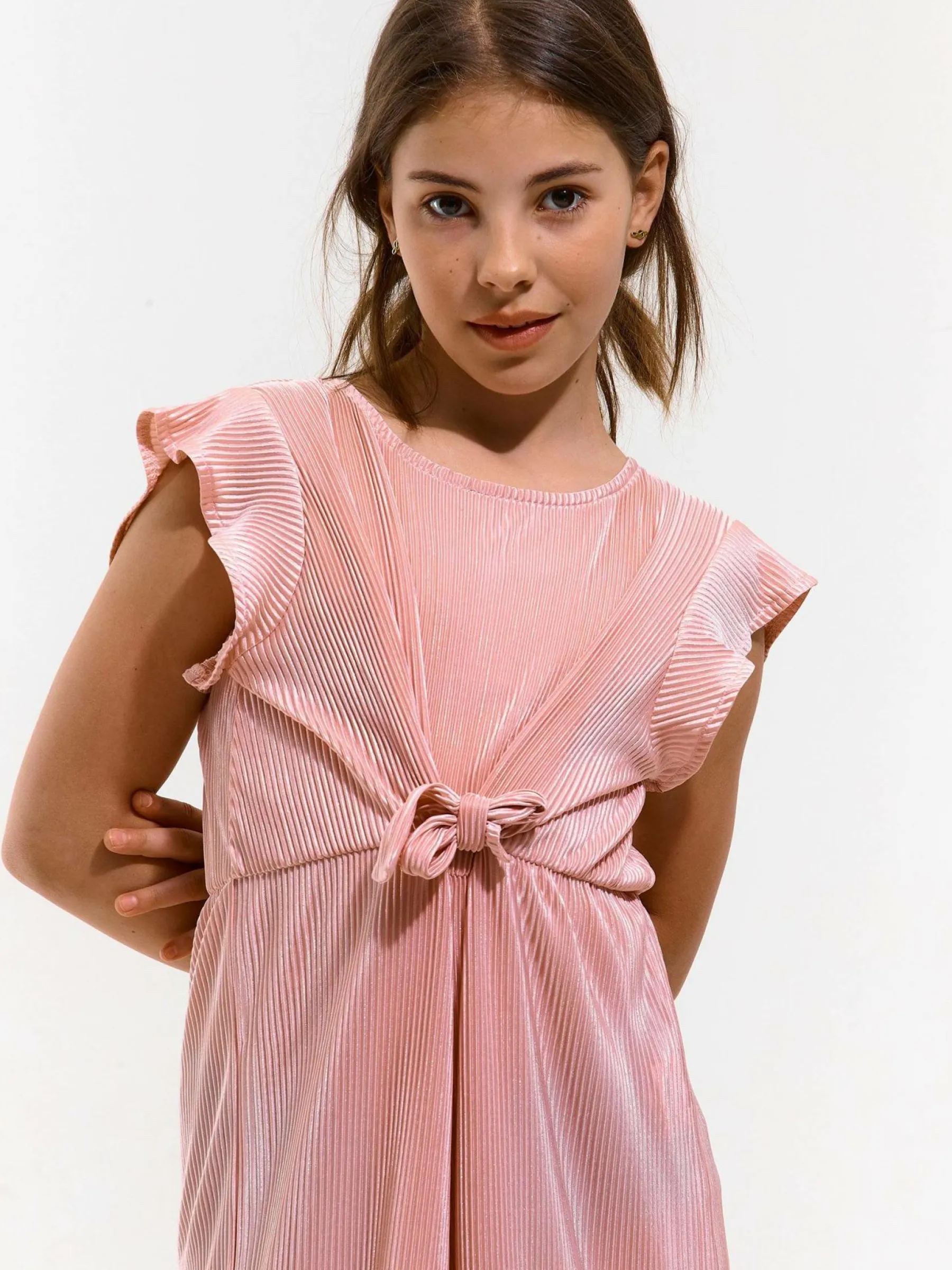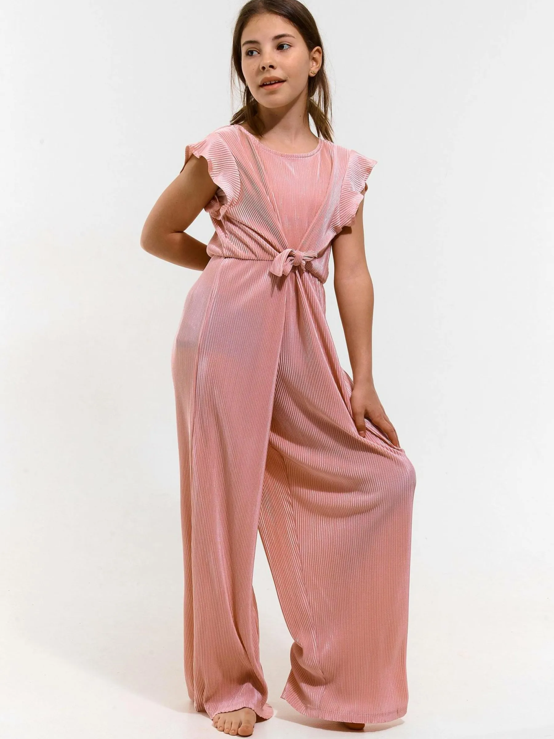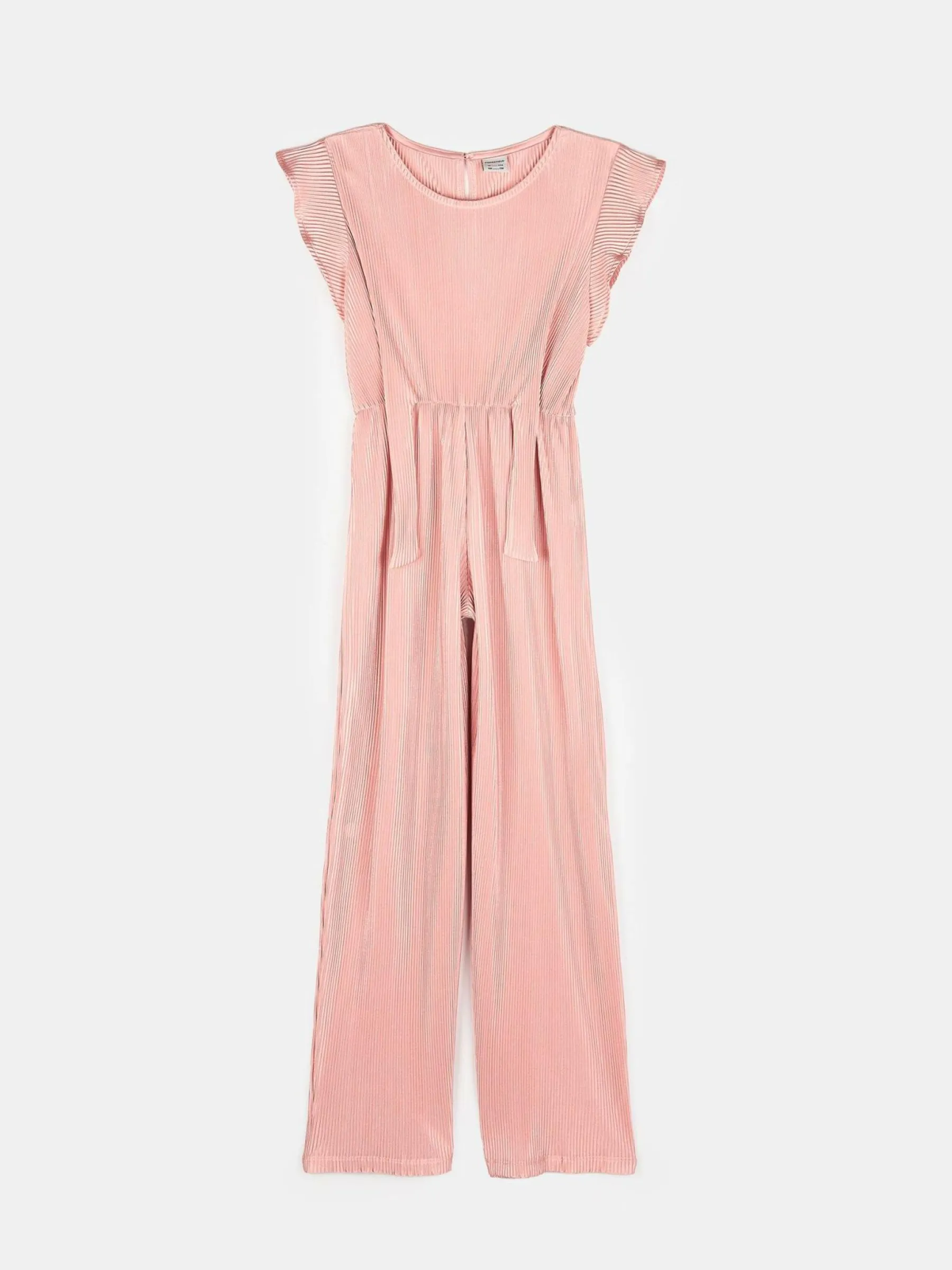 Kolor: różowyKrój: z falbanąTyp: kombinezonDługość: dlugiePattern style: pojedynczy kolor, żebrowanyDetal: z kok…