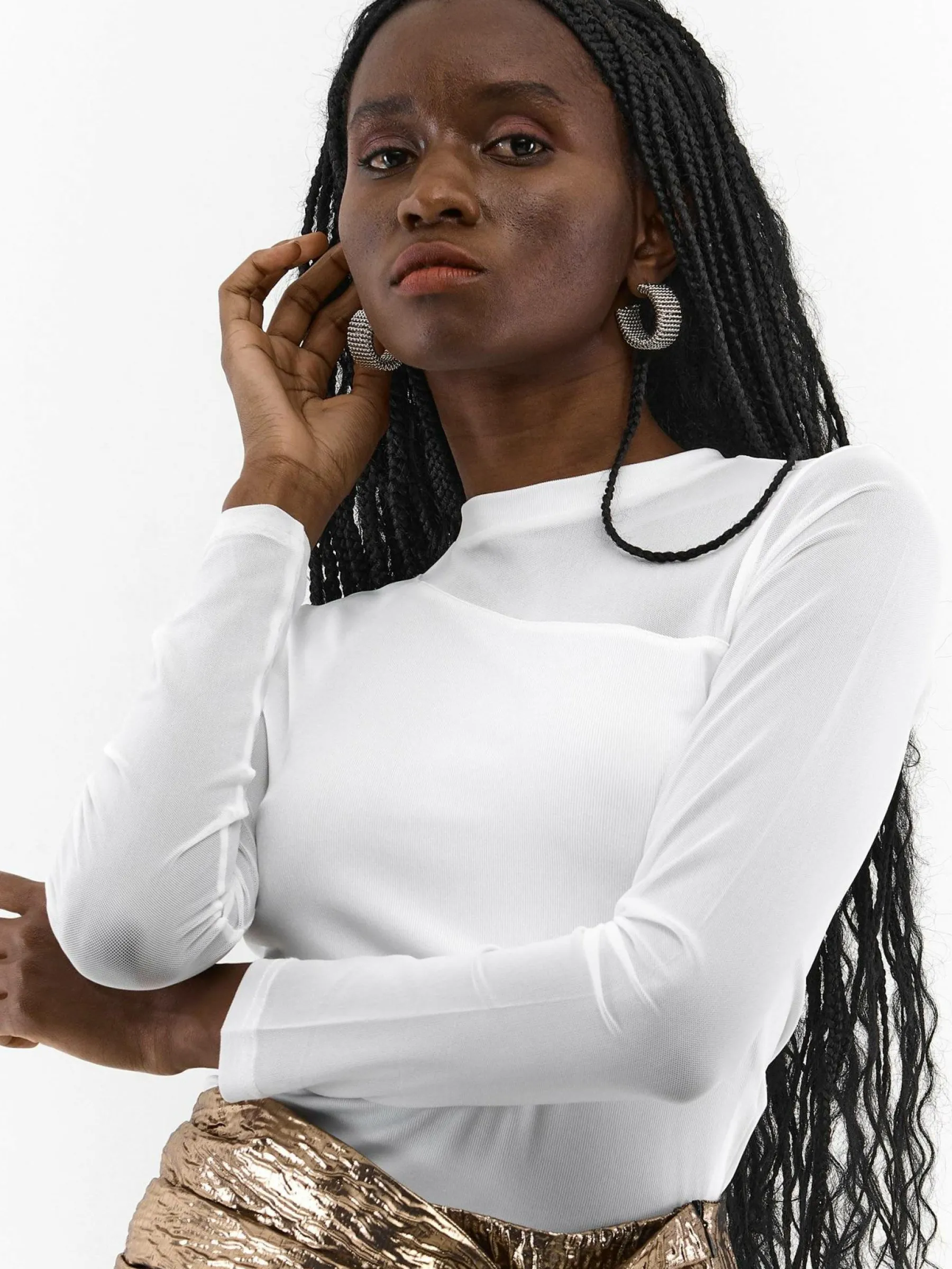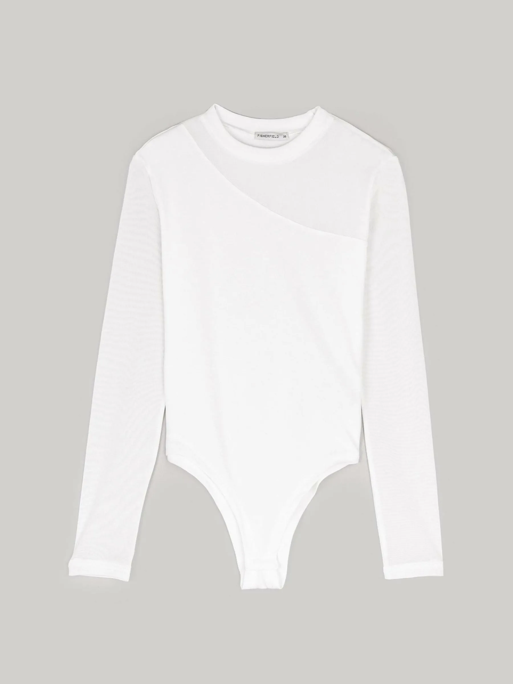 Kolor: białyKrój: slimTyp: bodyRekaw: długi rękawDługość: krótkiPattern style: pojedynczy kolorDetal: na snapyMa…