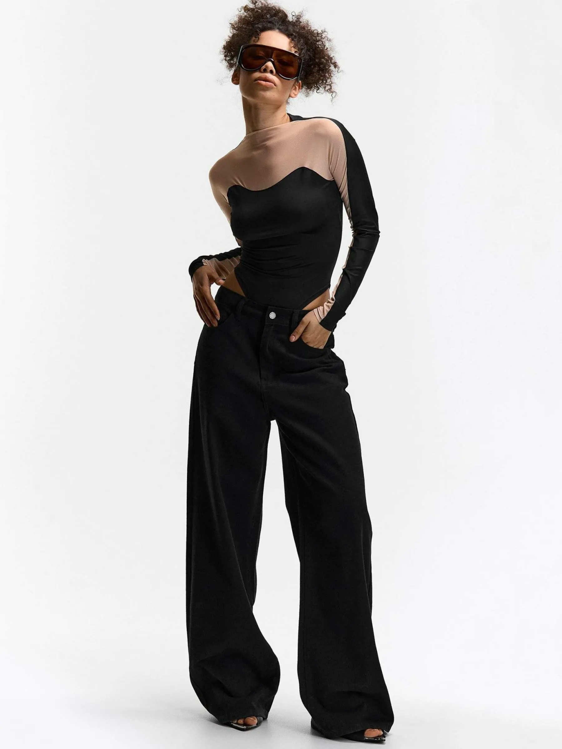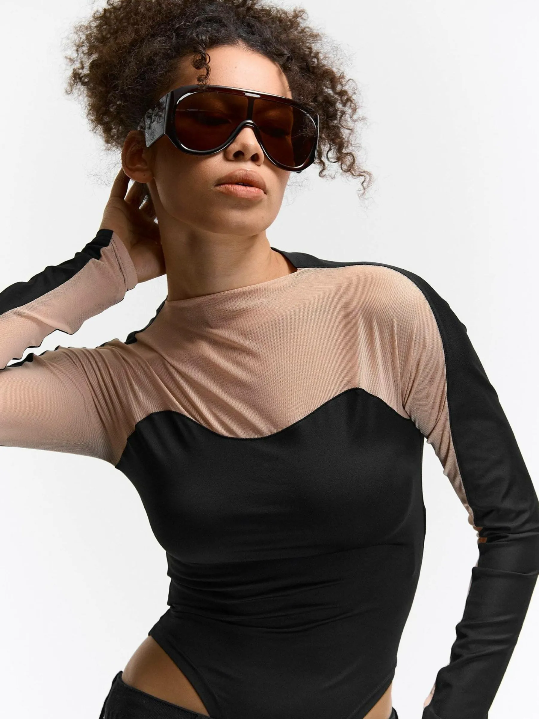 Kolor: czarnyKrój: slimTyp: bodyRekaw: długi rękawDługość: krótkiPattern style: wielobarwnyDetal: na snapyMateria…