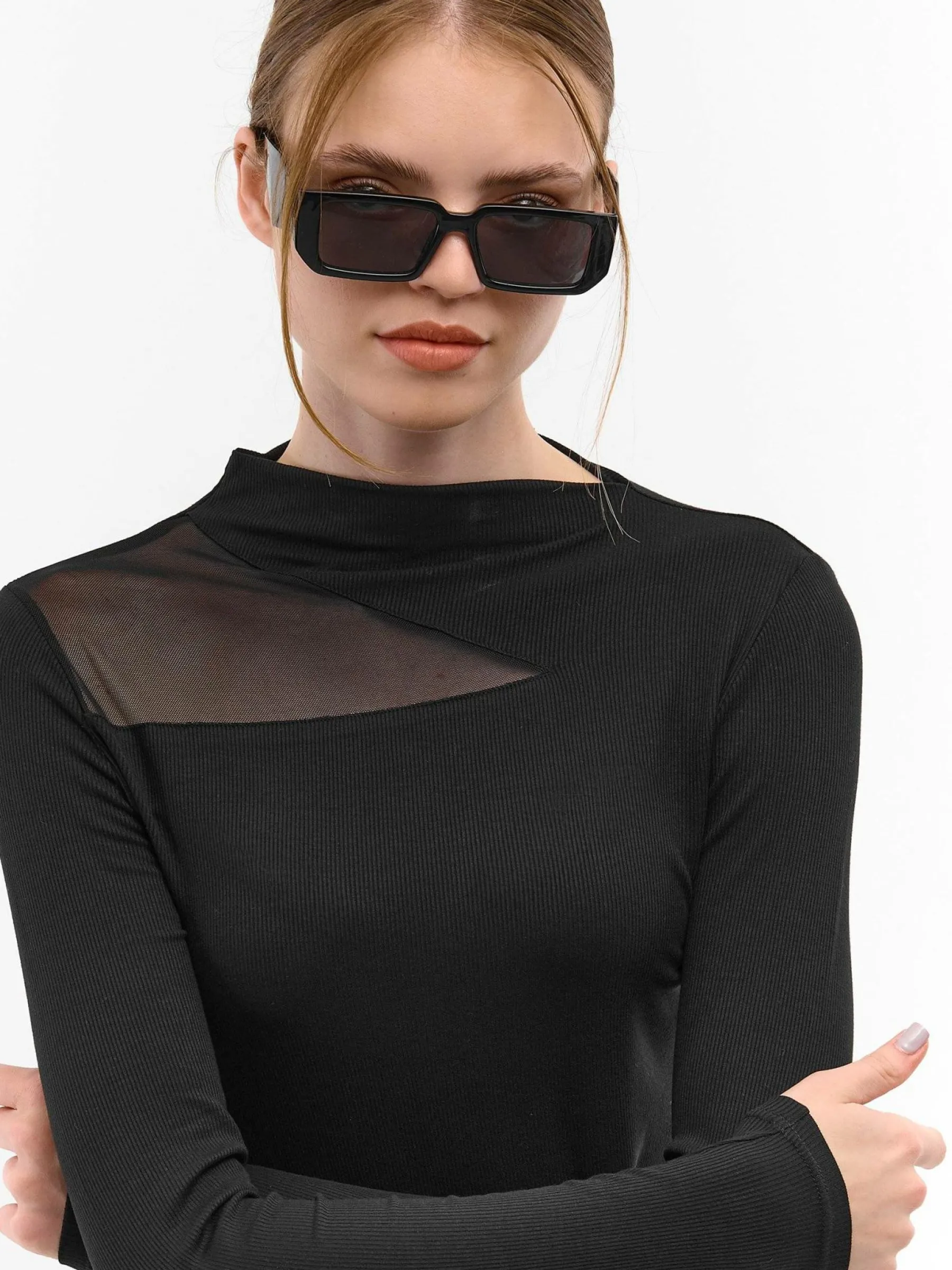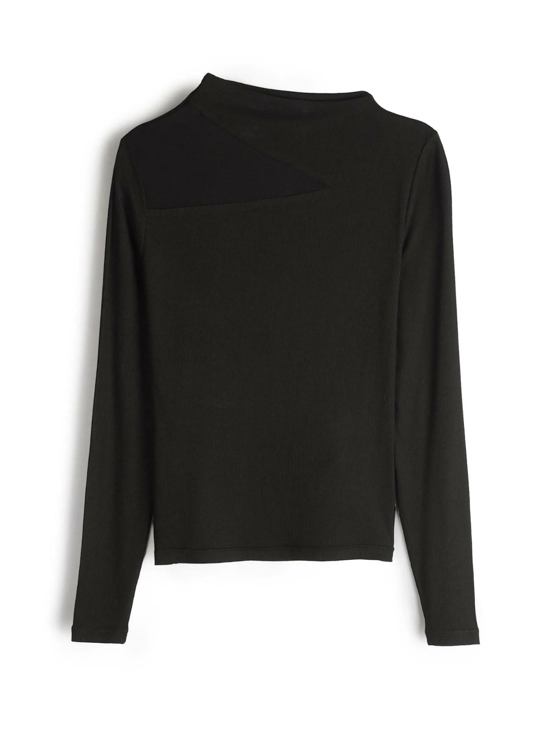 Kolor: czarnyKrój: regularTyp: topRekaw: długi rękawDługość: krótkiPattern style: pojedynczy kolor, żebrowanyDet…