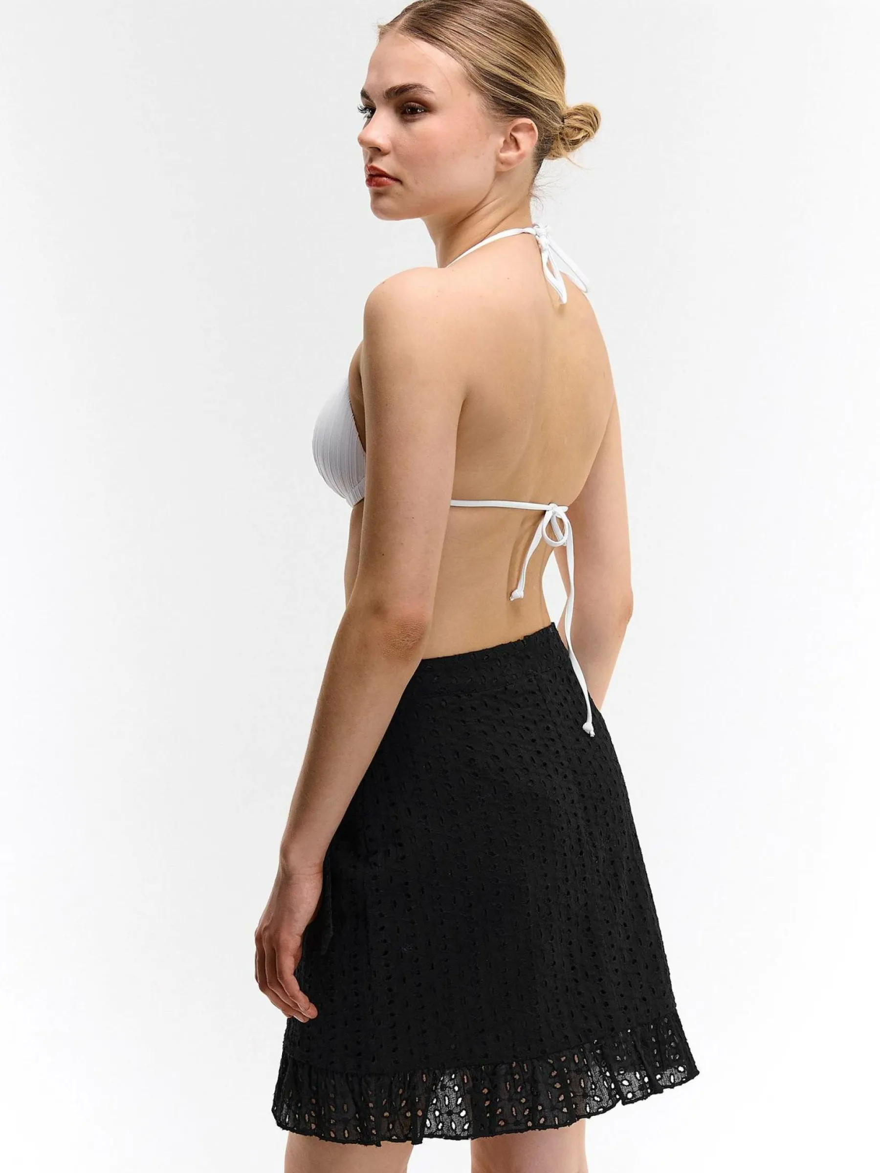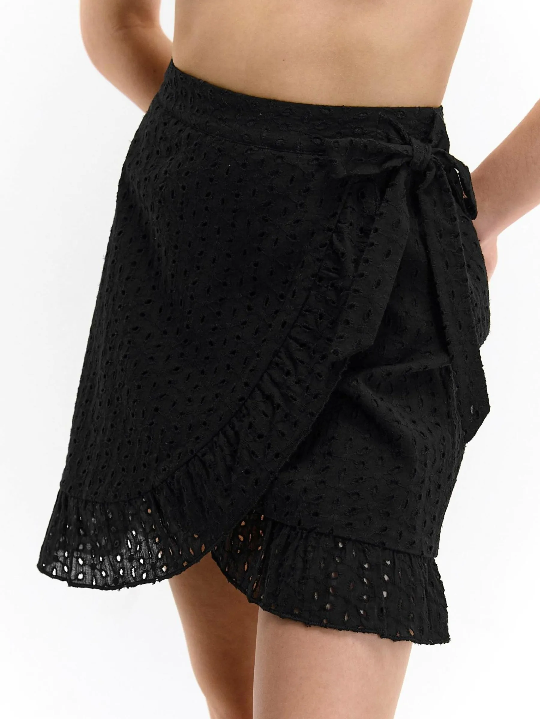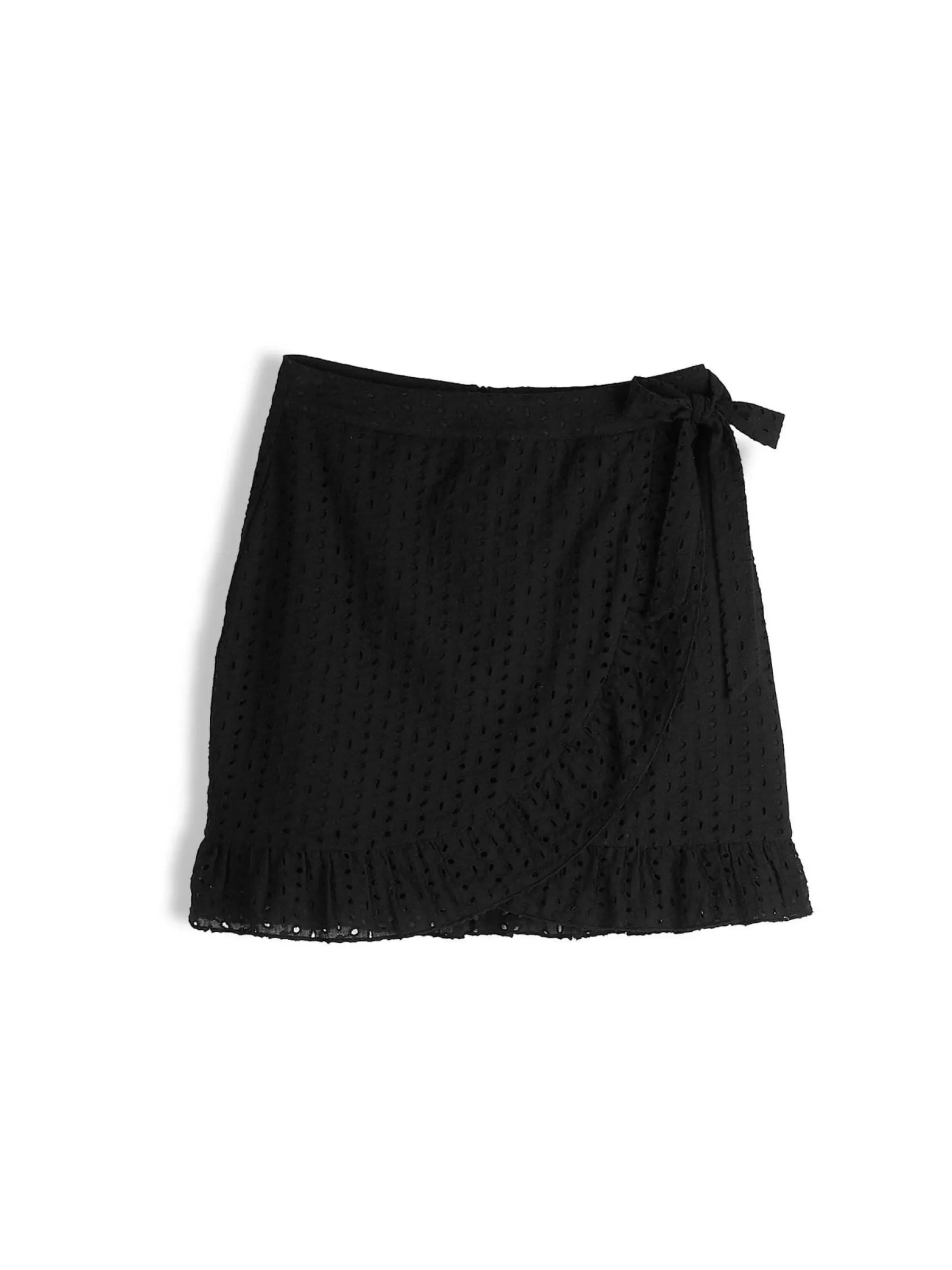 Kolor: czarnyKrój: kopertówkiTyp: spódnicaDługość: miniPattern style: pojedynczy kolor, haftowaneDetal: na zamek, …