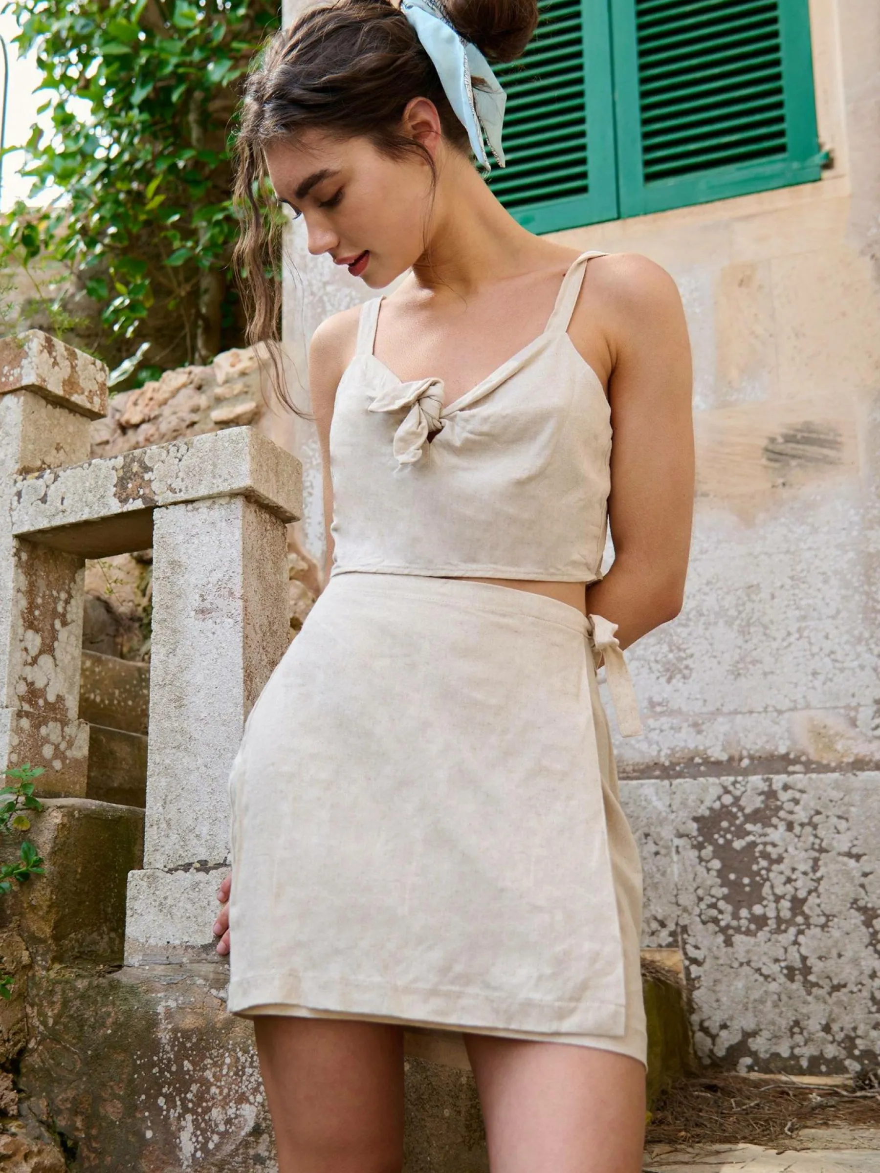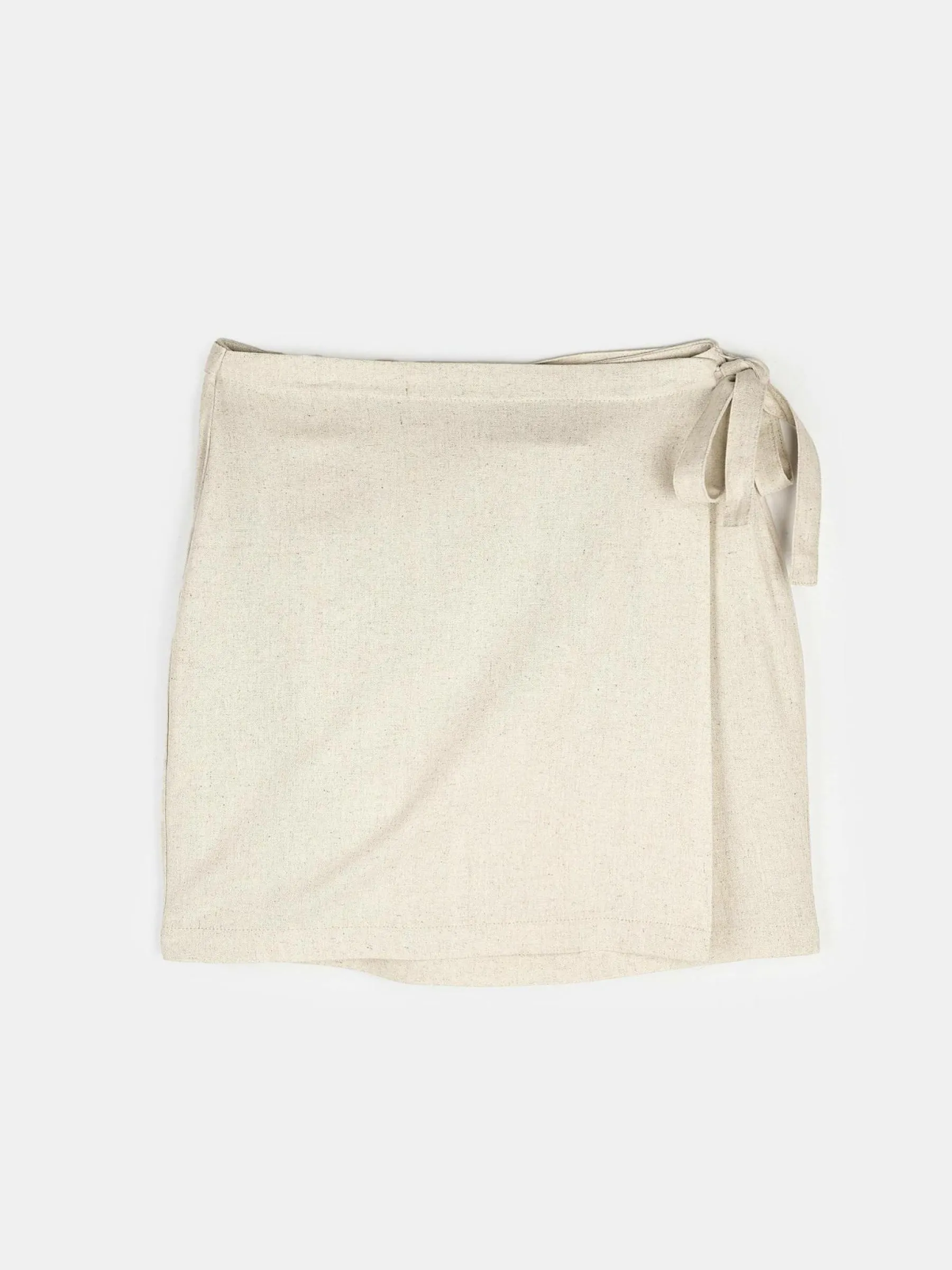 Kolor: beżowyKrój: kopertówkiTyp: spódnicaDługość: miniPattern style: pojedynczy kolorMateriał: mieszanyPłeć: …
