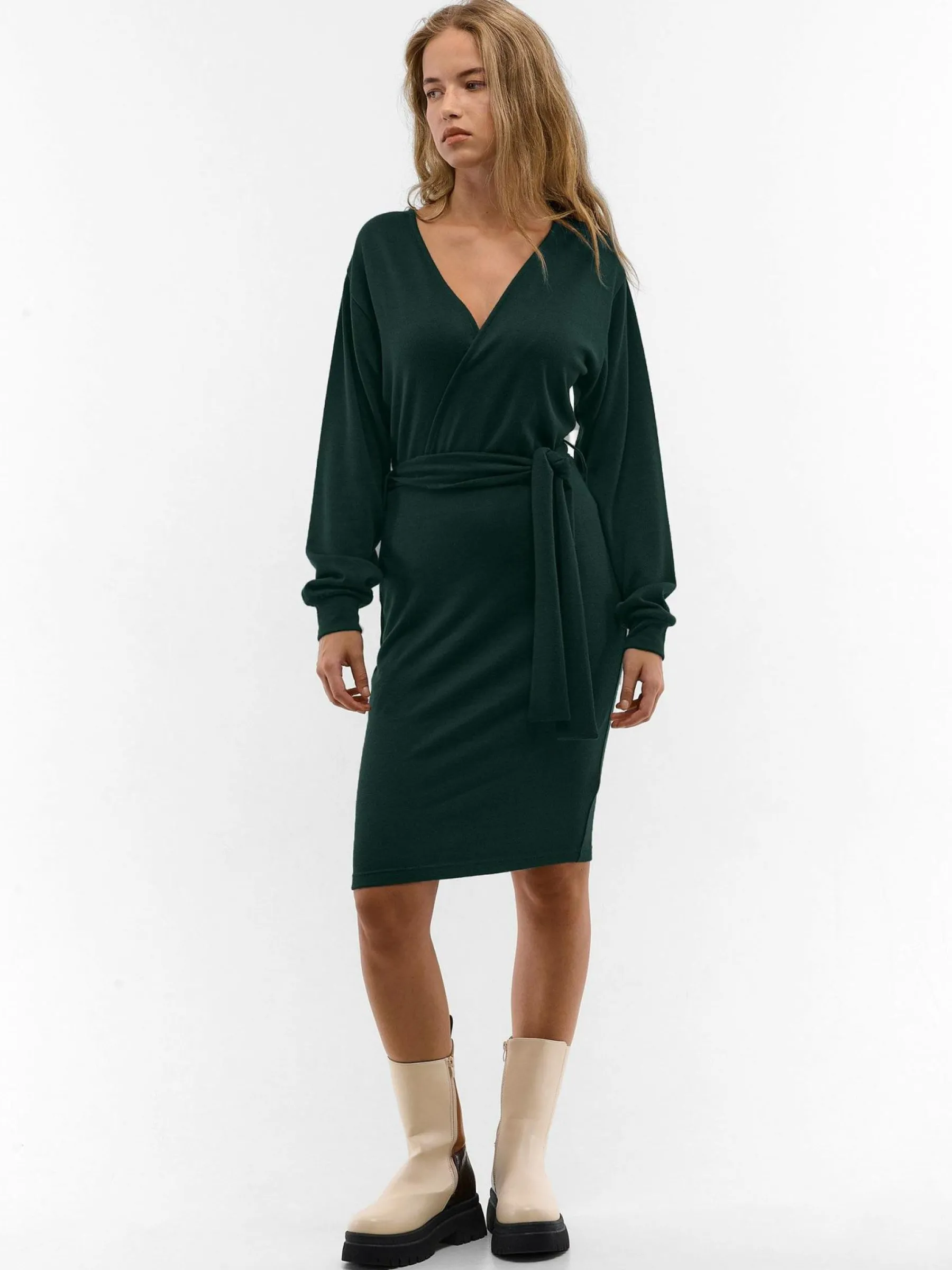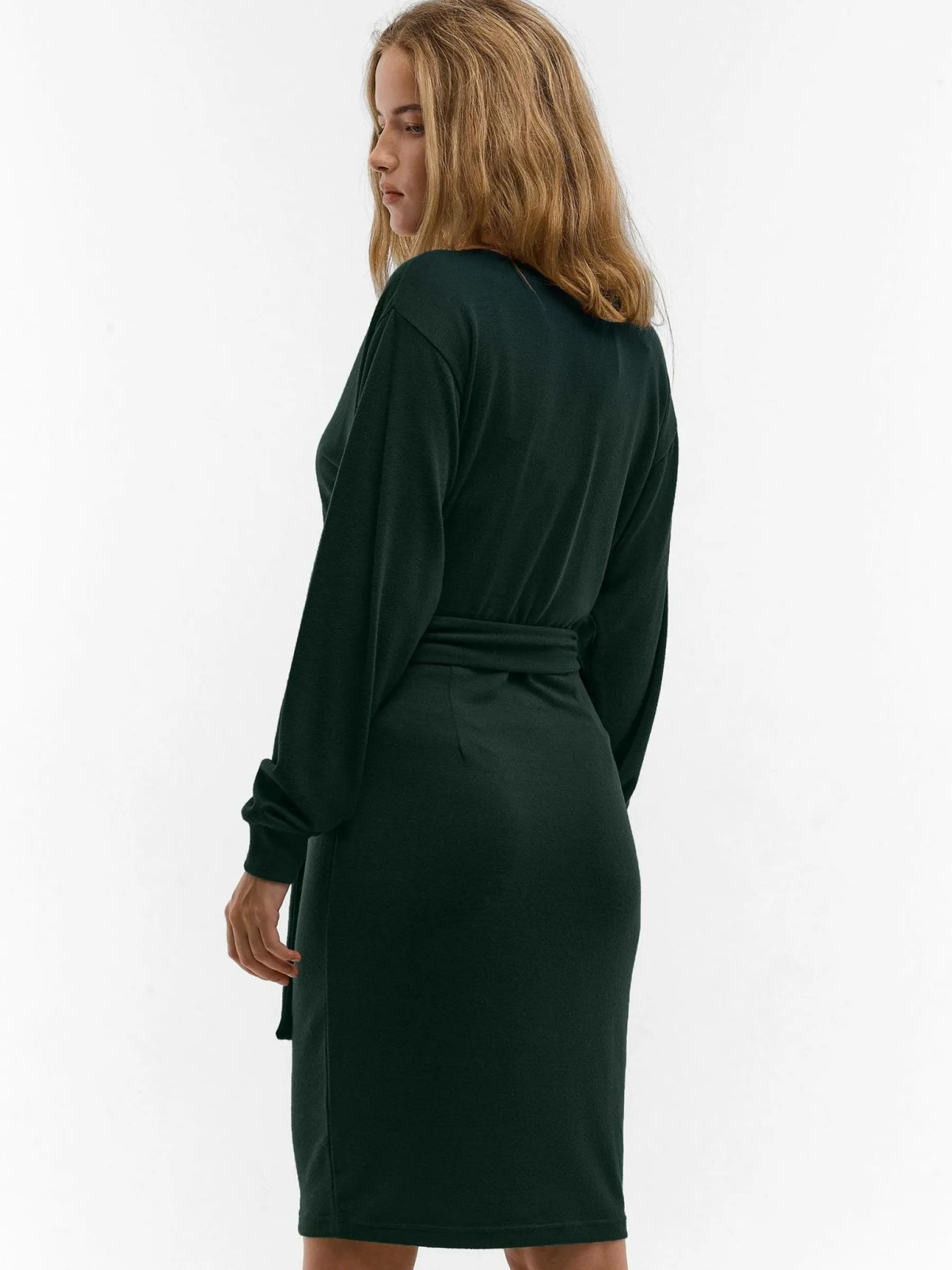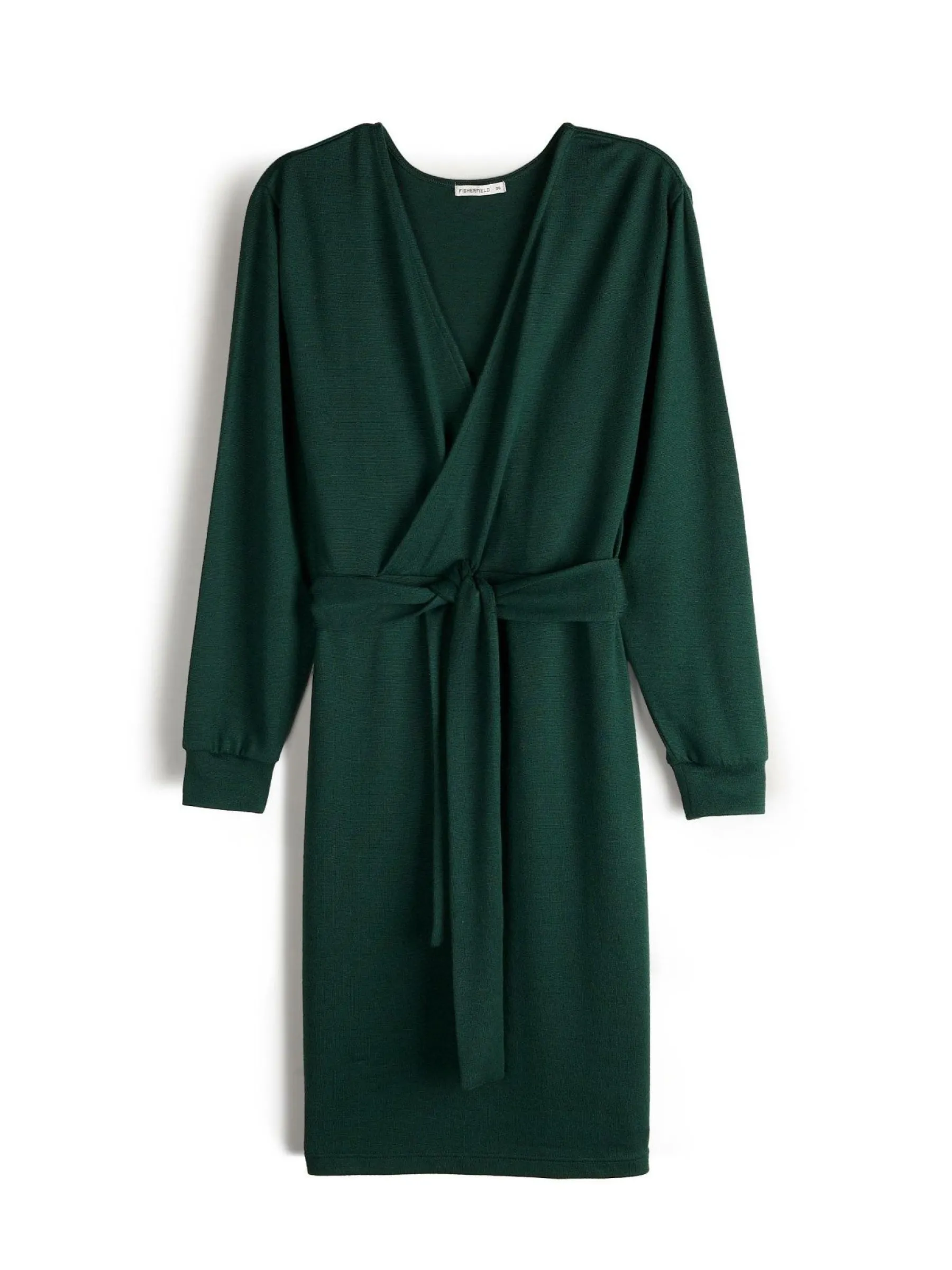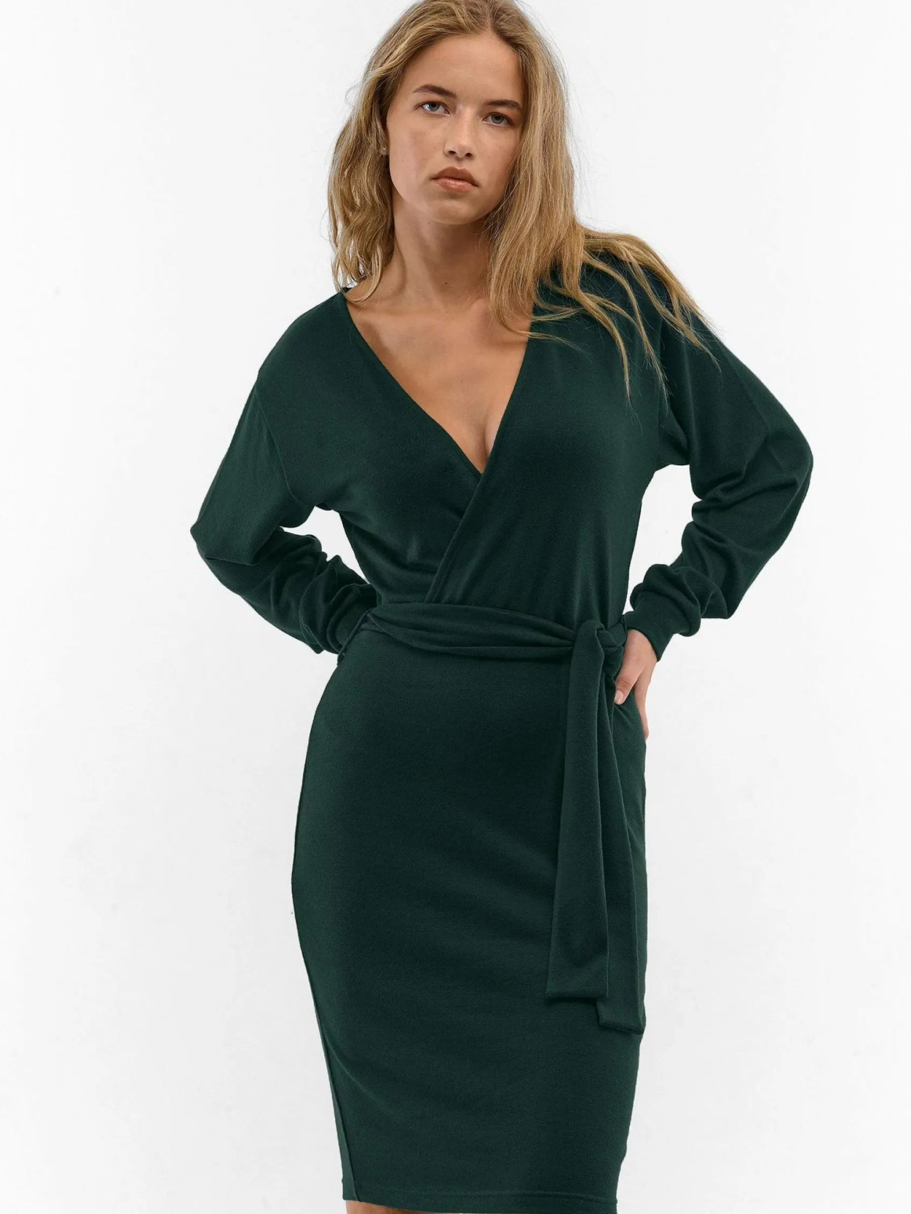 Kolor: zielonyKrój: kopertówkiTyp: sukienkaRekaw: długi rękawDługość: miniPattern style: pojedynczy kolorDetal: v…