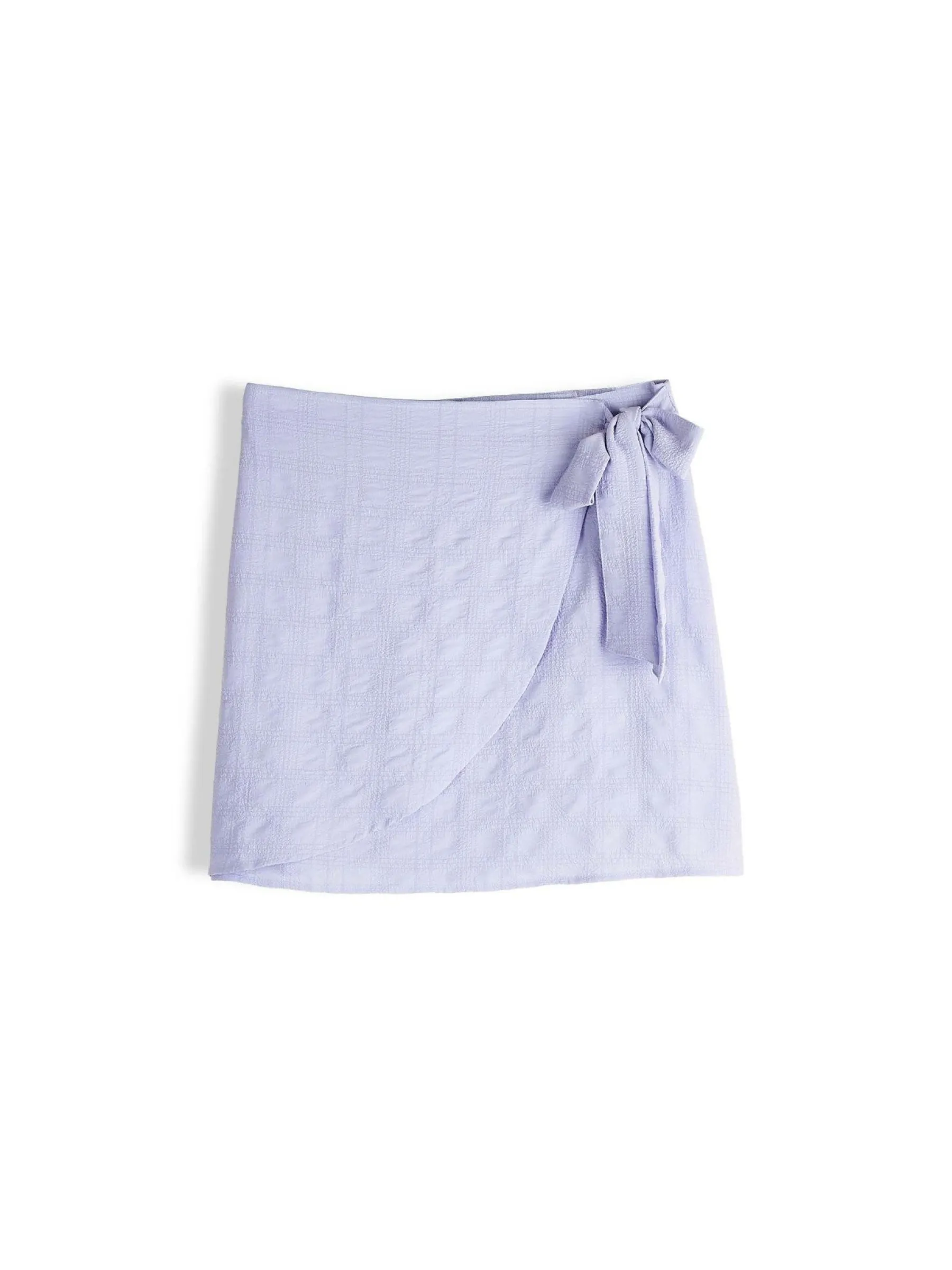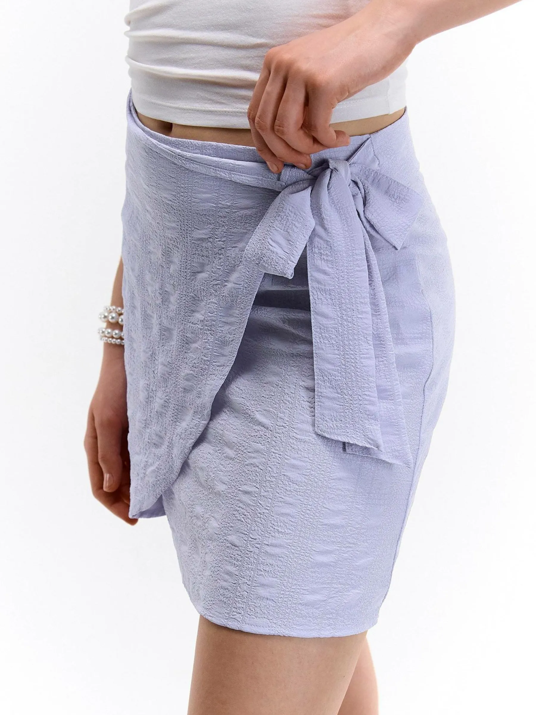Kolor: purpurowyKrój: kopertówkiTyp: spódnicaDługość: miniPattern style: pojedynczy kolorDetal: na zamek, z wiąza…