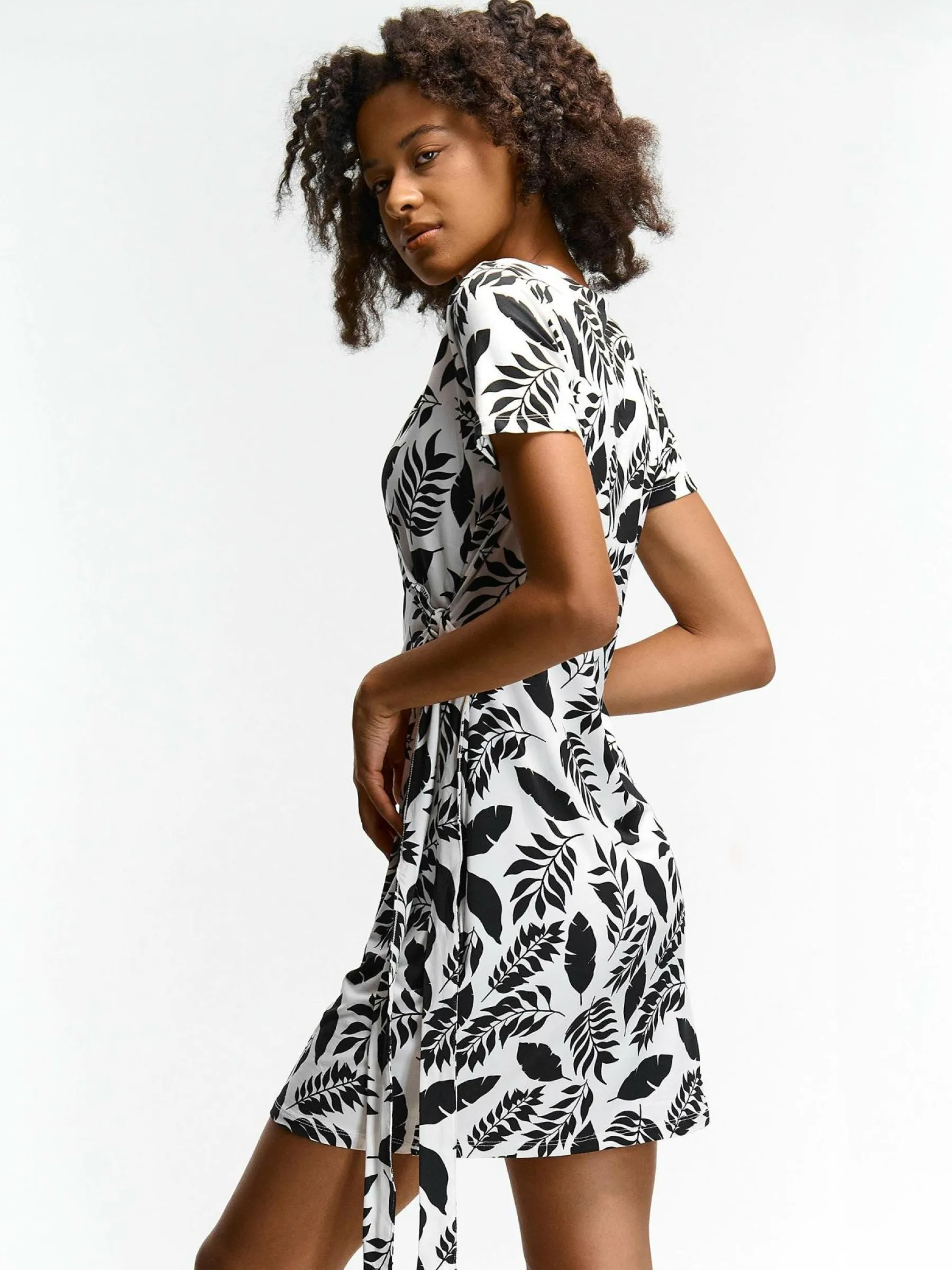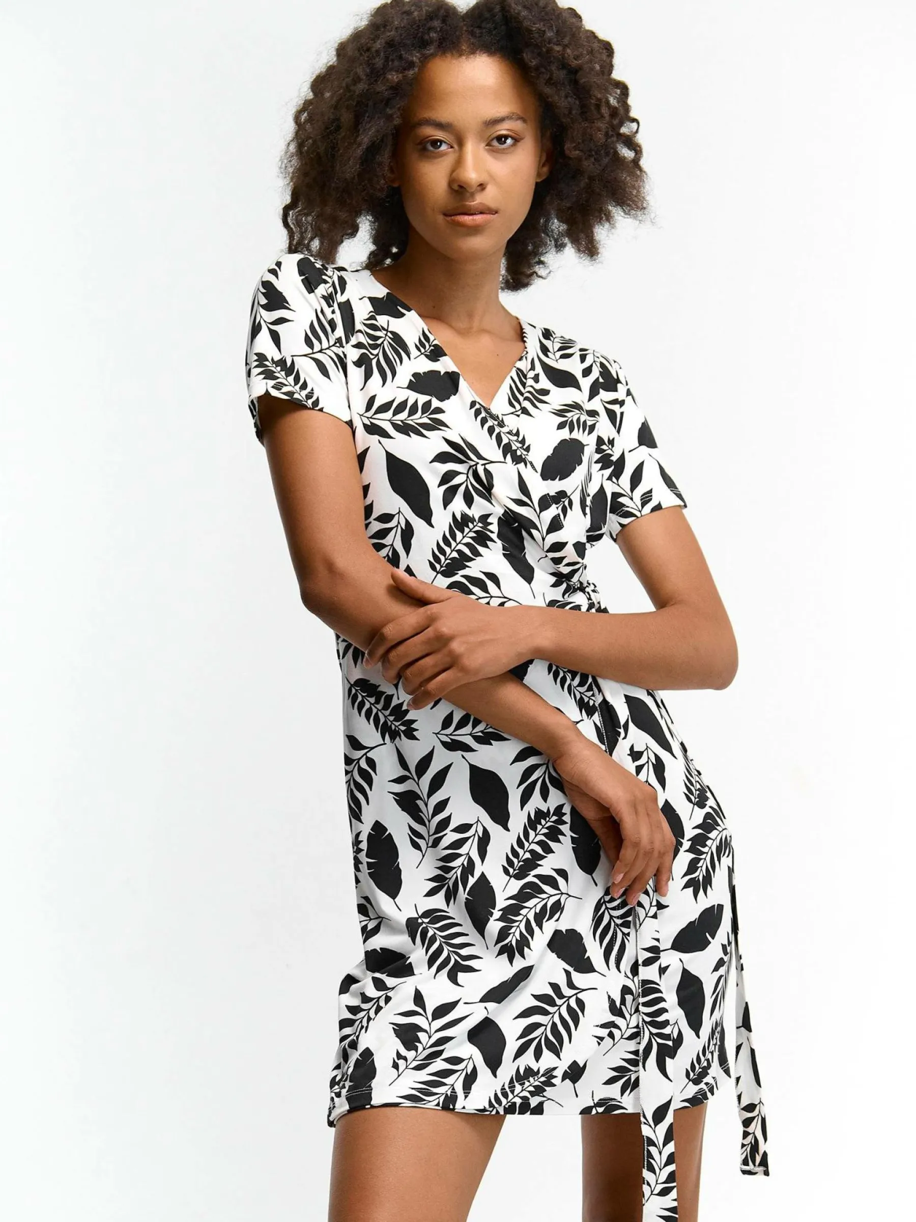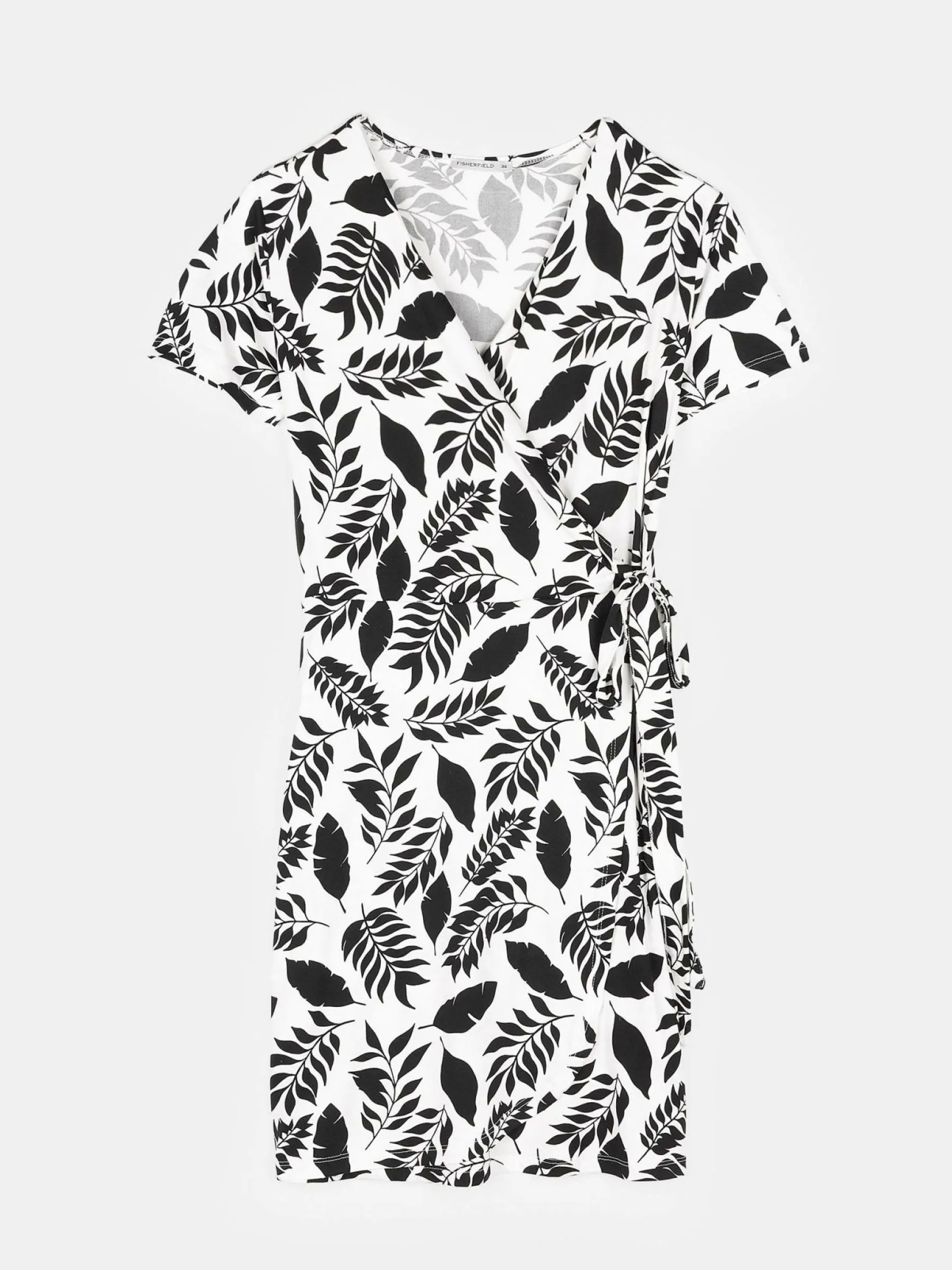 Kolor: białyKrój: kopertówkiTyp: sukienkaRekaw: krótki rękawDługość: miniPattern style: z nadrukiemDetal: v-neck…