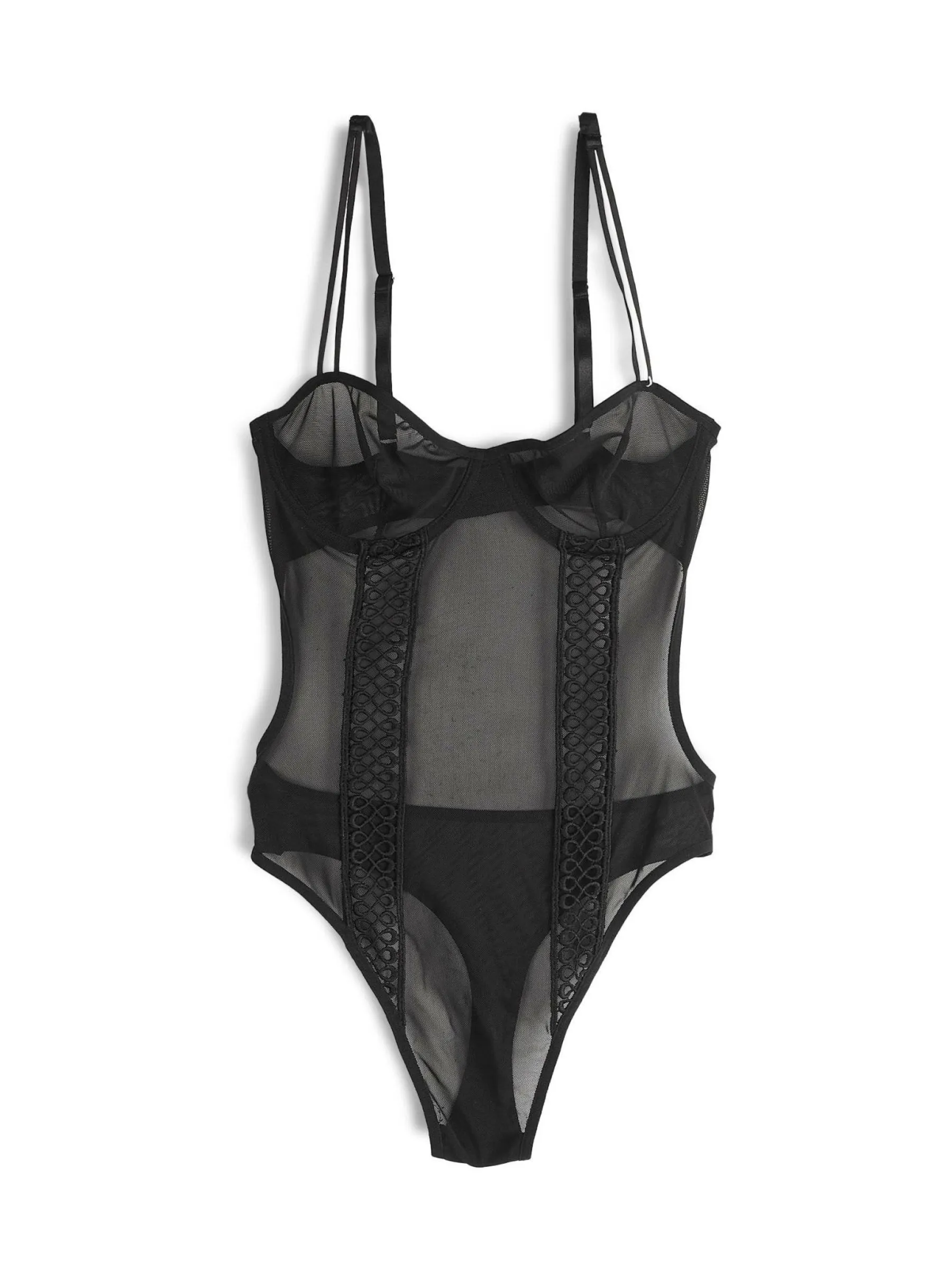 Kolor: czarnyKrój: slimTyp: bodyPattern style: pojedynczy kolorDetal: nieusztywniane, z kośćmi, z haftemMateriał: w …