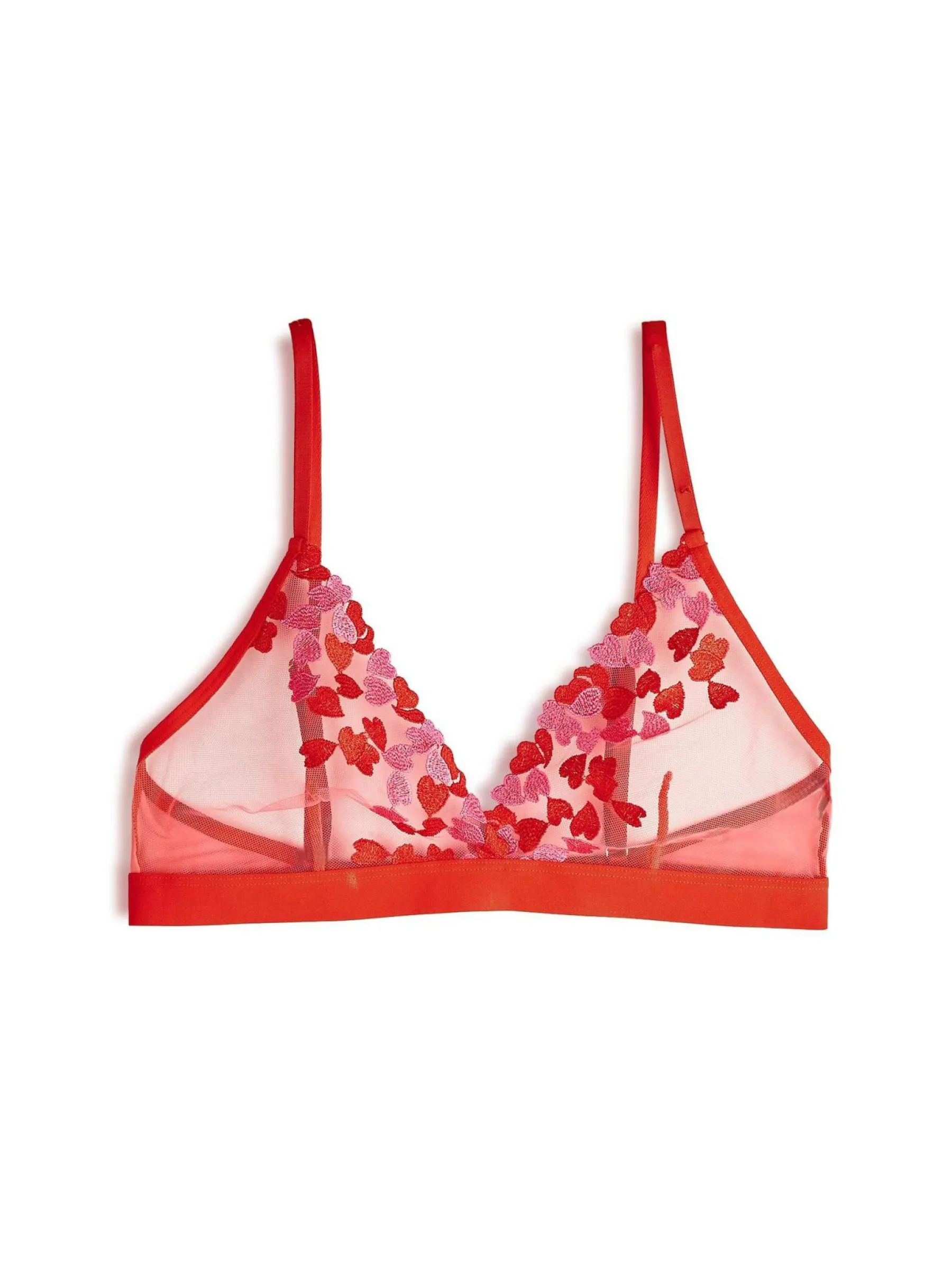 Kolor: czerwonyKrój: braletkaTyp: biustonoszPattern style: pojedynczy kolorDetal: z haftem, na haczykachMateriał: synt…
