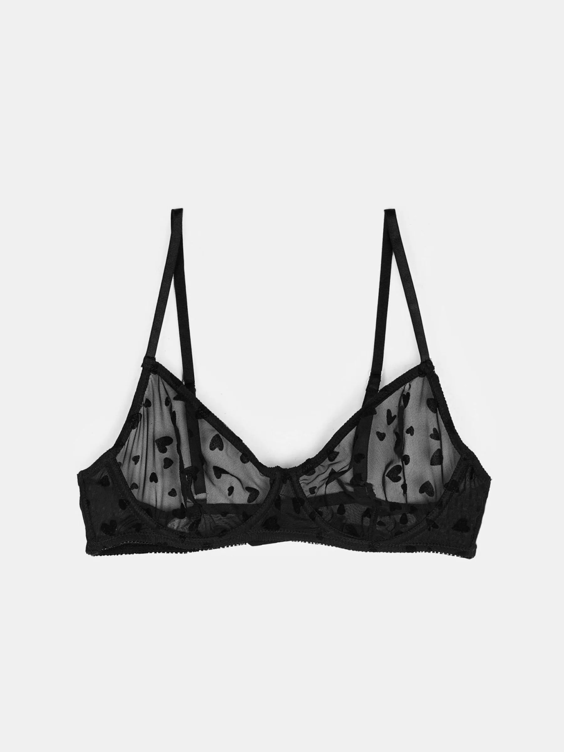 Kolor: czarnyKrój: braletkaTyp: biustonoszPattern style: wzorzysteDetal: nieusztywniane, z kośćmiMateriał: syntetycz…